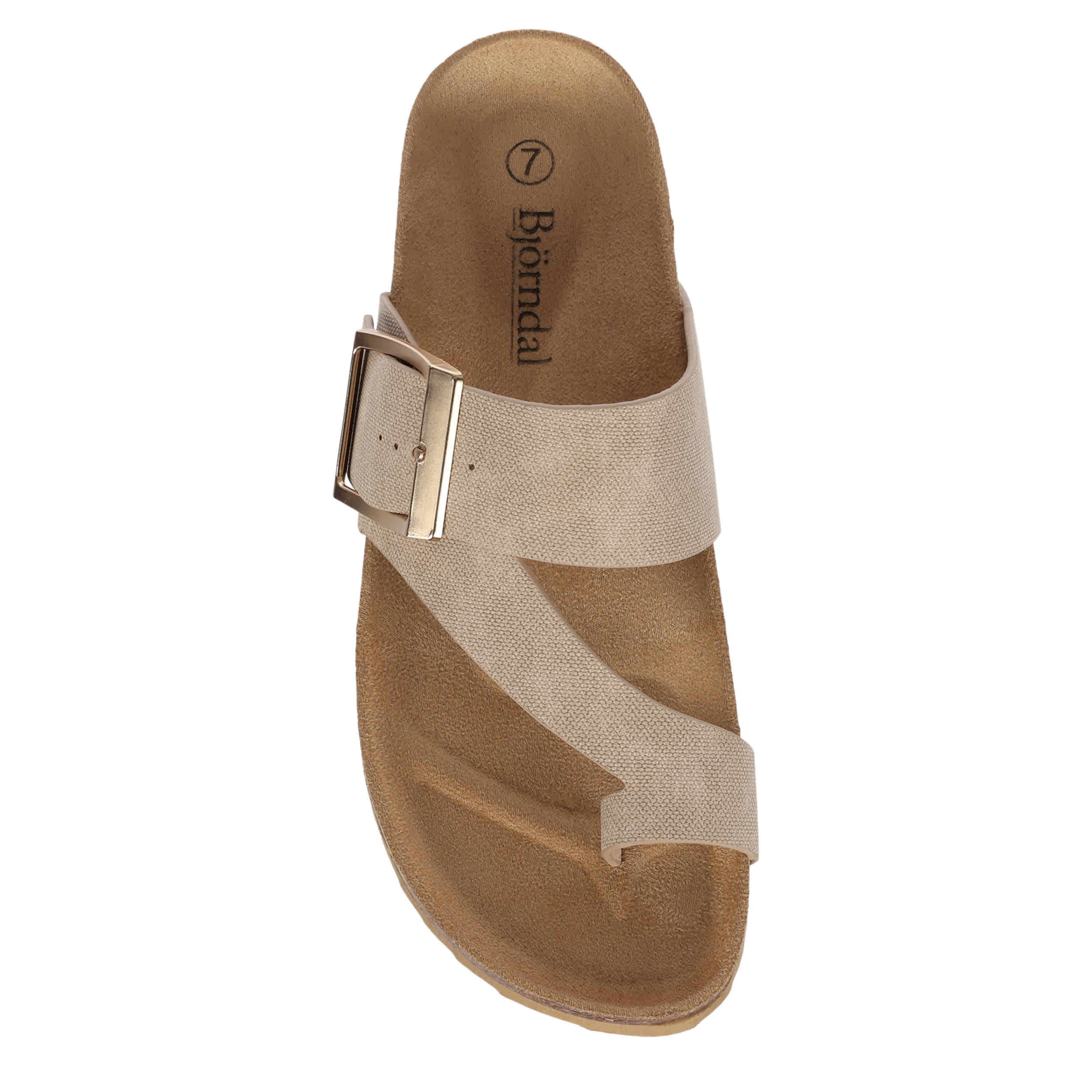 Cute and casual best describe the Laurie women's footbed sandal from Bjorndal. With a textile upper featuring an adjustable buckle strap and toe loop for a secure fit, this slip-on sandal is great for walking around town. The contoured footbed & cork midsole cradle your foot, while the durable outsole provides traction wherever you go.