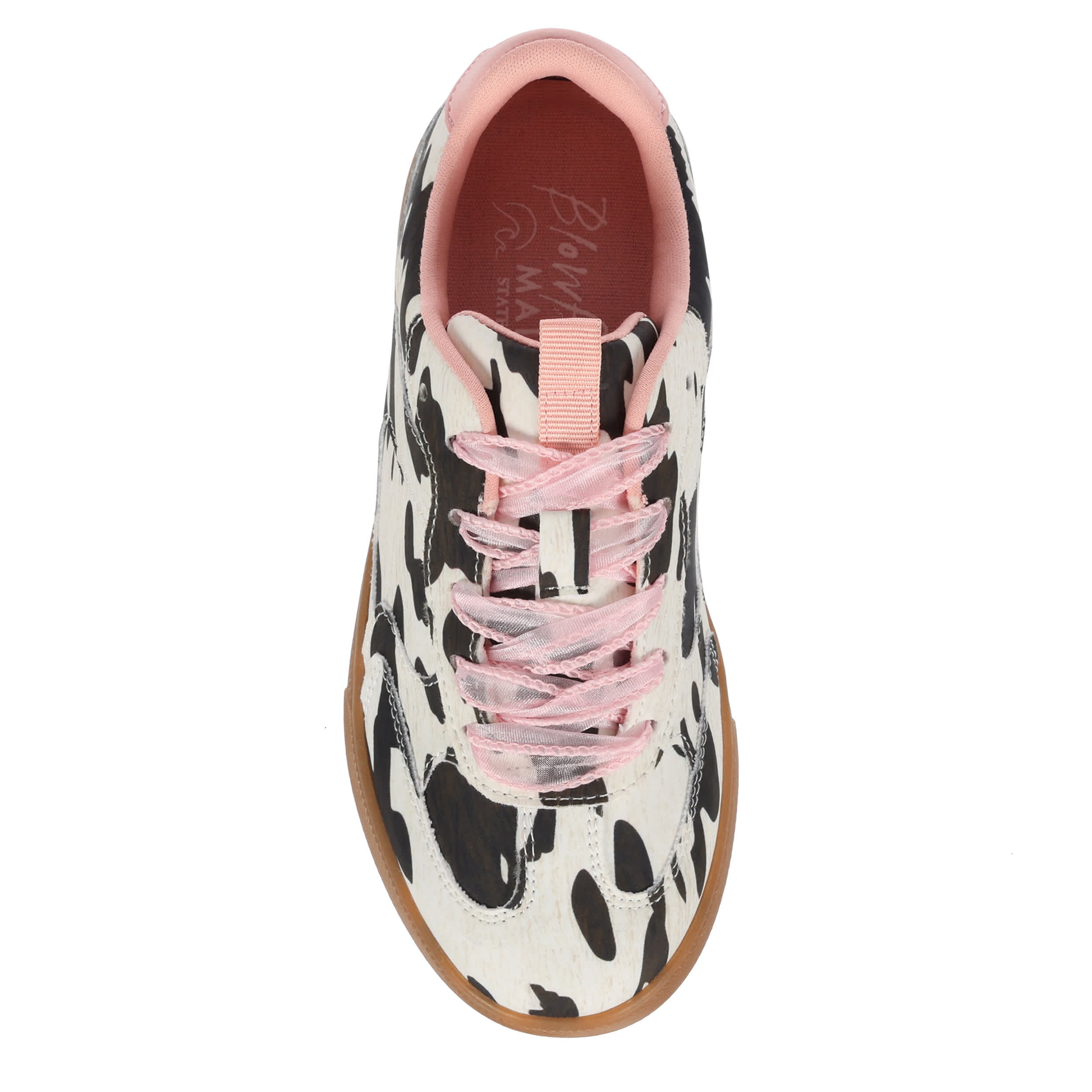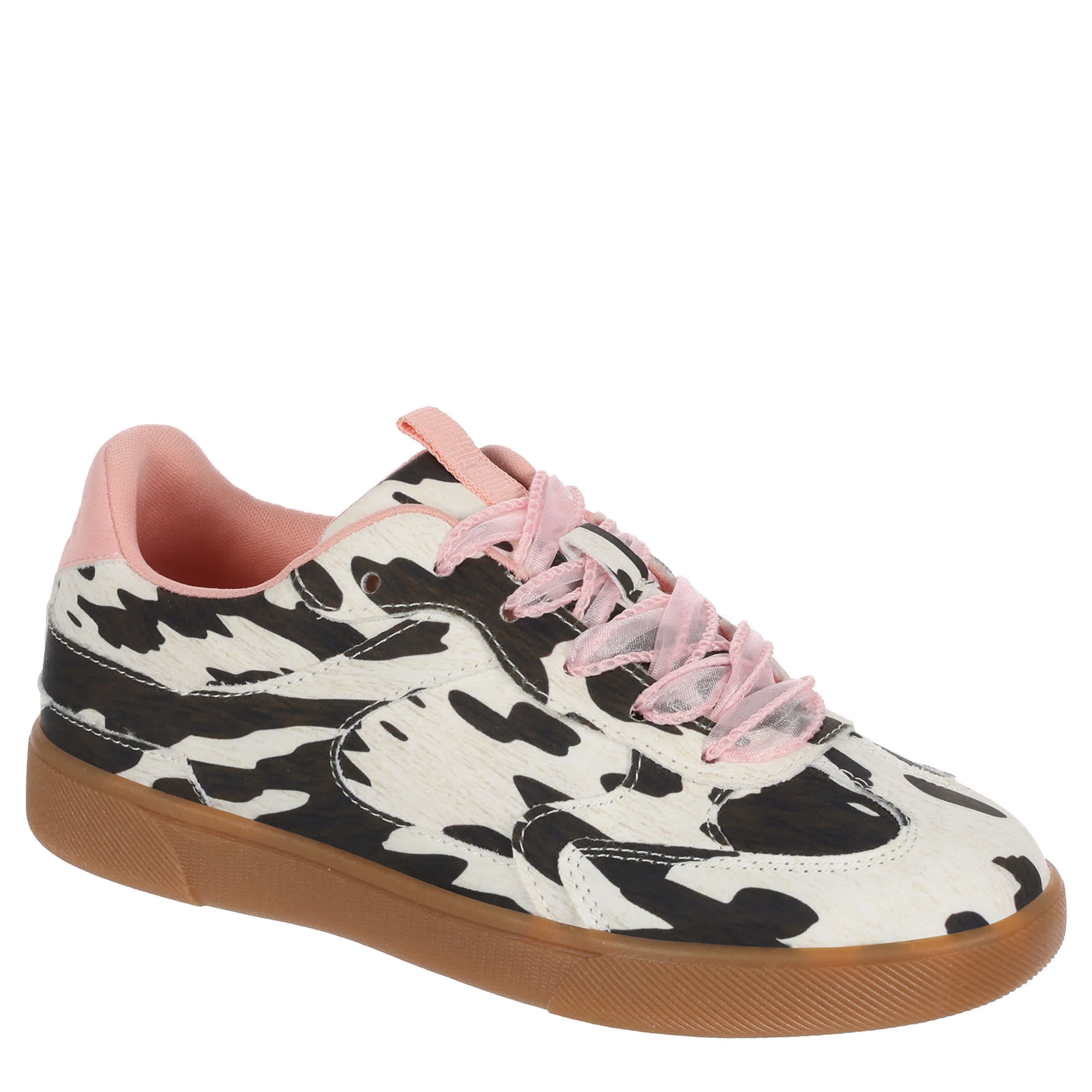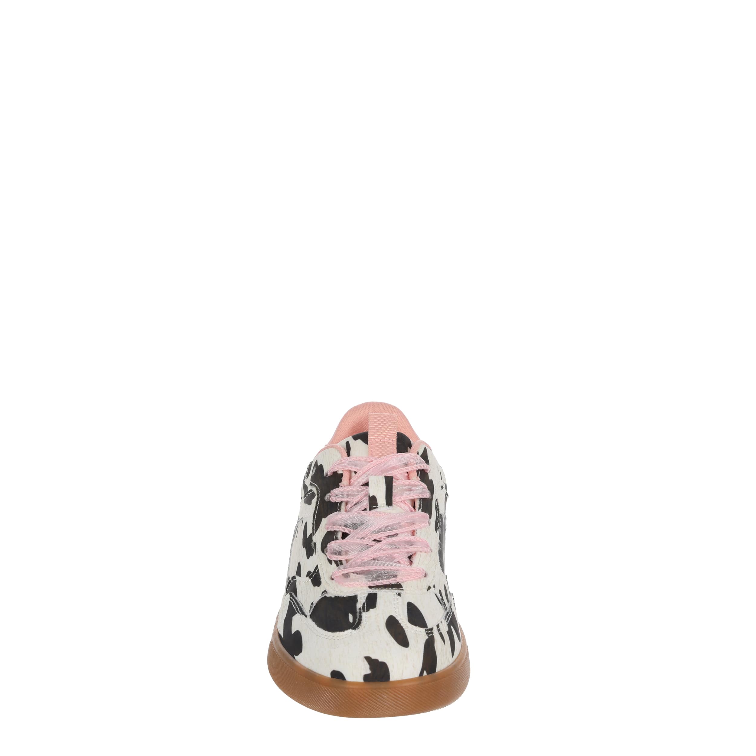 Fan the style flames in the Tastic-K girls' sneaker from Blowfish Malibu. With a cow print fabric & faux leather upper featuring a T-toe design, including a tongue pull tab for vintage appeal, this clean sneaker has laid-back style covered. The foam insole cushions, while the outsole adds a bit of bounce.