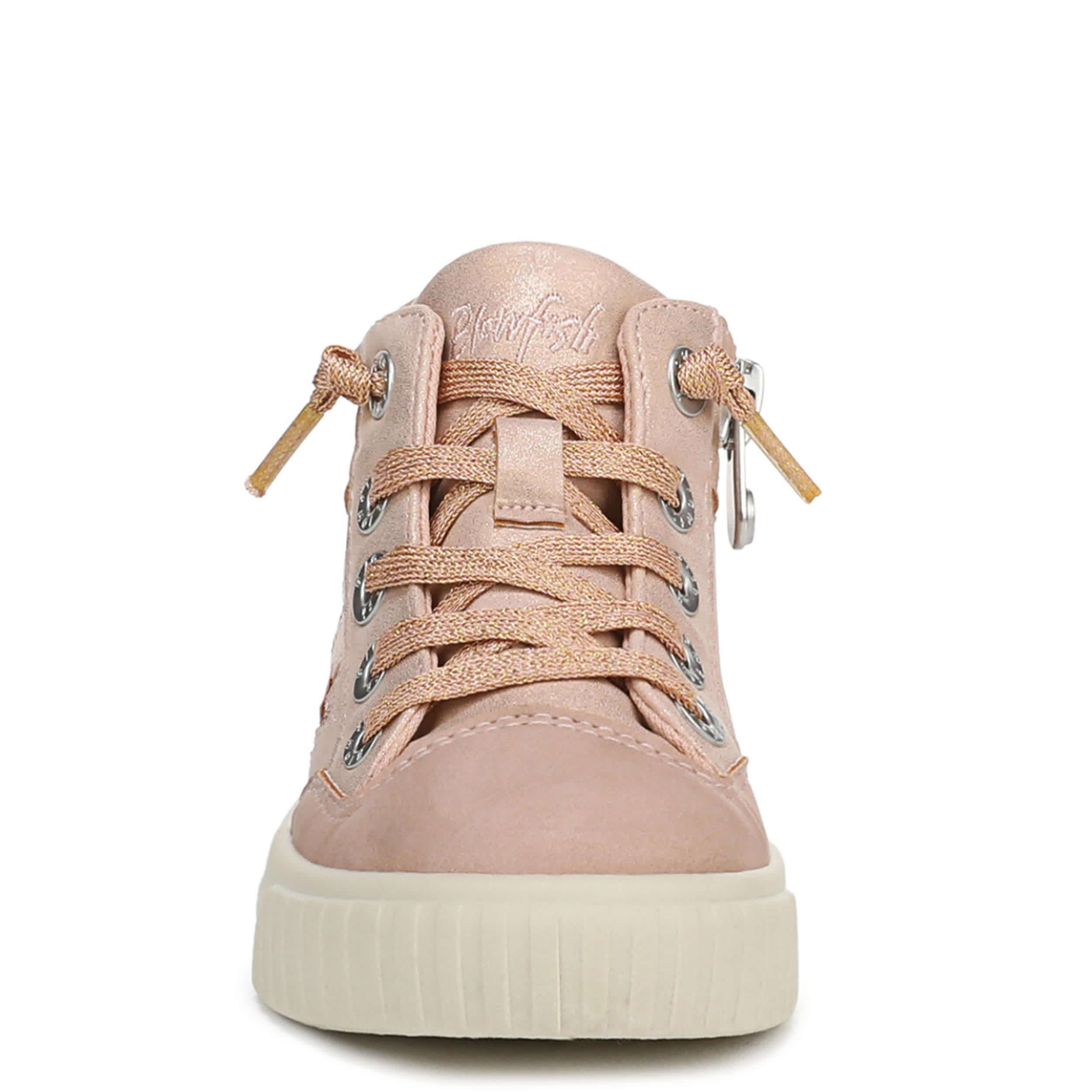 Outfit your little star with the Blowfish Malibu Wanderland-T infant girls' sneaker. Featuring a faux leather upper with star accents, this shoe zips close for an easy entry. The insole cushions, while the durable outsole ensures traction for all her playtime fun.