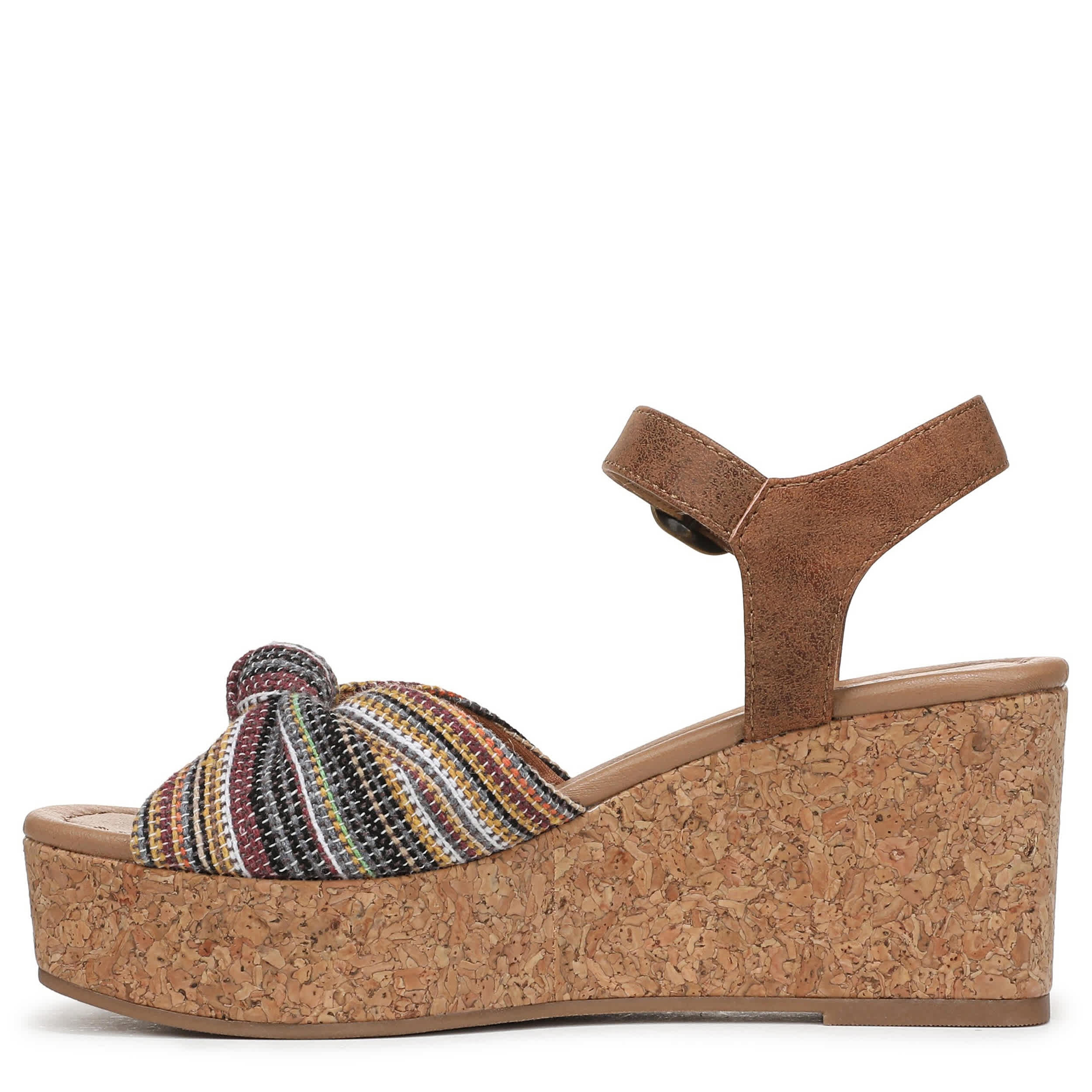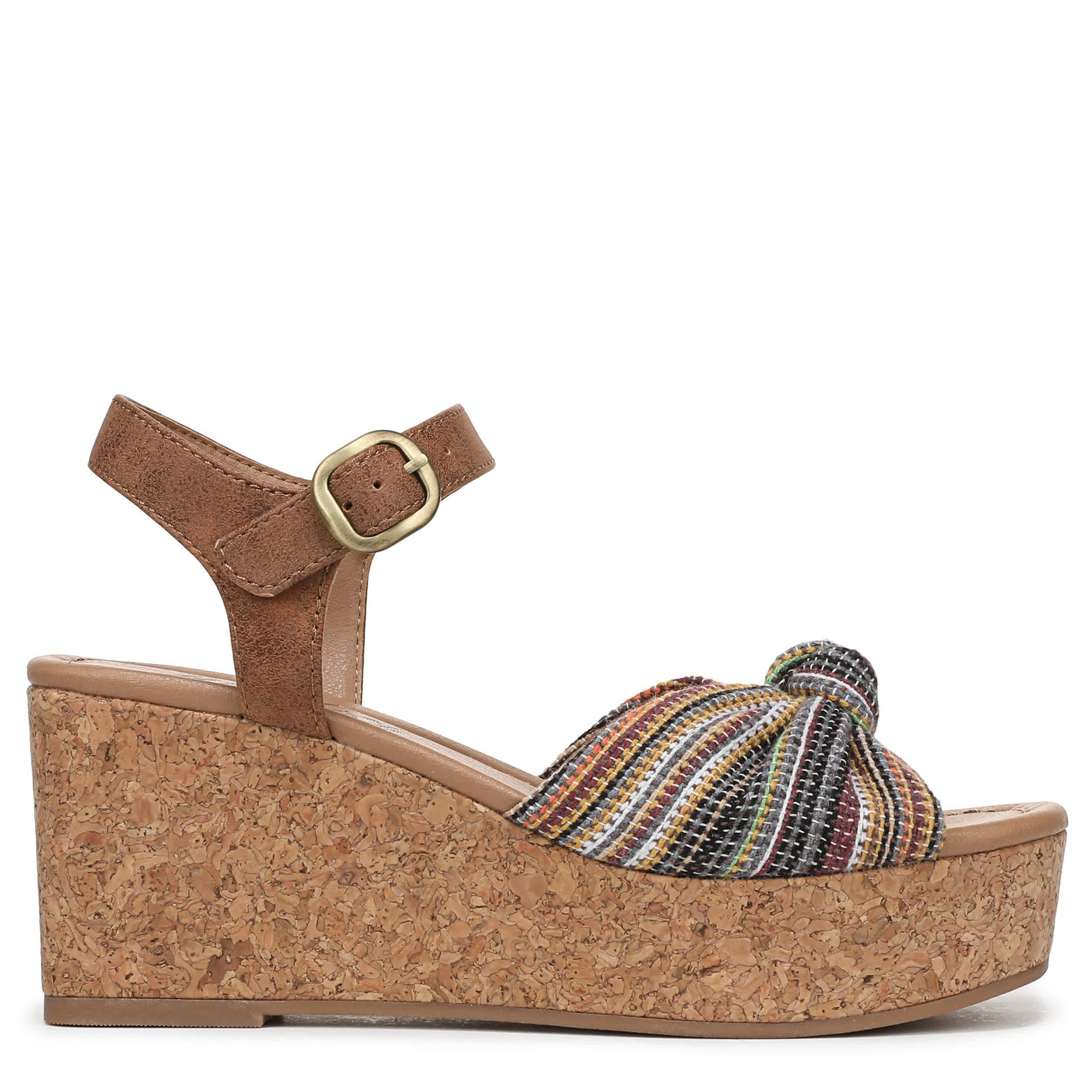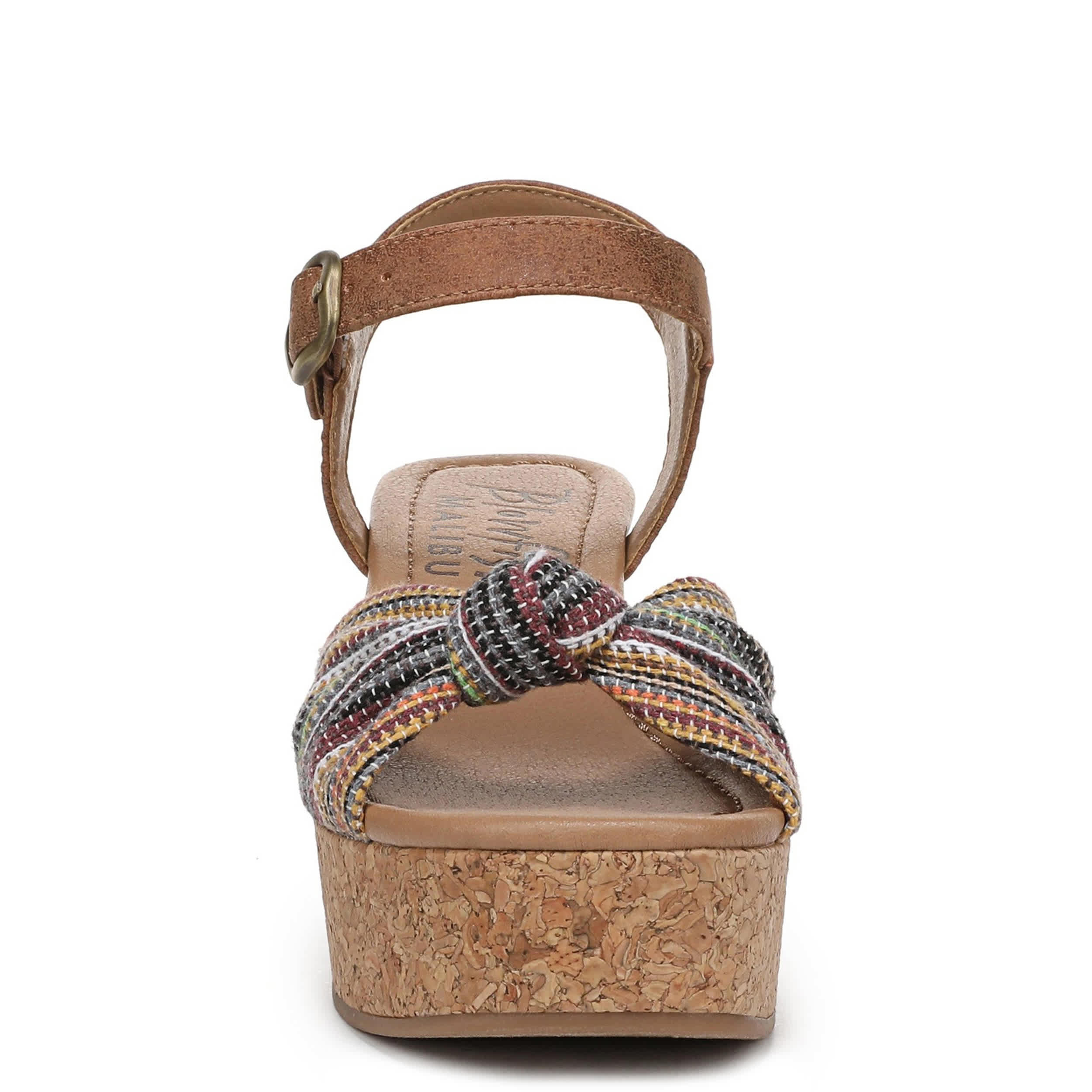 Sunny and light, the Blowfish Malibu Adore platform sandal is made for vacation. With a knotted fabric & faux leather upper, this shoe offers a personalized fit with an adjustable buckle strap. The foam footbed comforts your foot, while the cork heel gives a substantial lift.