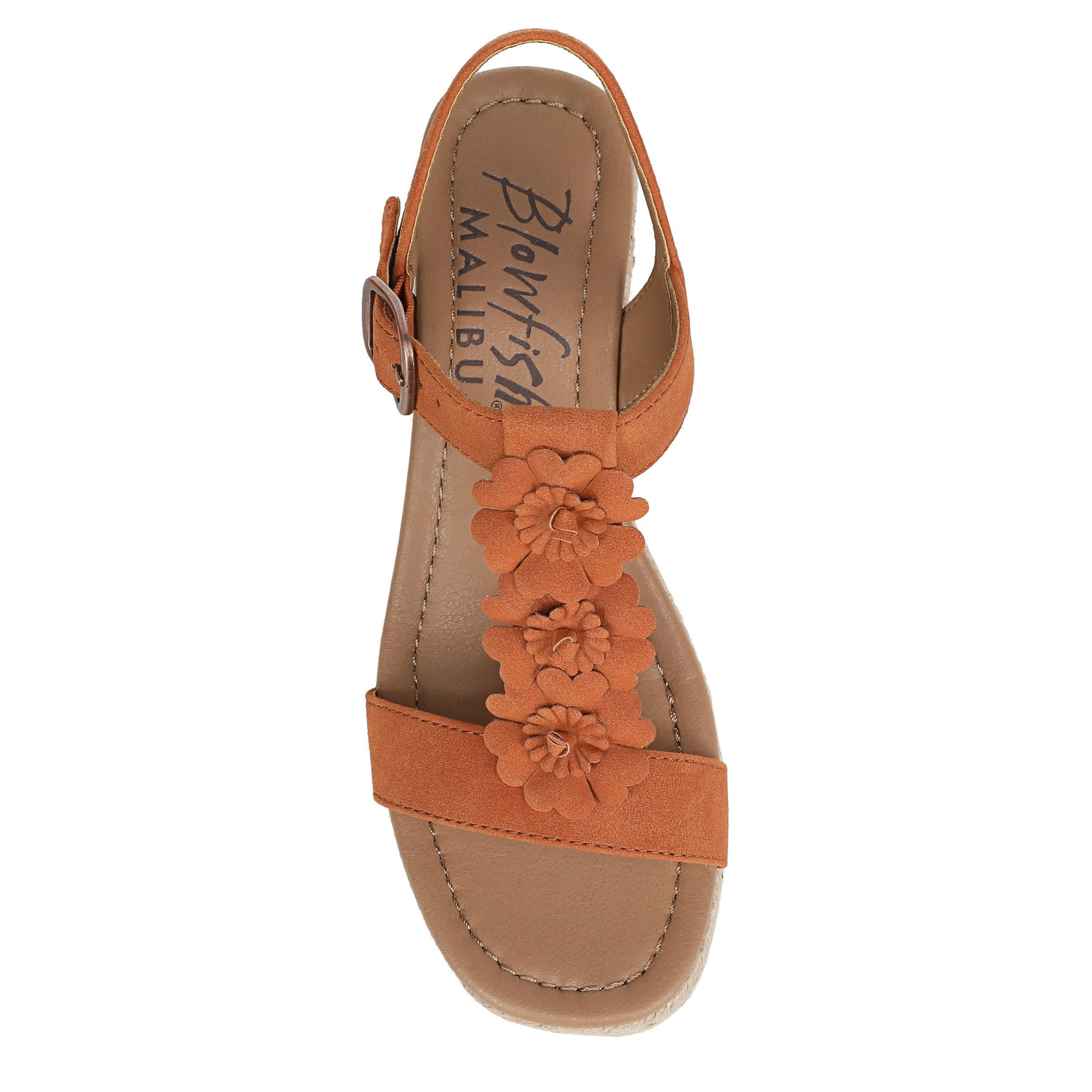 Spring flowers make a pretty look with the Blowfish Malibu Annika 2 platform sandal. Featuring a floral-accented faux leather upper, this T-strap shoe offers a personalized fit with an adjustable buckle strap. The foam footbed comforts your foot, while the wedge heel gives a substantial lift.