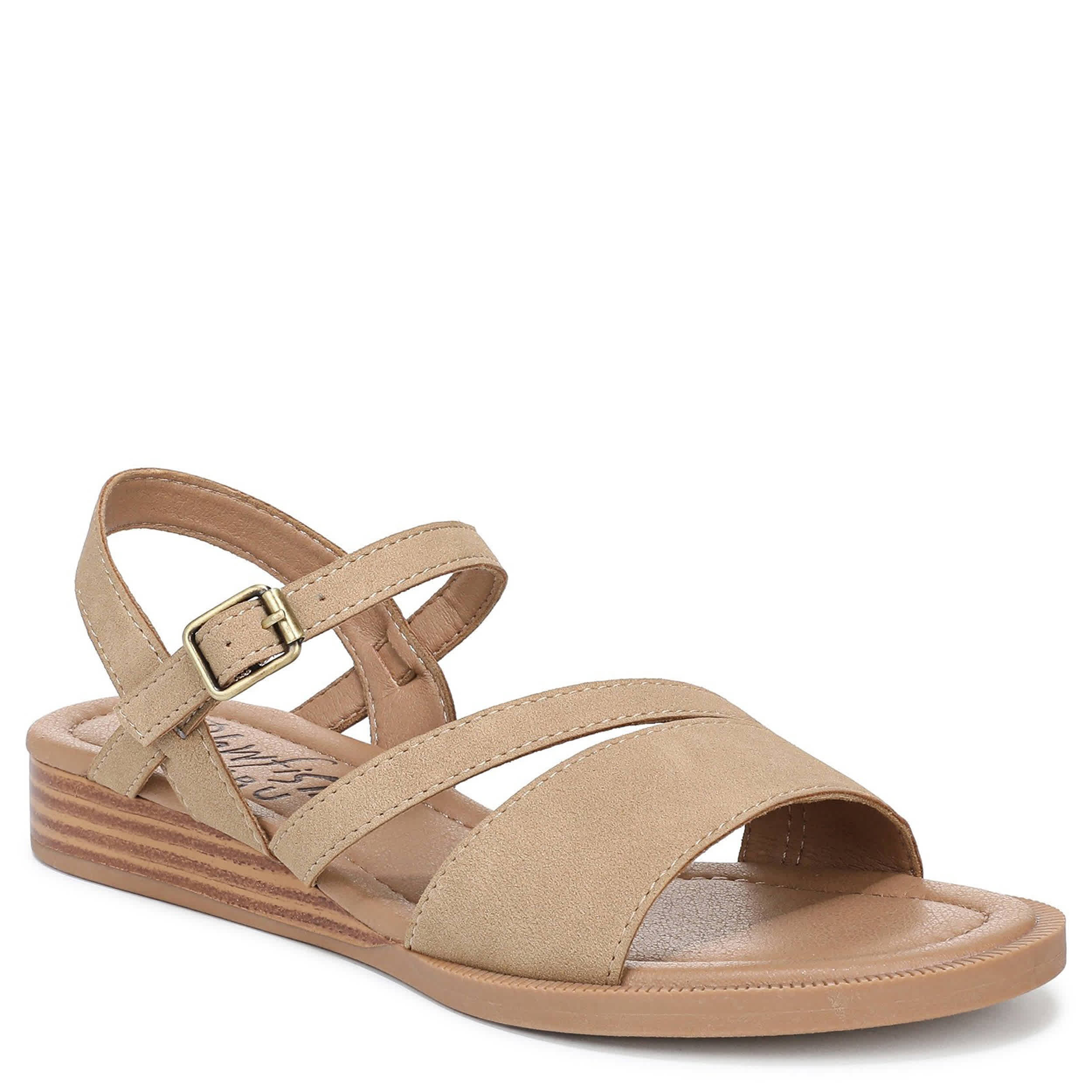 Shoot straight for the sand with the Blowfish Malibu Arrow sandal. Featuring a faux suede upper, this strappy sandal is a great addition to your summer vacation. The slight wedge and low heel add extra comfort.