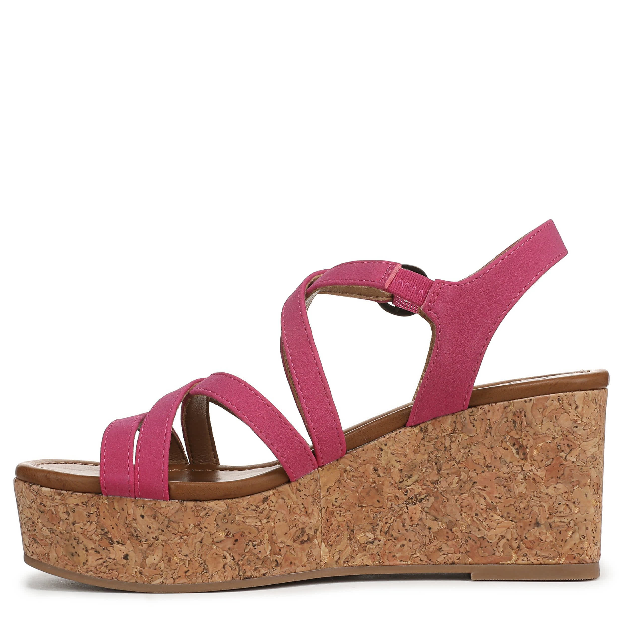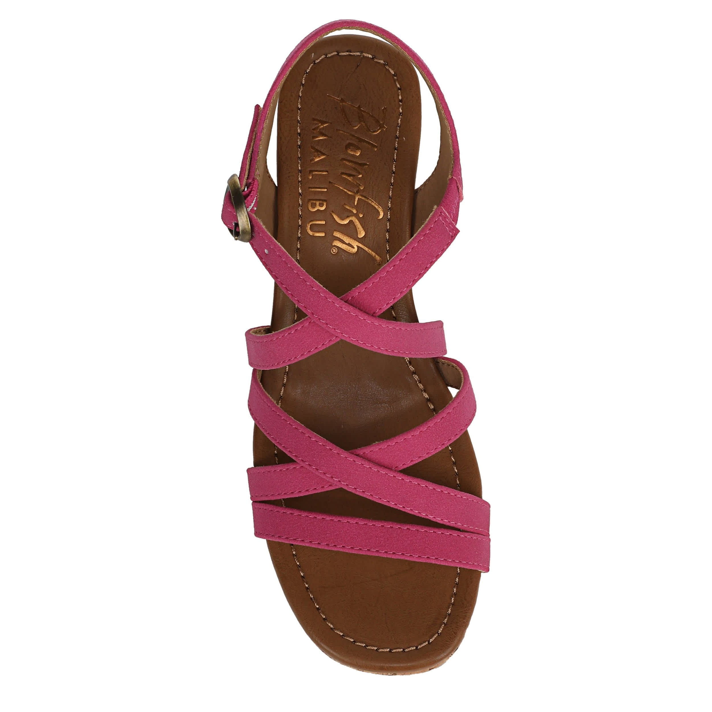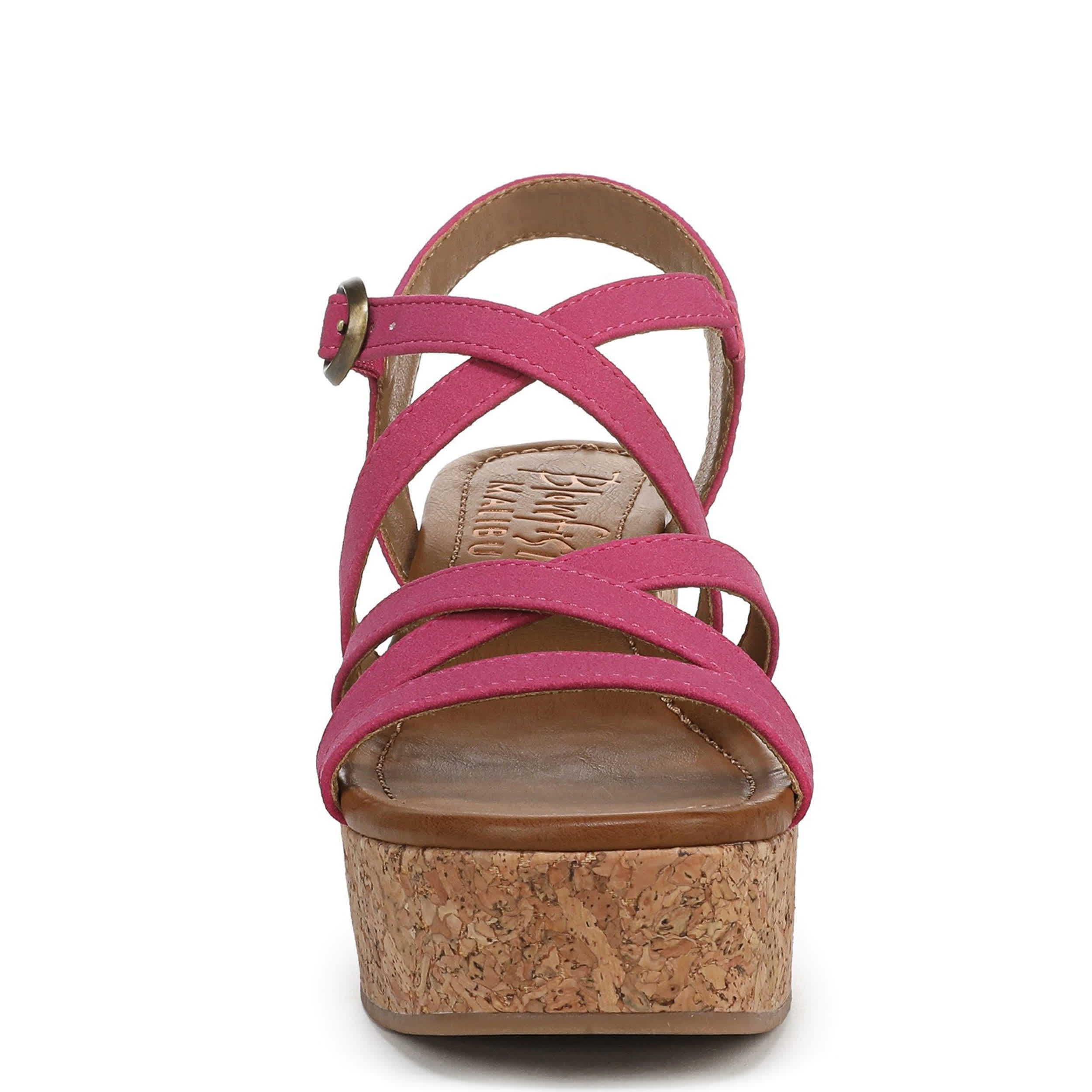 Elevate your warm weather wardrobe with the Blowfish Malibu Aurora wedge sandal. With a strappy faux leather upper, this shoe offers a personalized fit with an adjustable buckle strap. The foam footbed comforts your foot, while the cork heel gives a substantial lift.