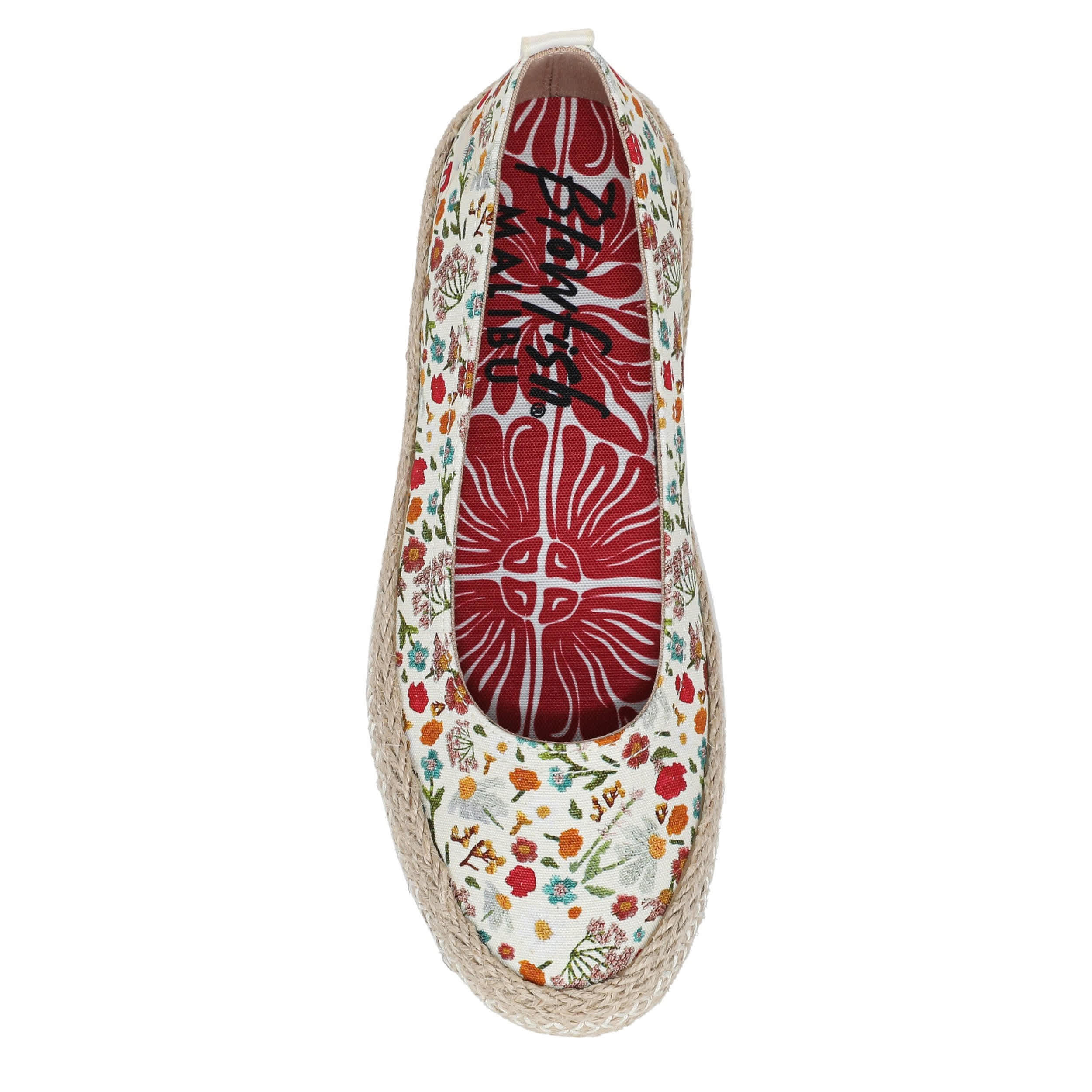 Slip into graceful comfort with the Blowfish Malibu Benita flat. Featuring a floral printed upper with a contrasting heel accent for extra style, this shoe has a braided jute covered sole to create an espadrille effect. The footbed comforts your steps, and the textured traction provides some stability.