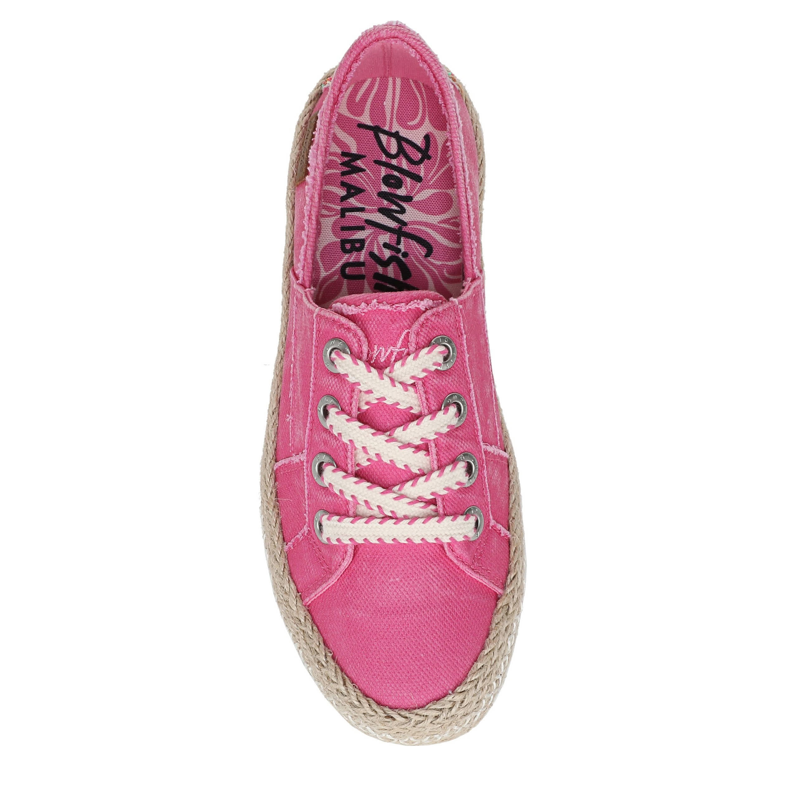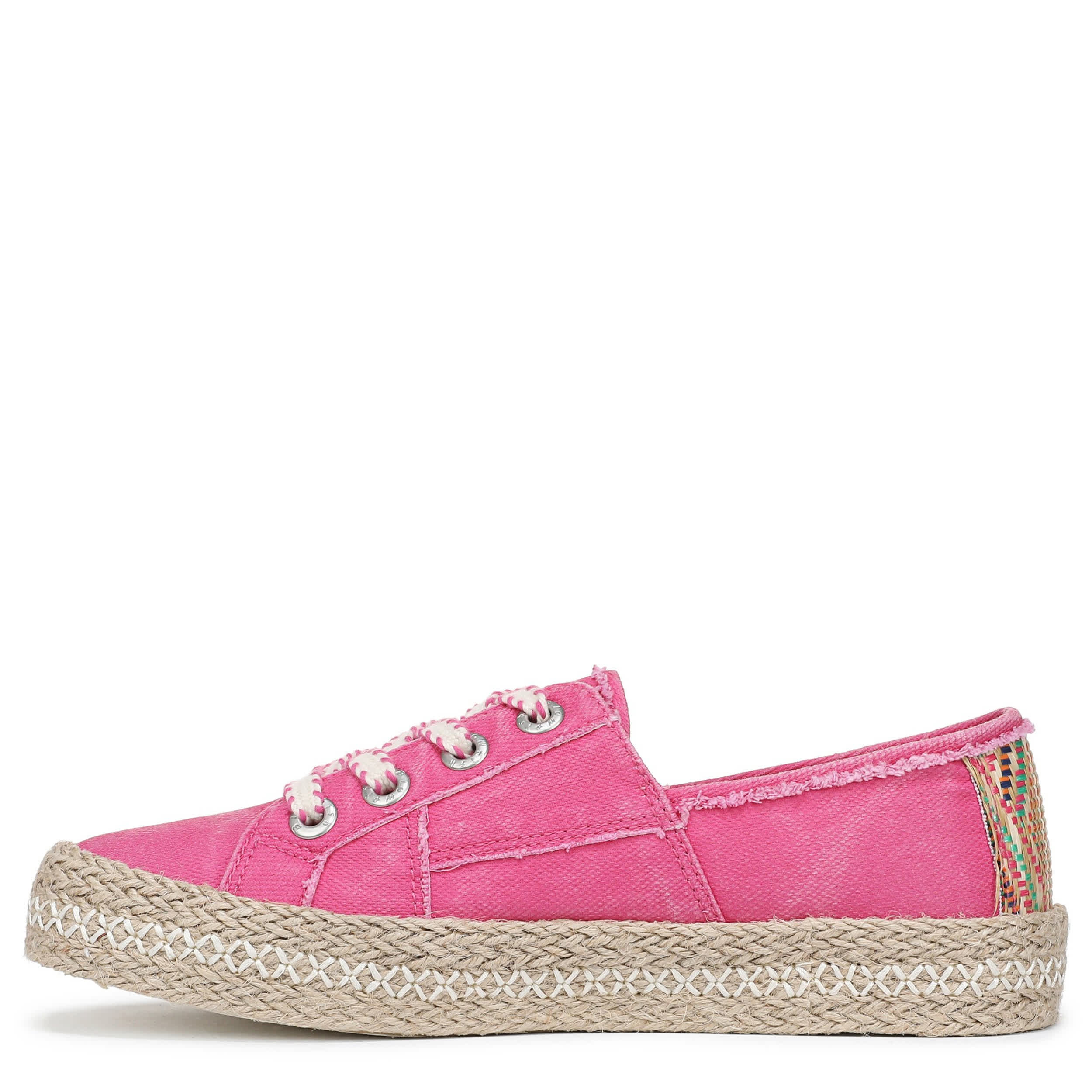 Step out in style with the Blowfish Malibu Buenos sneaker. Featuring a pre-distressed upper with a contrasting heel accent for extra style, this shoe has a braided jute covered sole to create an espadrille effect. The footbed comforts your steps, and the textured traction provides some stability.