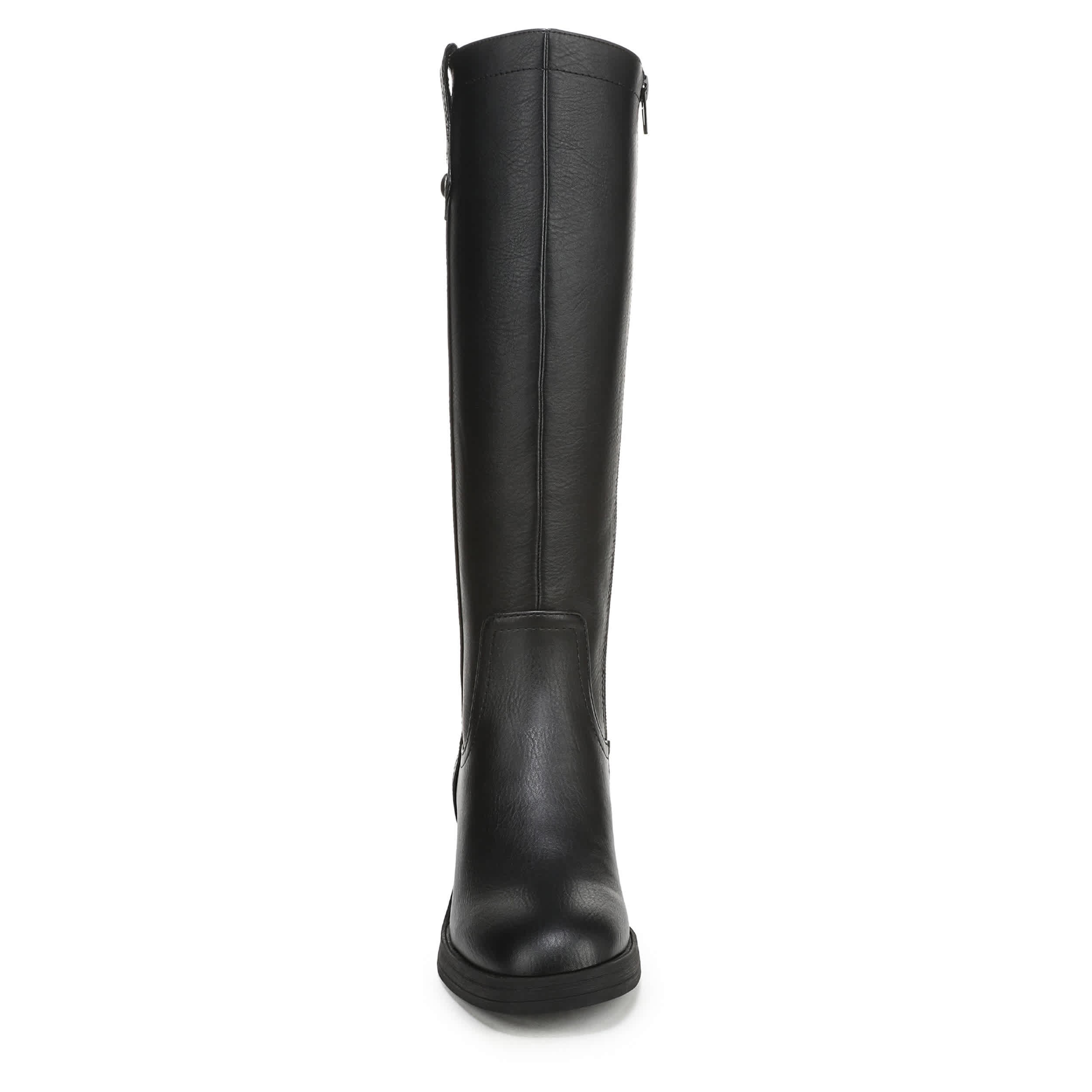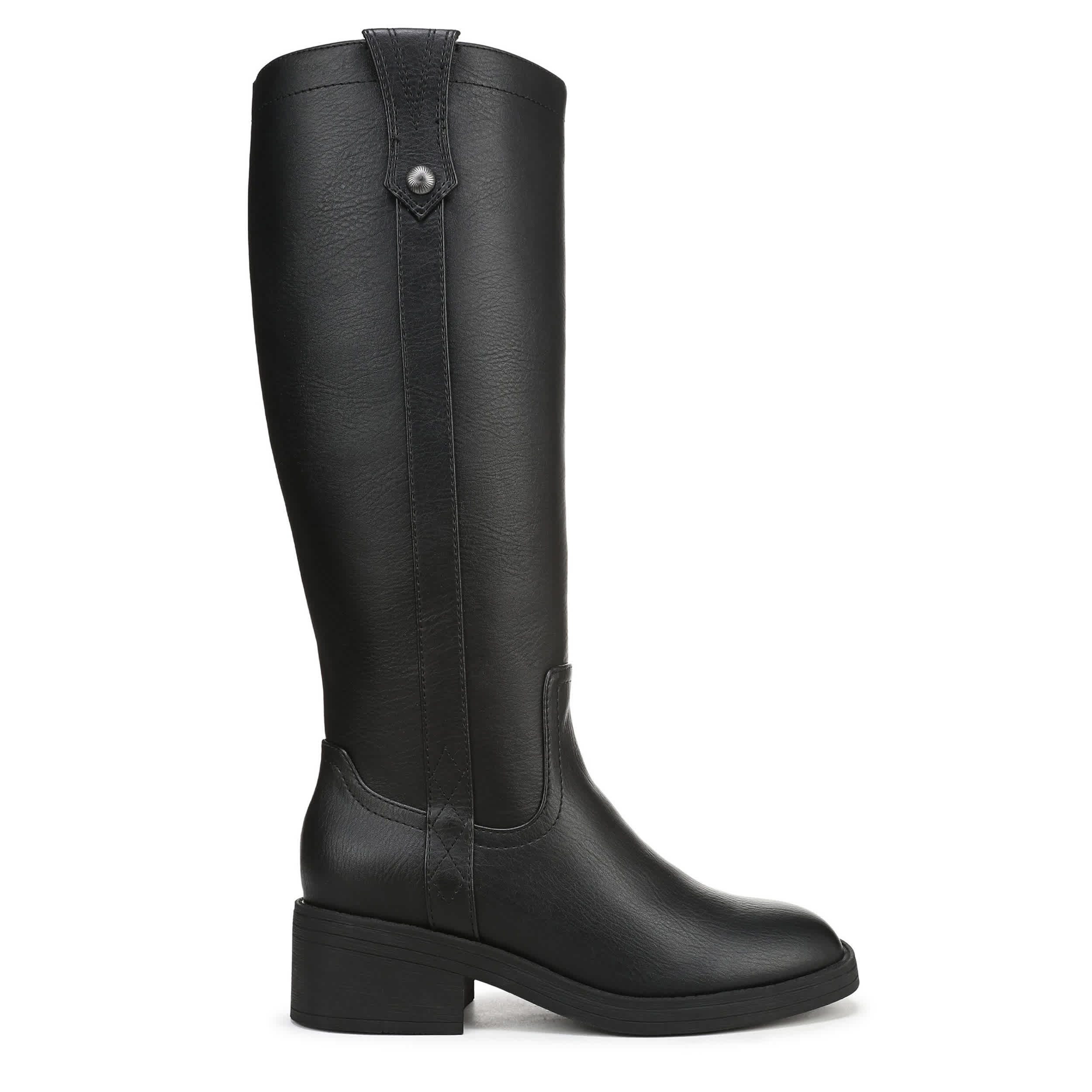 Travel near and far in the Nomads tall boot from Blowfish Malibu. Featuring a faux leather upper with a squared toe and studded pull tab, this easy zip boot is ready for the fall. The footbed soothes, while the stacked heel adds nice lift.