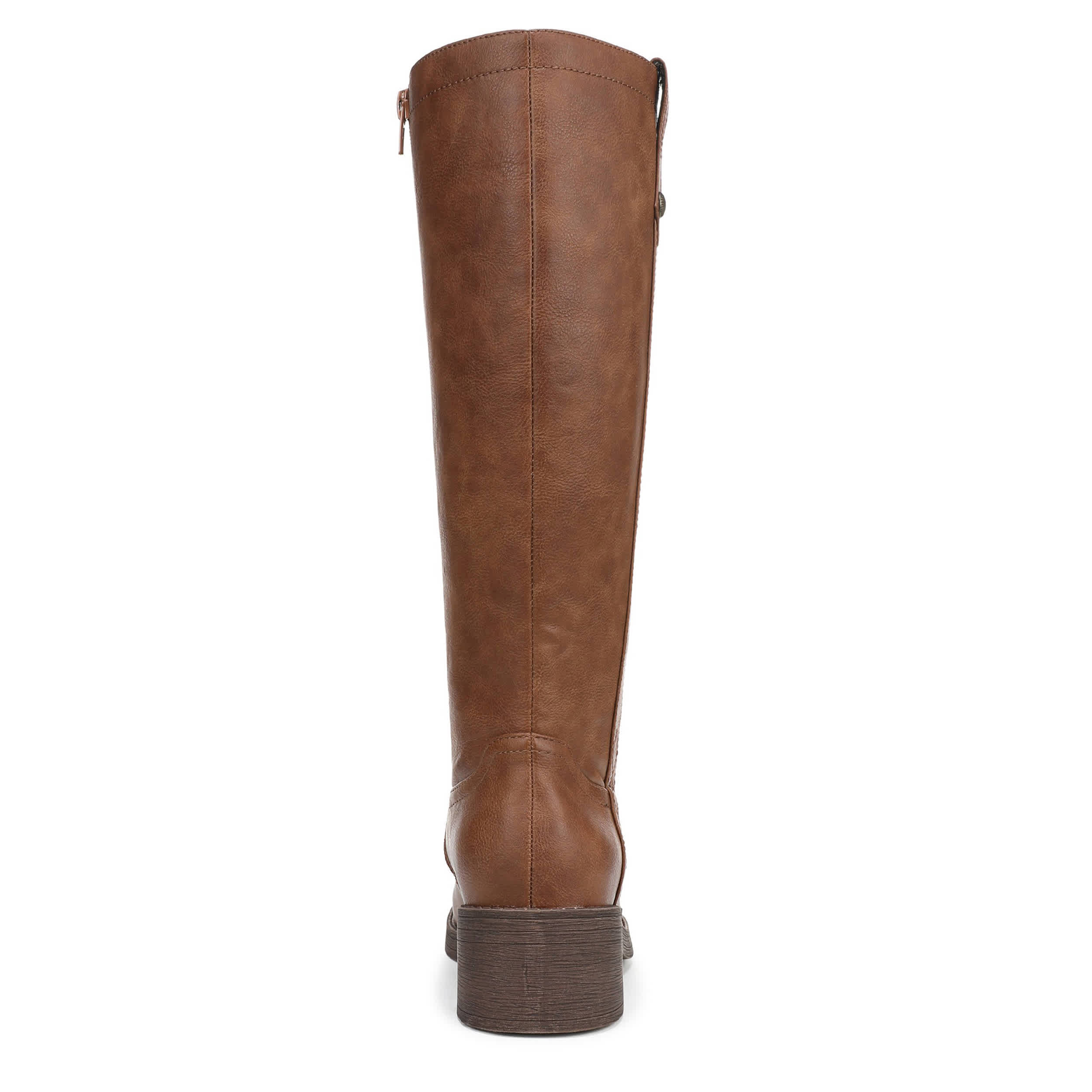Travel near and far in the Nomads tall boot from Blowfish Malibu. Featuring a faux leather upper with a squared toe and studded pull tab, this easy zip boot is ready for the fall. The footbed soothes, while the stacked heel adds nice lift.