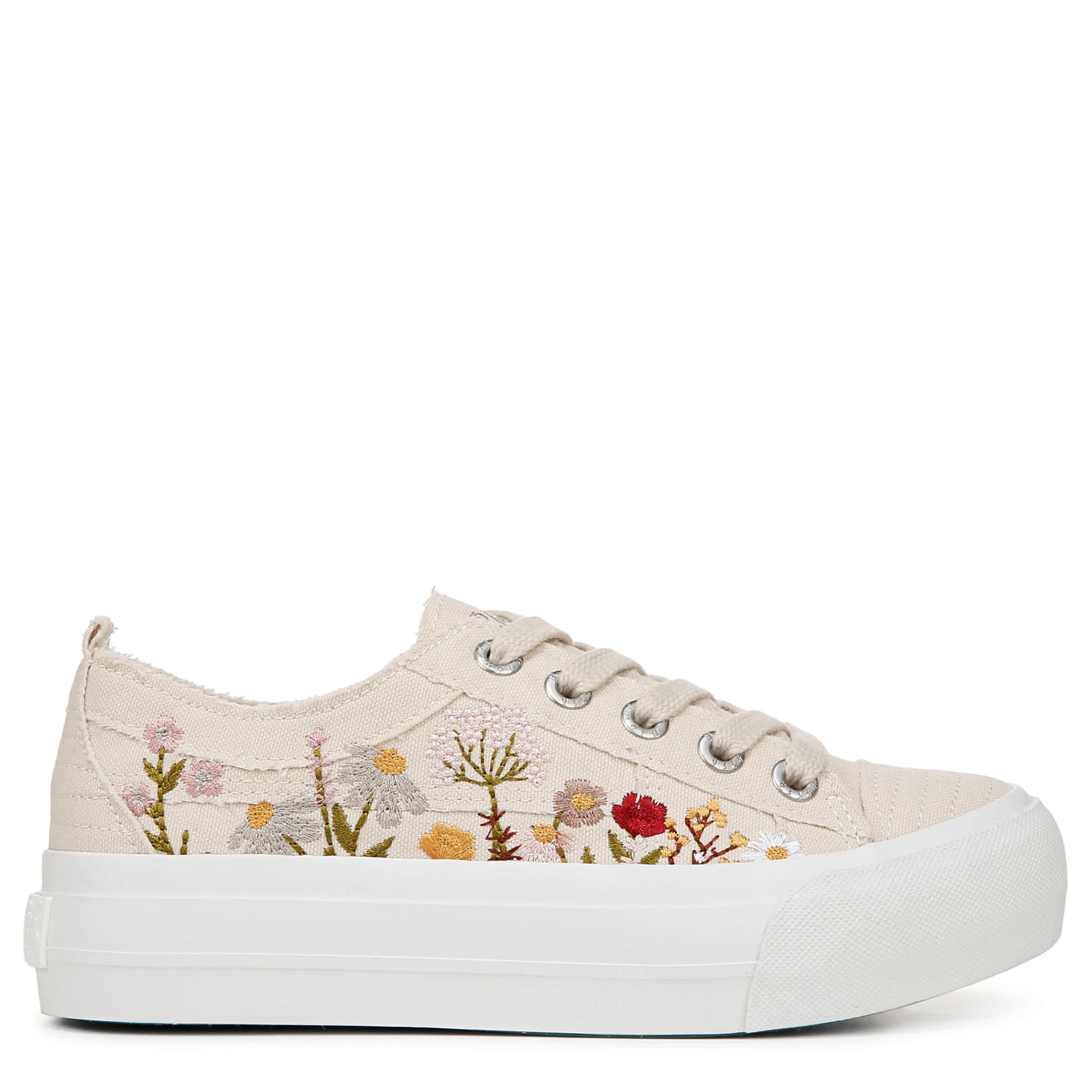 Style a cute picture with the Sadie-Sun women's platform sneaker from Blowfish Malibu. Featuring a canvas upper featuring frayed trim and floral details, this sneaker pairs well with jeans or leggings and a favorite tee. The BLOOM algae-based footbed cushions your foot, while the elevated platform provides just enough lift.