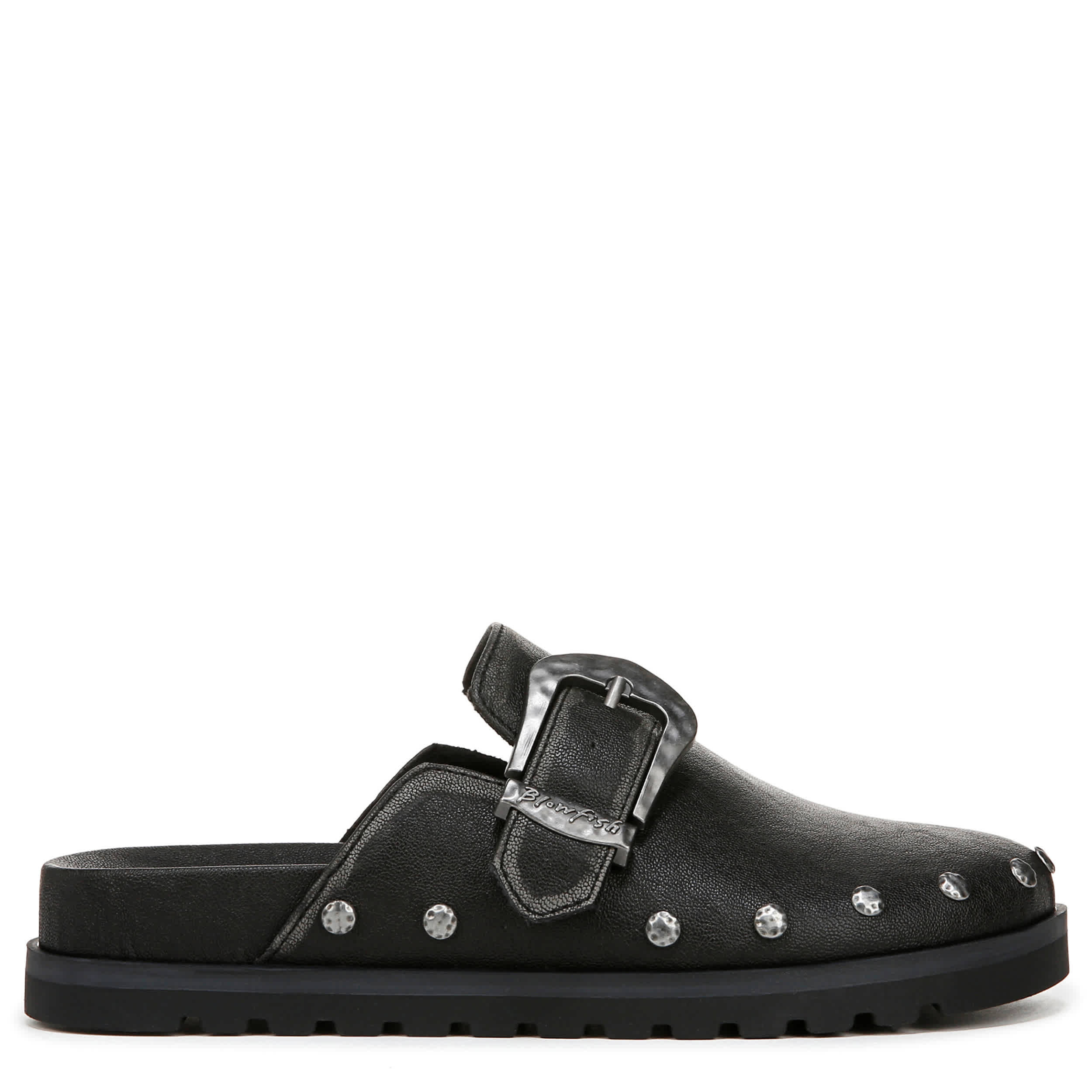 Chic casual is easy in the Blowfish Malibu Skylar clog. Featuring a faux leather upper with a chic buckle strap and nail head studs, this shoe also has a warm fleece lining, nice on cold days. The foam insole cradles your foot, while the outsole is durable.
