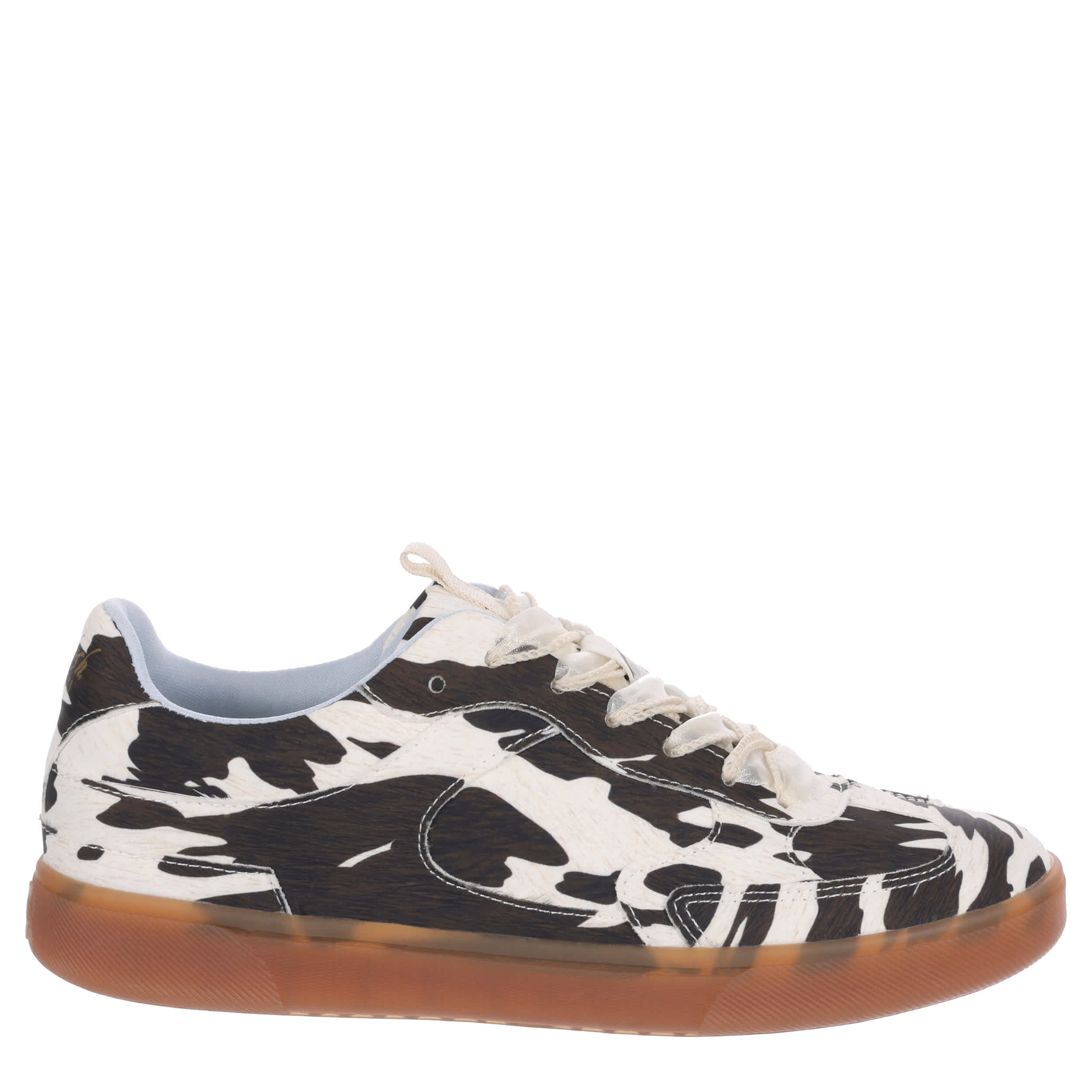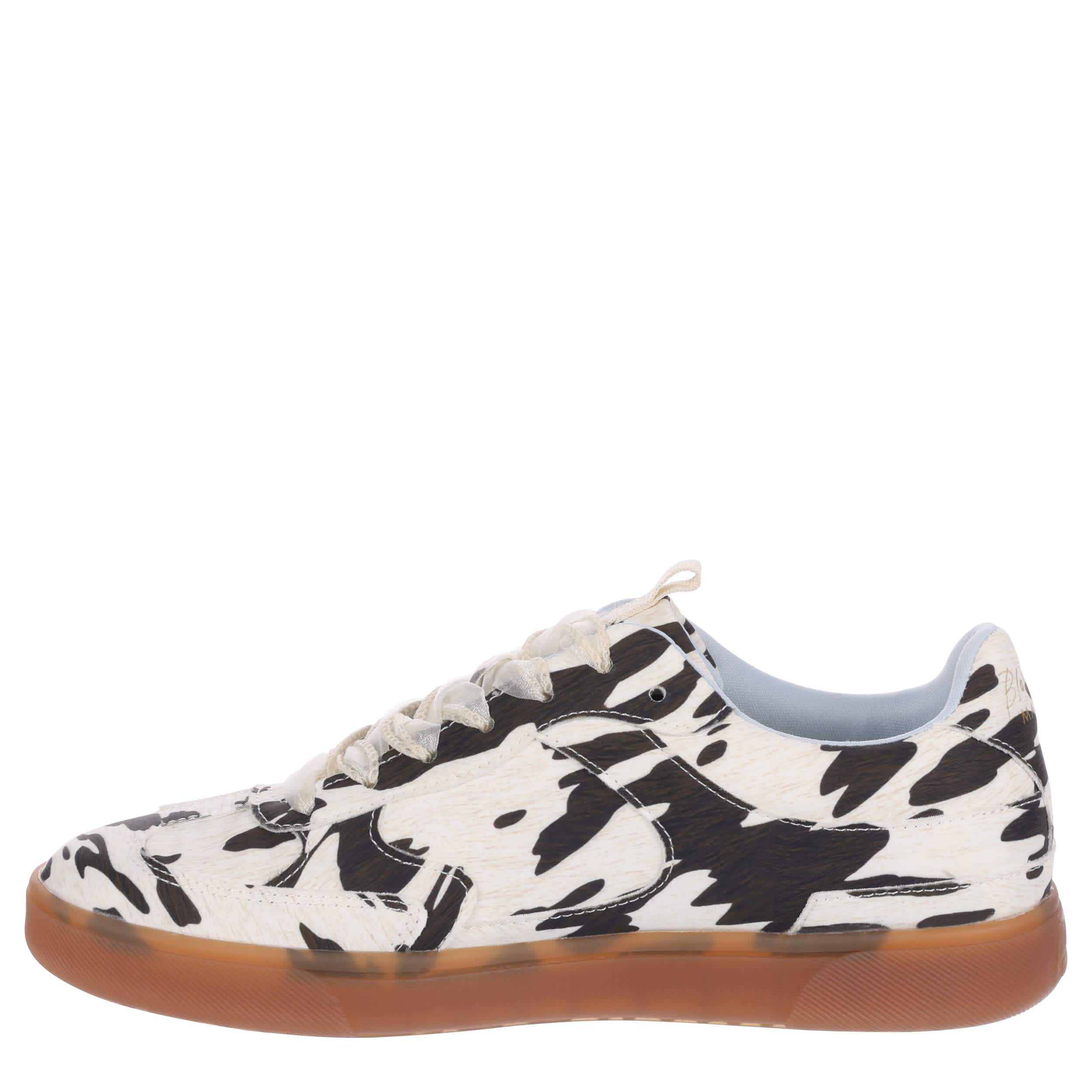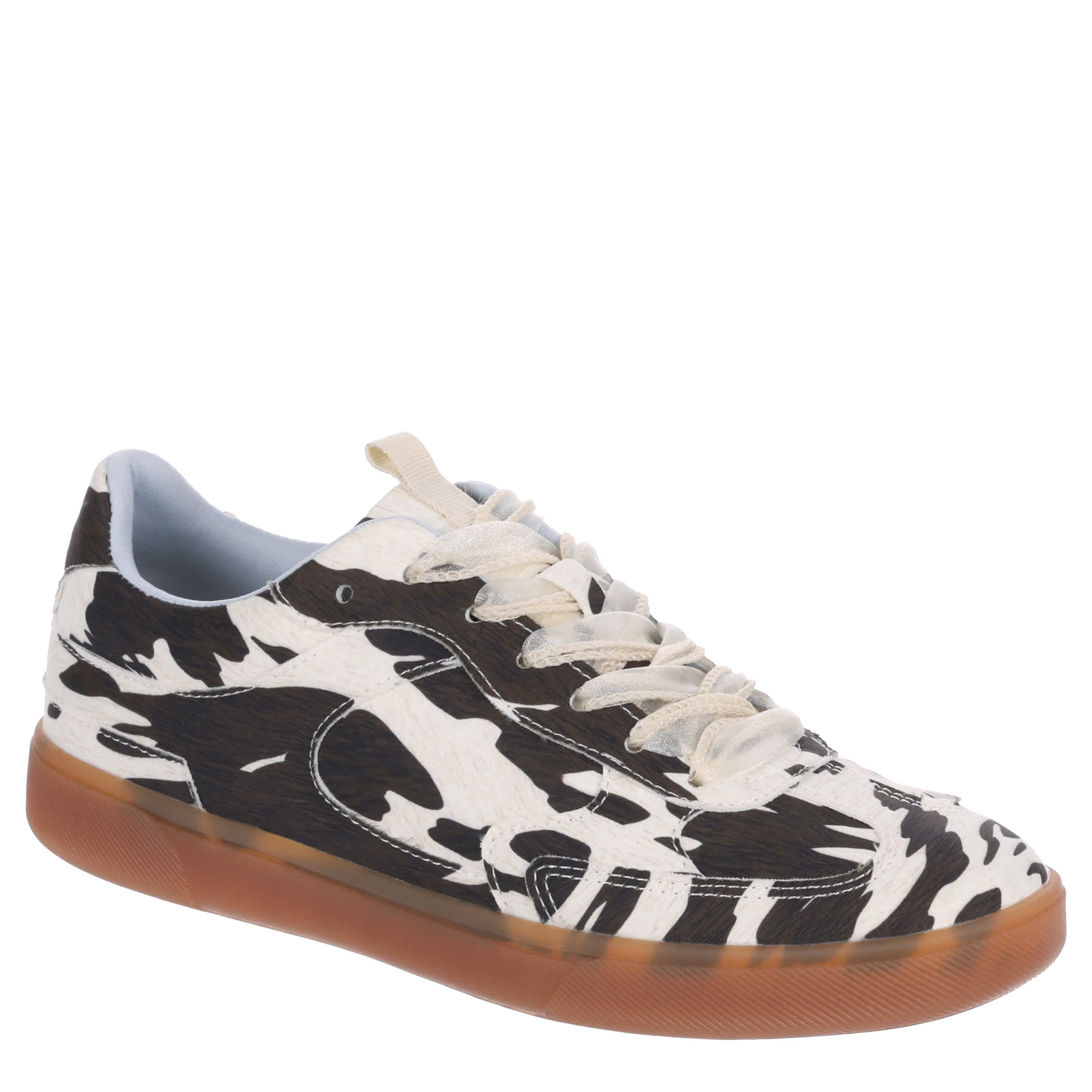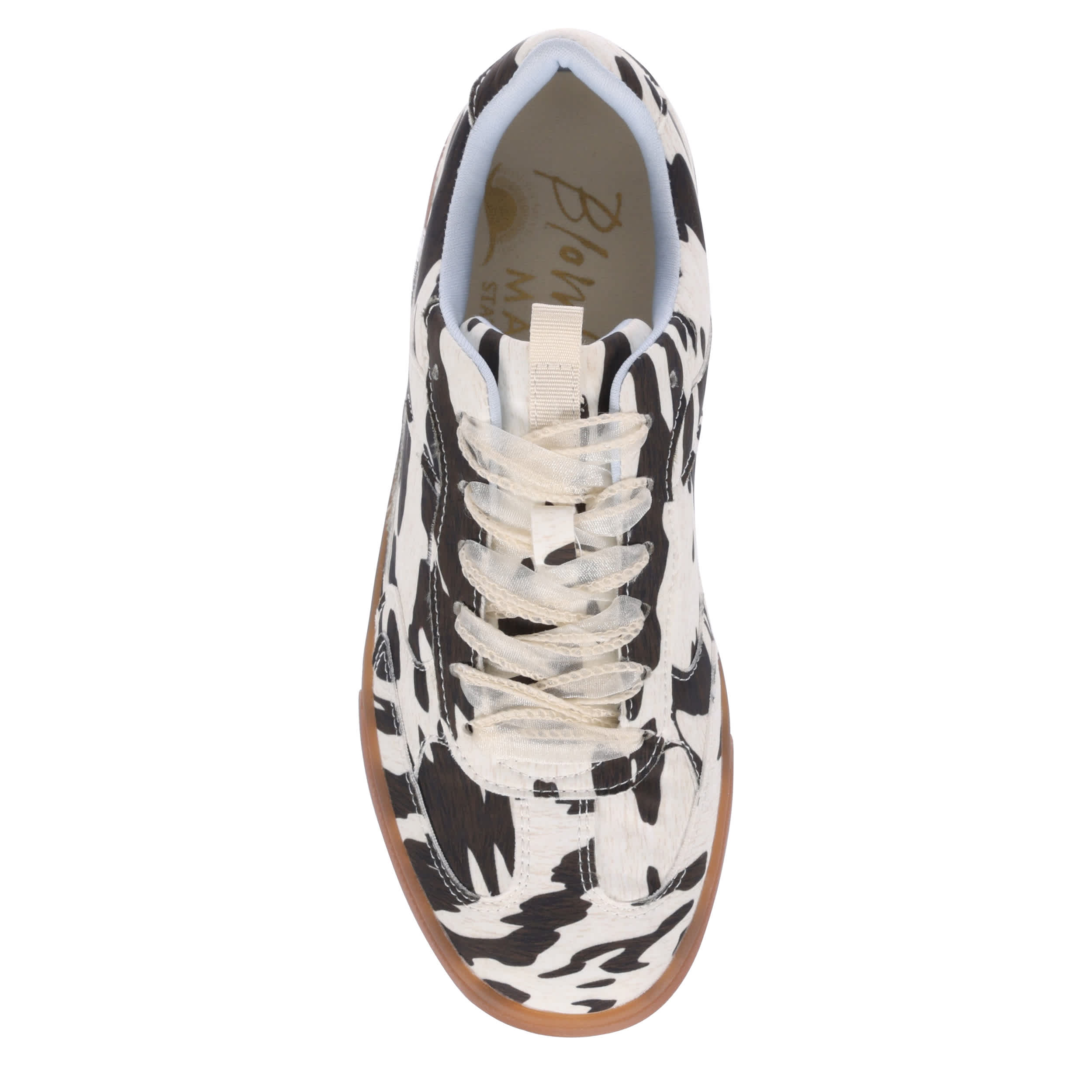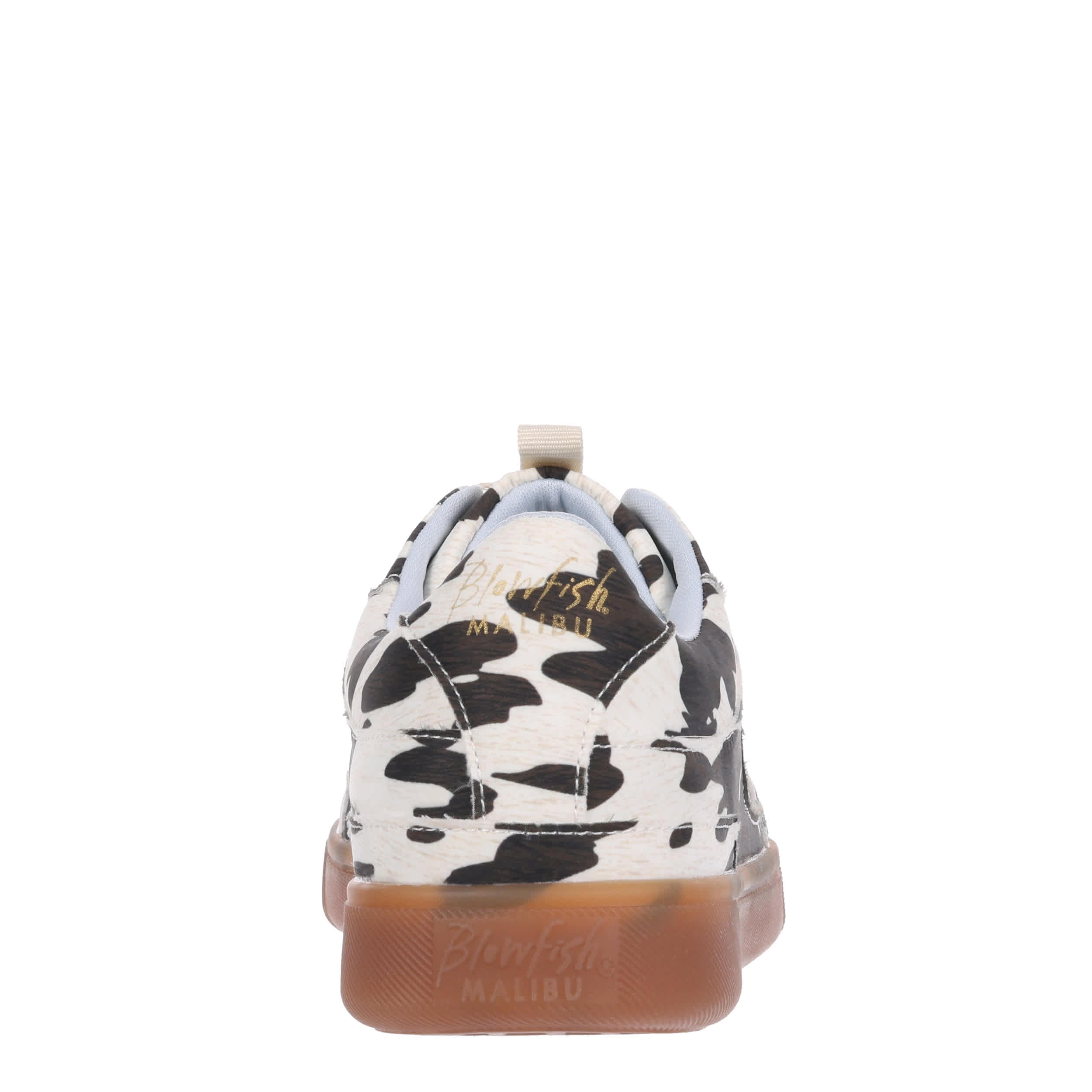 Fan the style flames in the Tastic sneaker from Blowfish Malibu. With a cow print upper featuring a contrasting T-toe design, including a tongue pull tab for vintage appeal, this lacy sneaker has laid-back style covered. The foam insole cushions, while the outsole adds a bit of bounce.