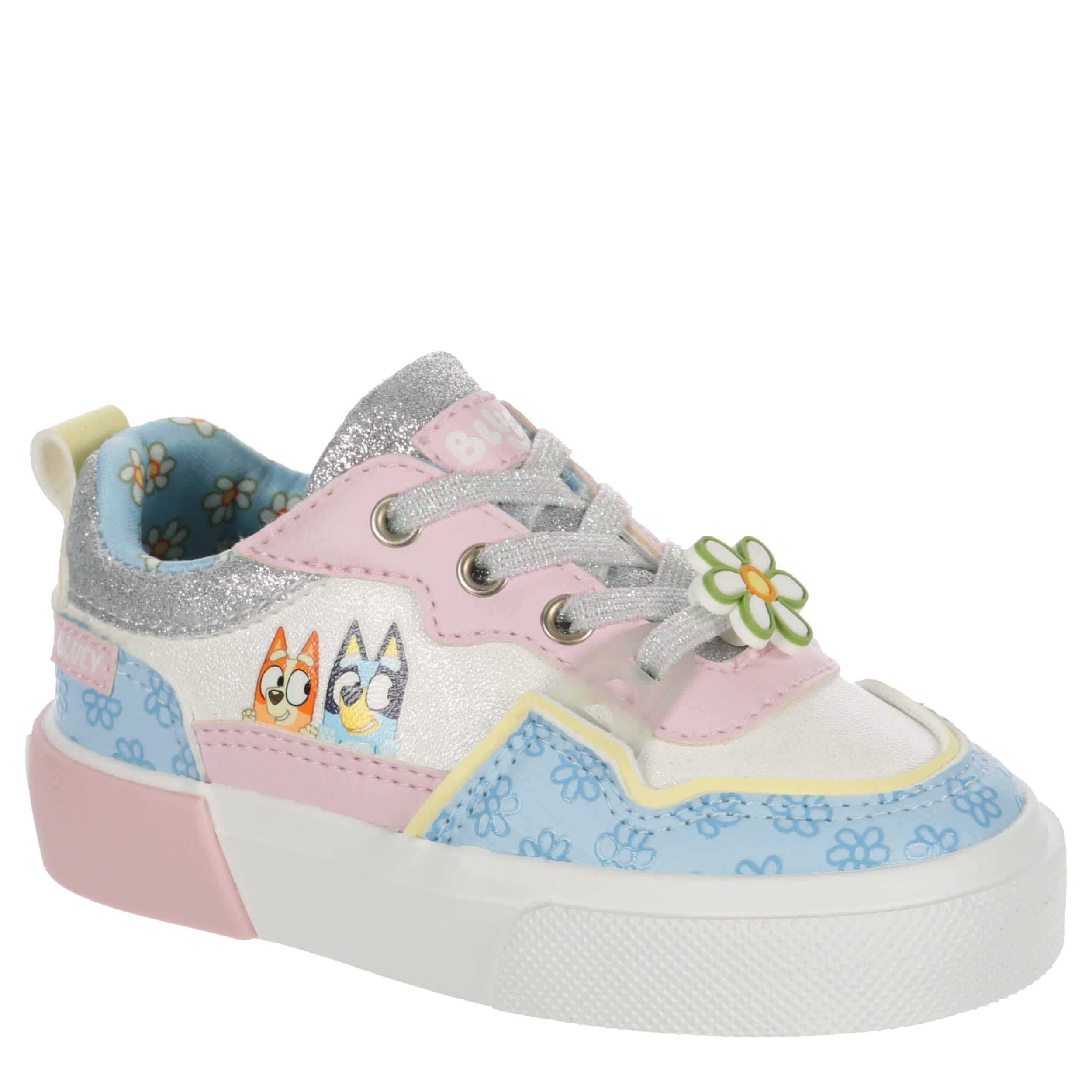 A nod to the popular series featuring a family of Australian cattle dogs, she'll love the Bluey infant girls' sneaker. Featuring a synthetic upper with the Bluey characters on the side, this low-top shoe also has a fun lace applique. Let the glittery collar & tongue make her feel like the star of daycare.