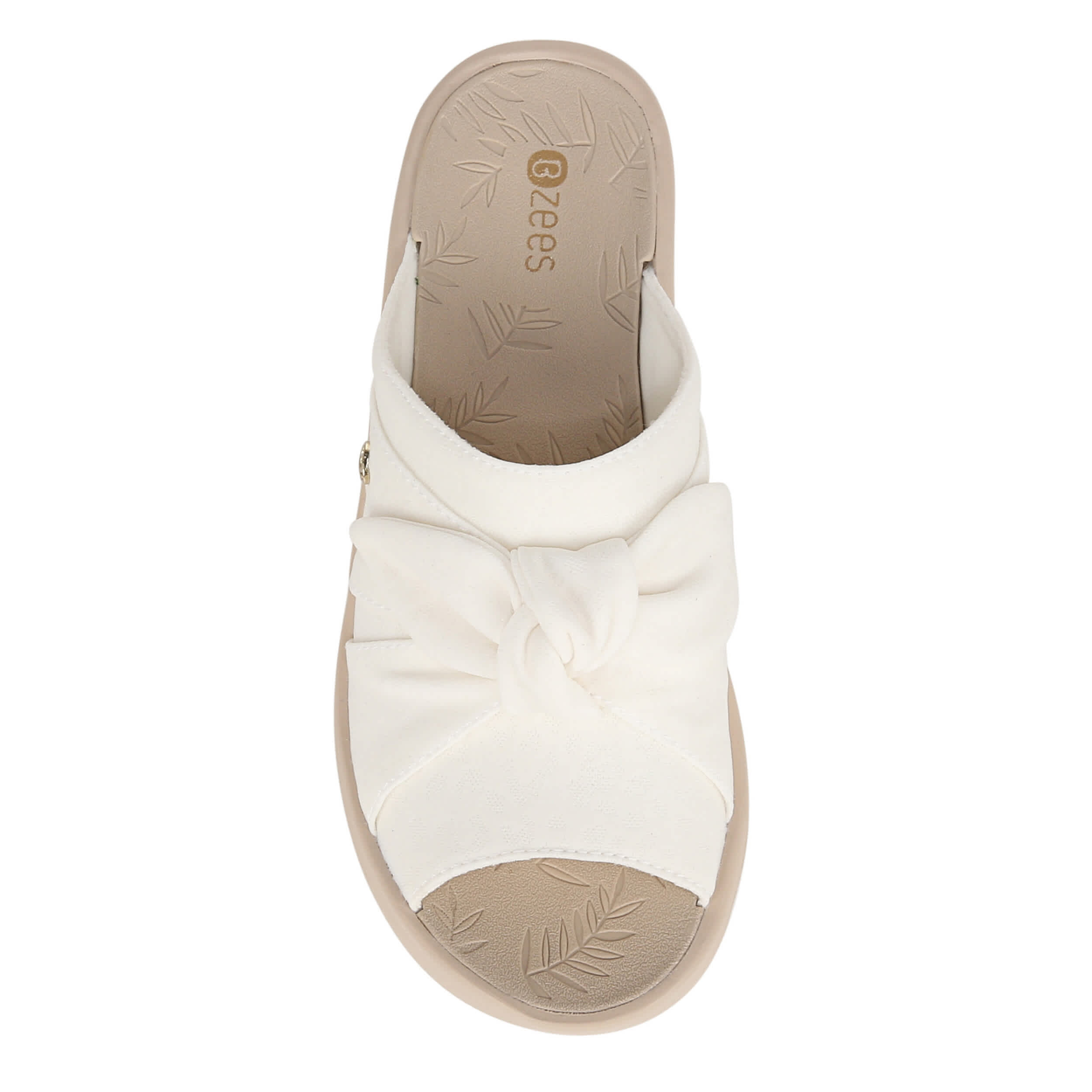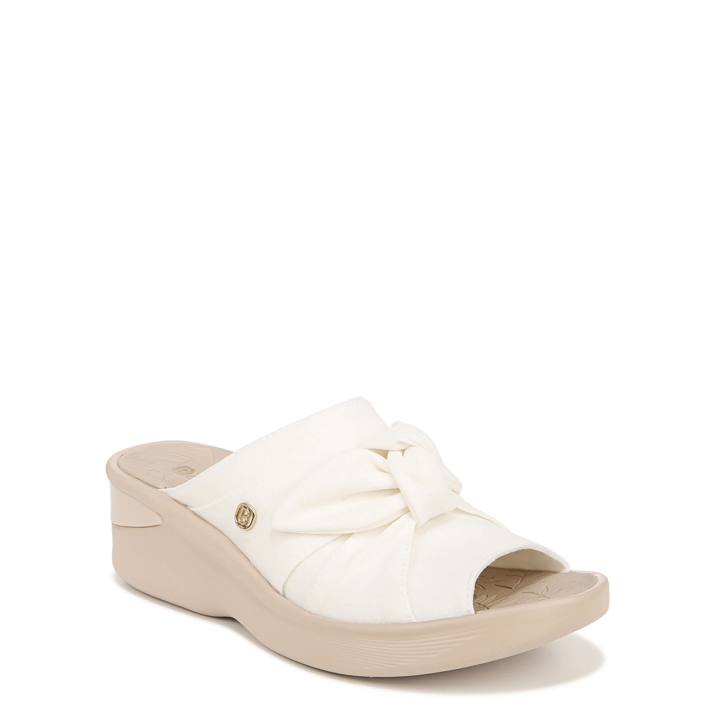 She'll look cute and comfy in the BZees Smile women's wedge sandal. With a stretch fabric upper, these slip-on sandals feature BZEES Cloud Technology and a stylish knotted bow. The Free Foam footbed and air infused outsole makes you feel weightless and energized, while the 2" wedge heel is just enough lift.