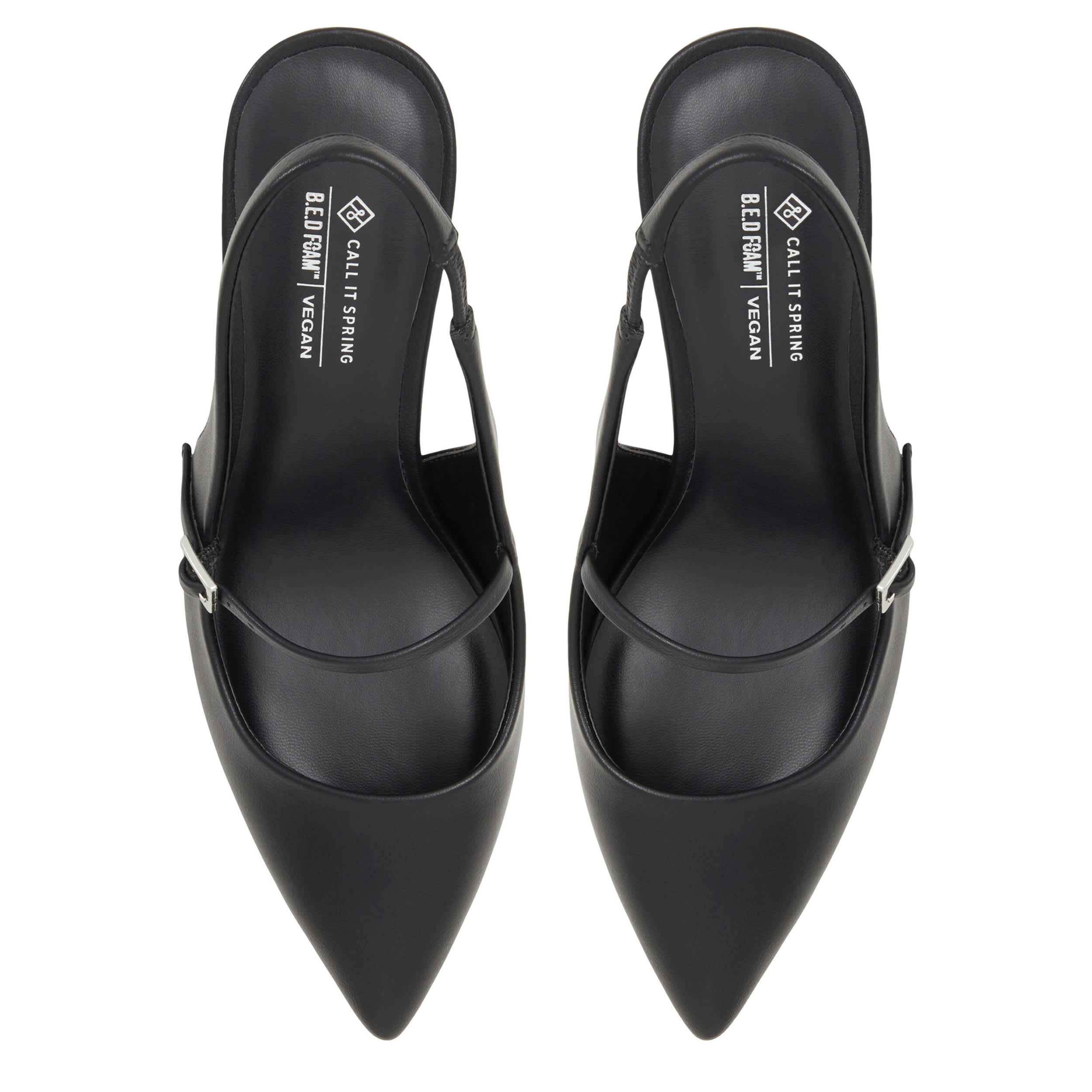 Easily transition from work to a night out in the Call It Spring Coquette pump. Featuring a faux leather upper with a sleek pointed toe, this Mary Jane heel has an elastic slingback strap for a trendy finish. The B.E.D Foamâ„¢ comfort insole offers excellent cushioning, while the block heel gives a nice lift.