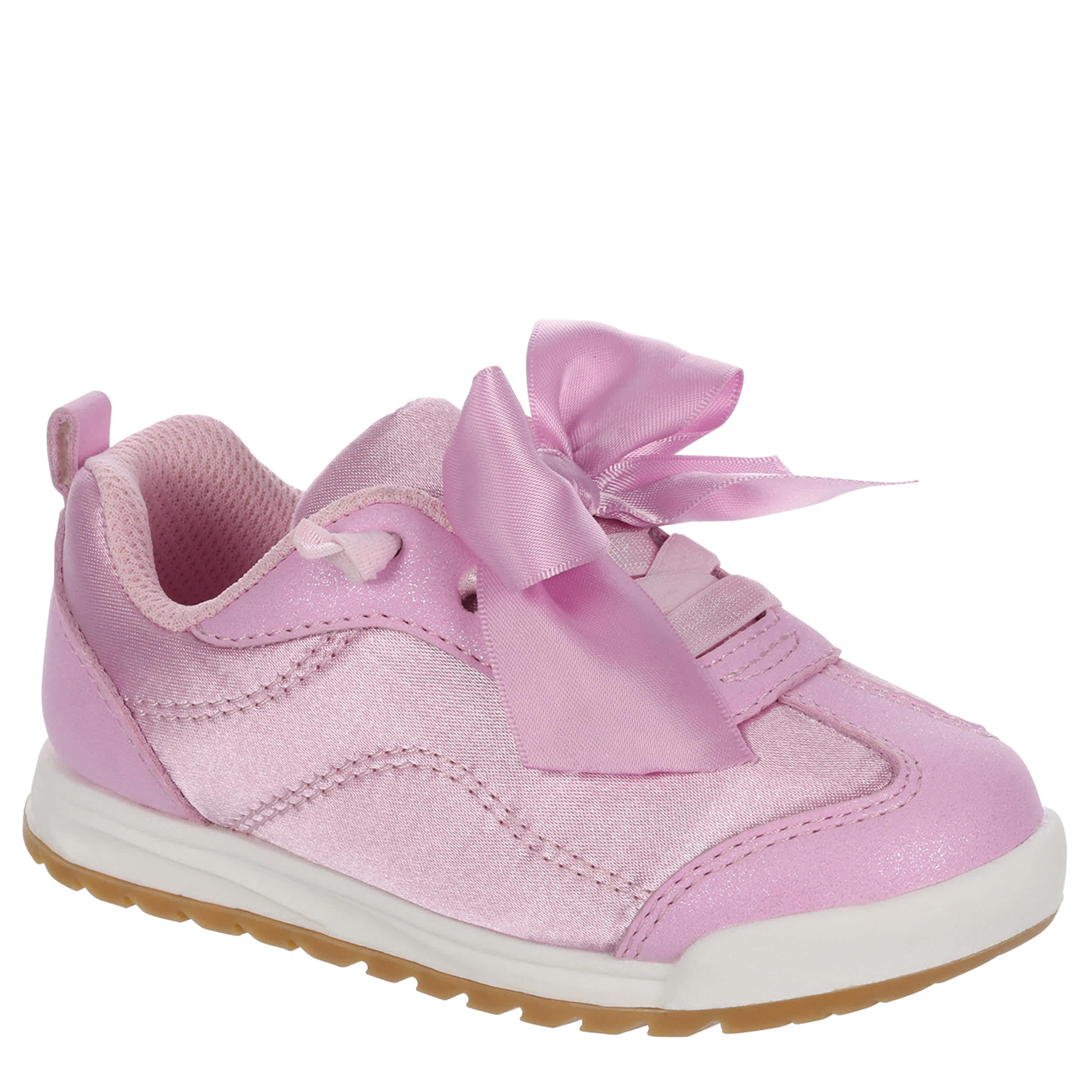 Cute and active, the Carters Moira infant girls' sneaker is made for her adventures. Featuring a retro T-toe design with an oversized bow, this shoe gives a fun touch to all her outfits. The comfy footbed and non-skid outsole ensure supported steps for all-day play.
