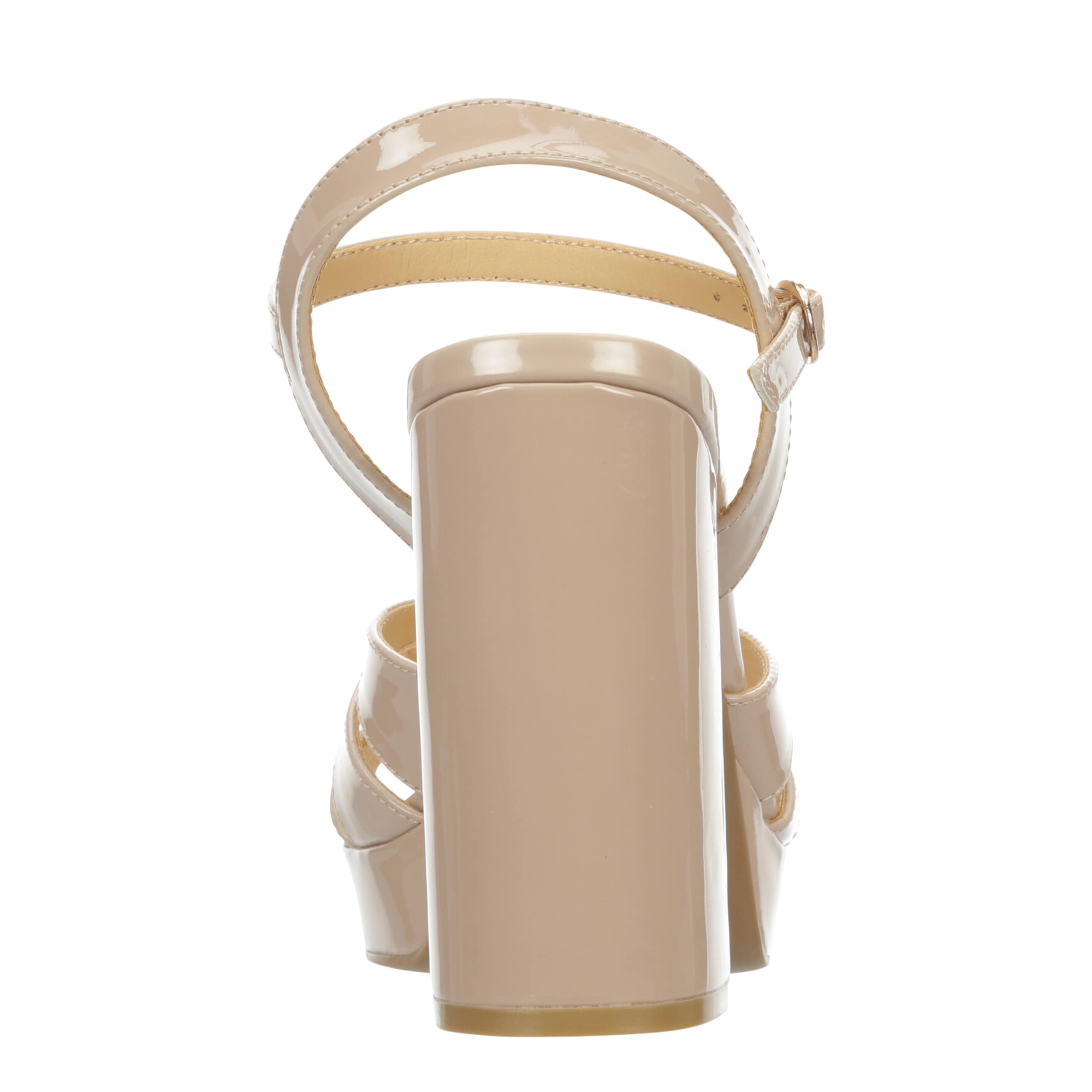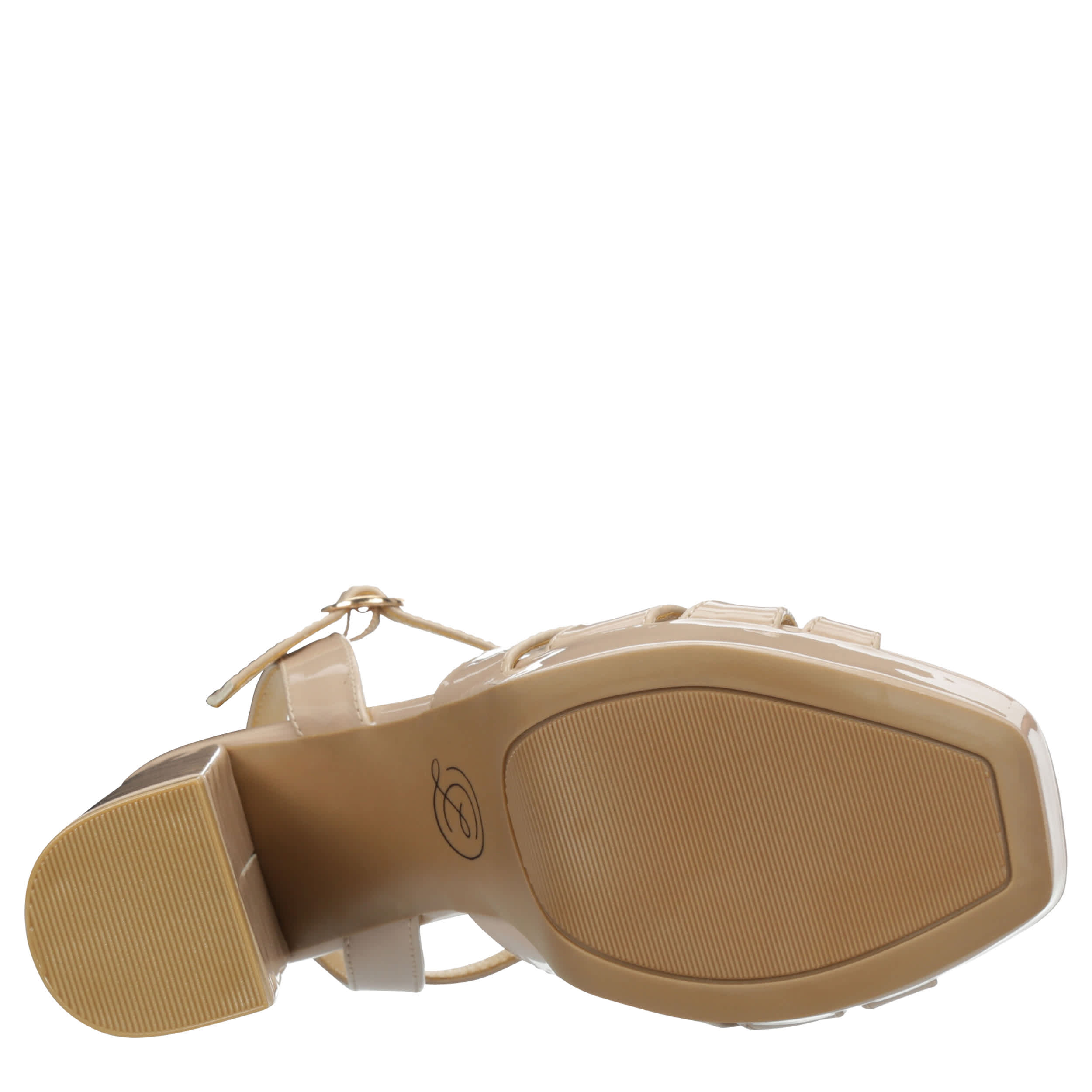 Dress up your look with the Alkie platform sandal from Chinese Laundry. With an interlocked patent leather upper and square toe, this shoe is perfect for a fun night out with the girls. The footbed comforts your foot, while the heel gives a substantial lift.