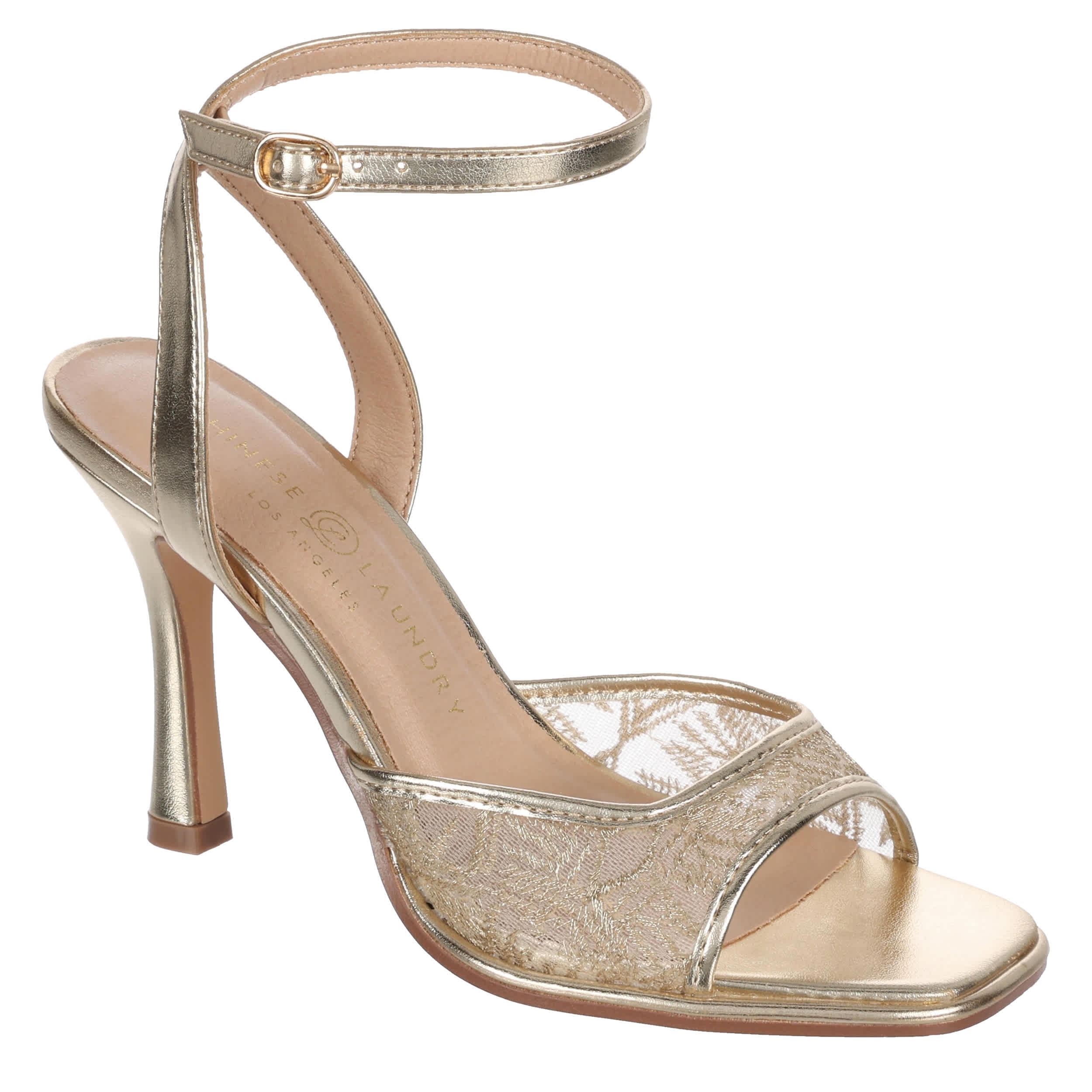 Glide into your next event with the Chinese Laundry Lena sandal. Featuring a lightweight mesh & faux leather upper, this shoe keeps you on trend with its sleek silhouette and square toe. The lightly padded insole soothes your foot, while the heel adds lofty lift.