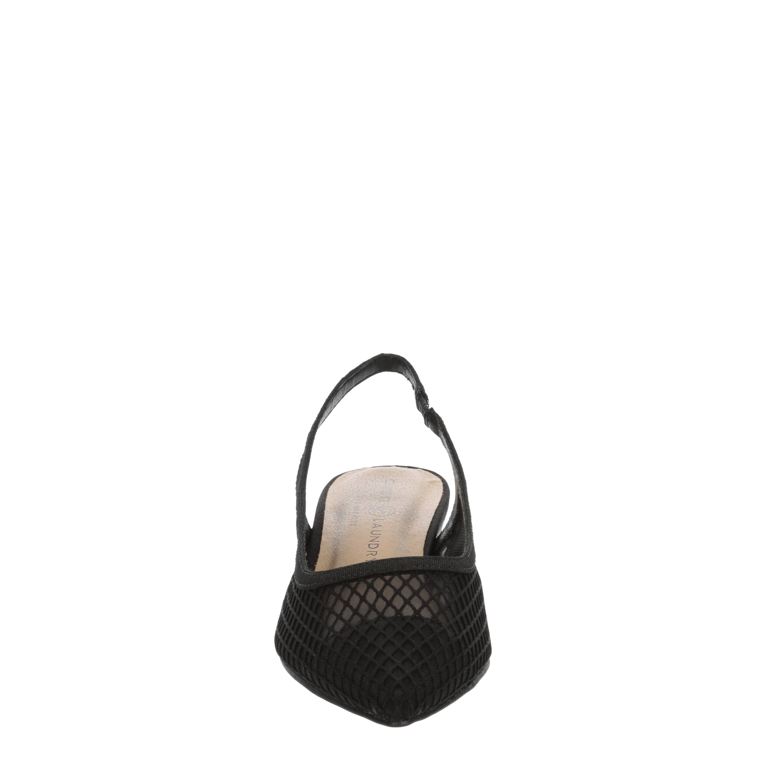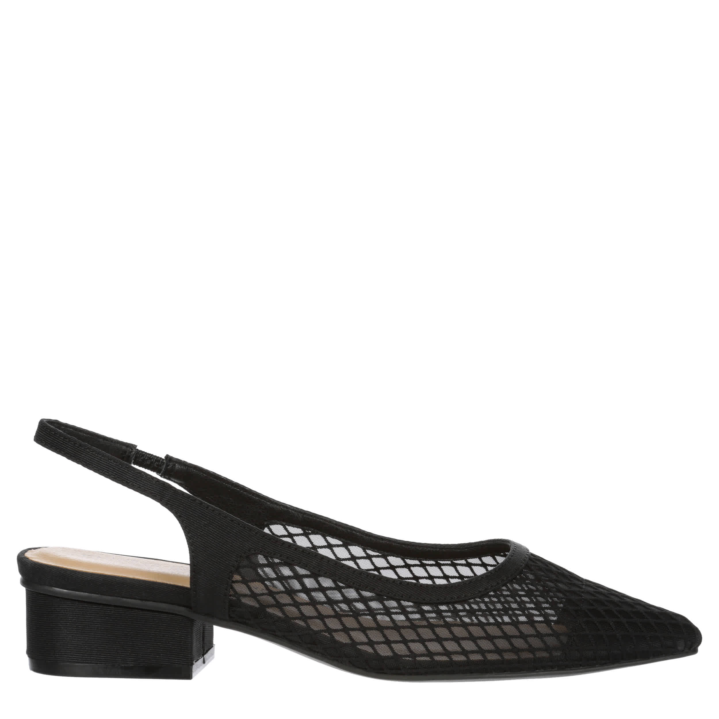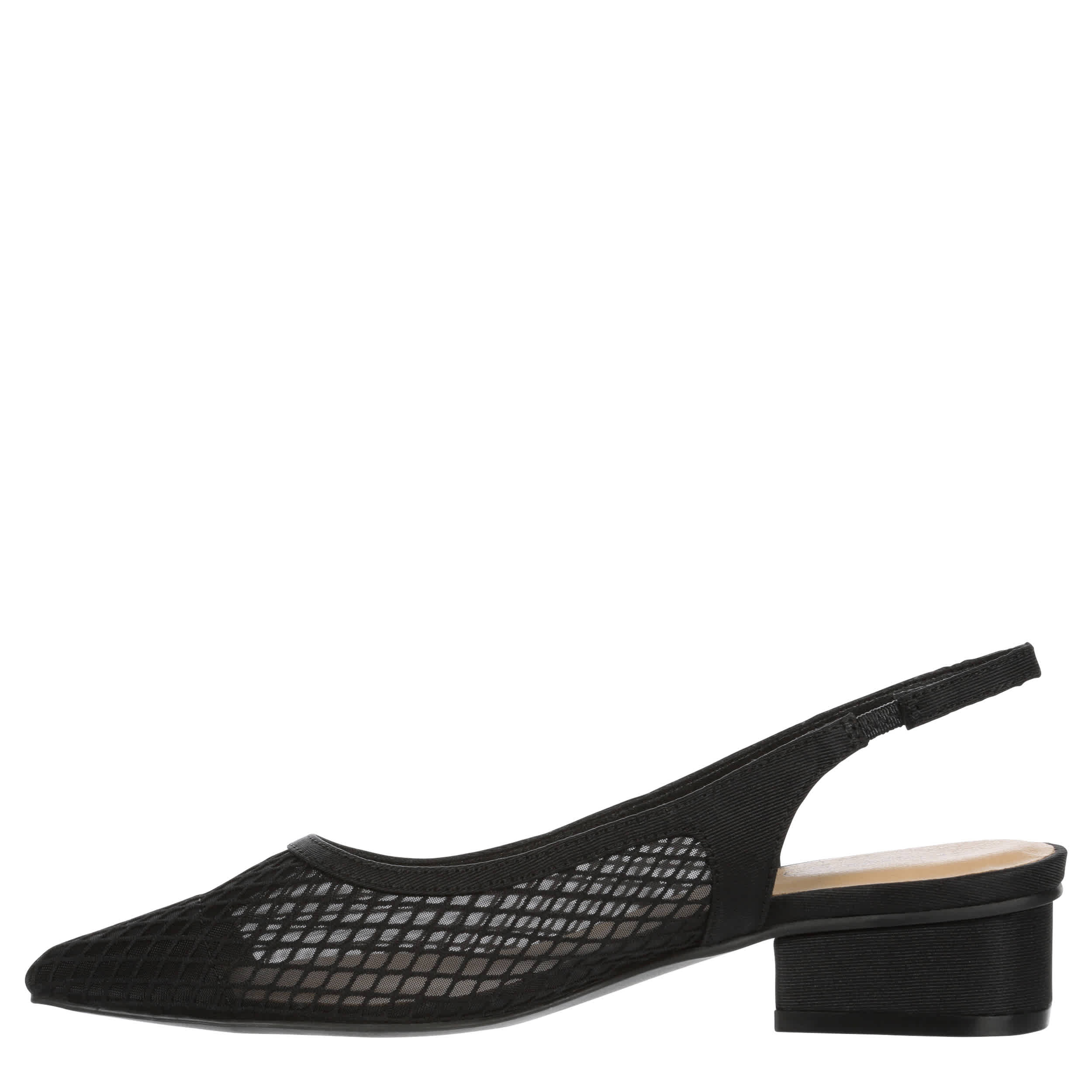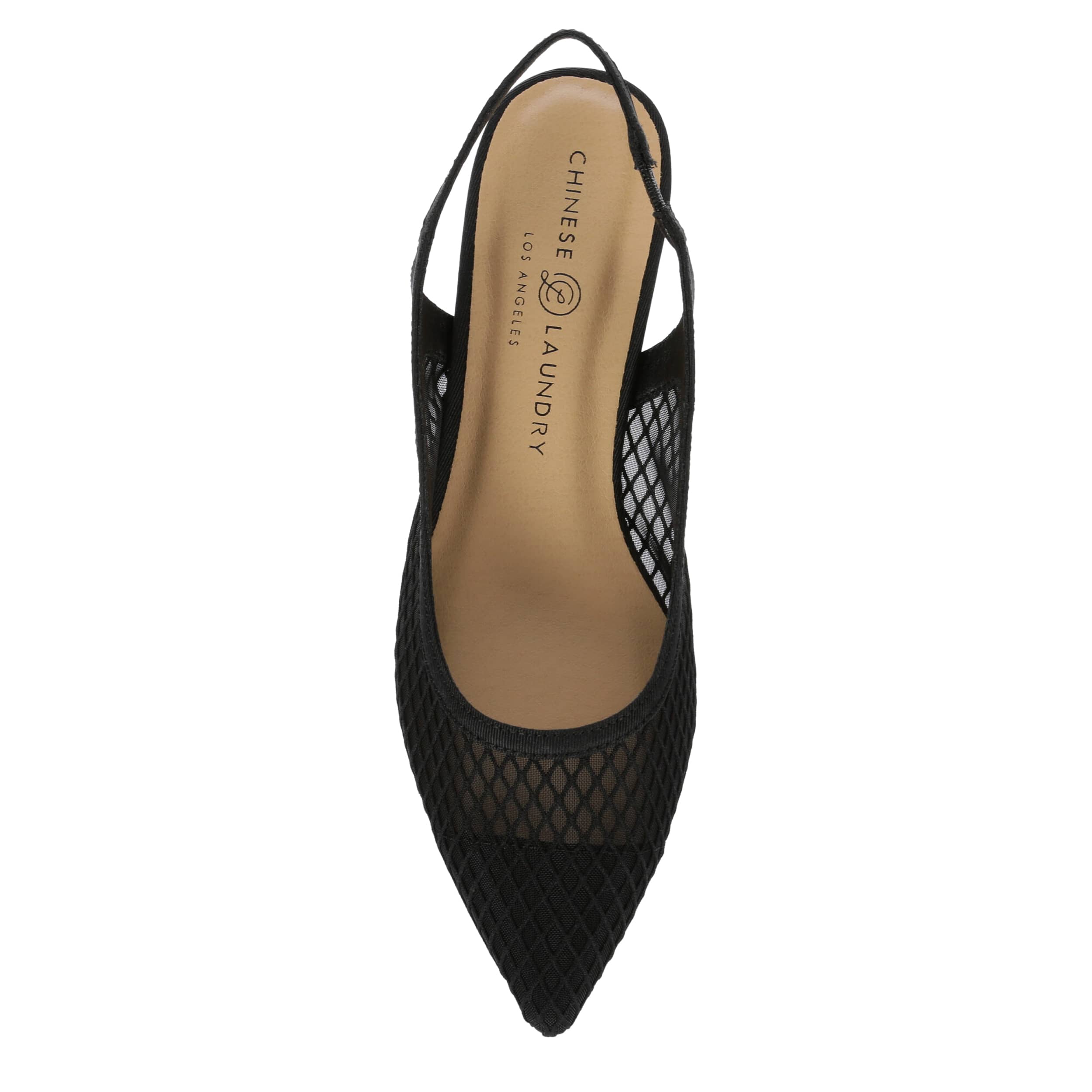 Your style gets a dose of sophisticated whimsy in the Mango women's pump from Chinese Laundry. Featuring a printed fabric & synthetic upper with a sleek pointed toe, this elastic slingback shoe's scalloped trim shows its exuberance and charm. The insole soothes your foot, while the low heel adds stability.