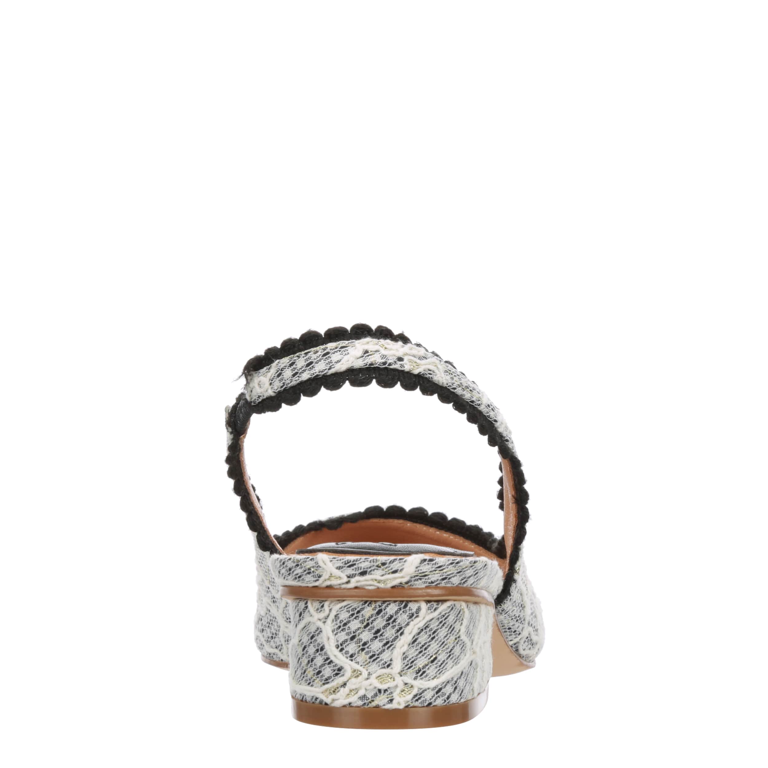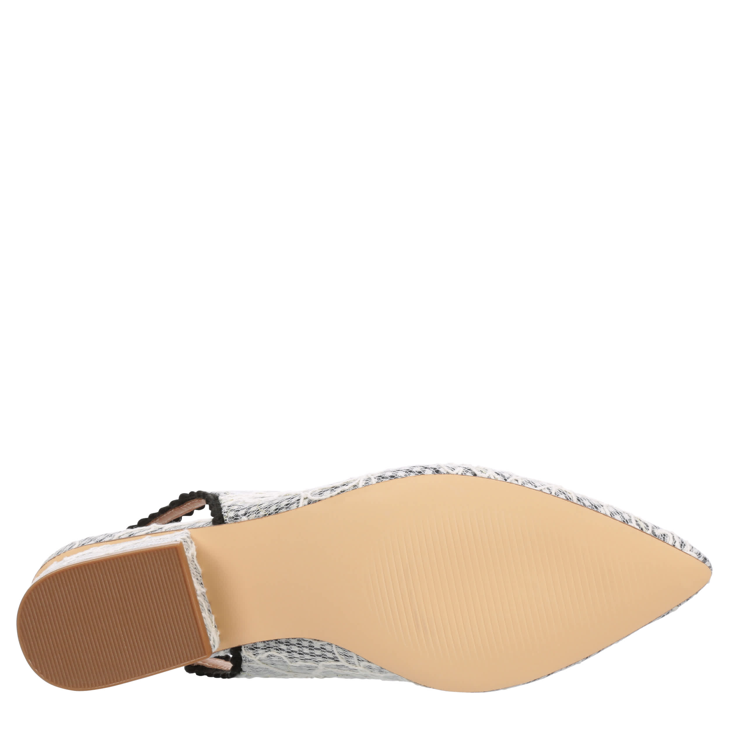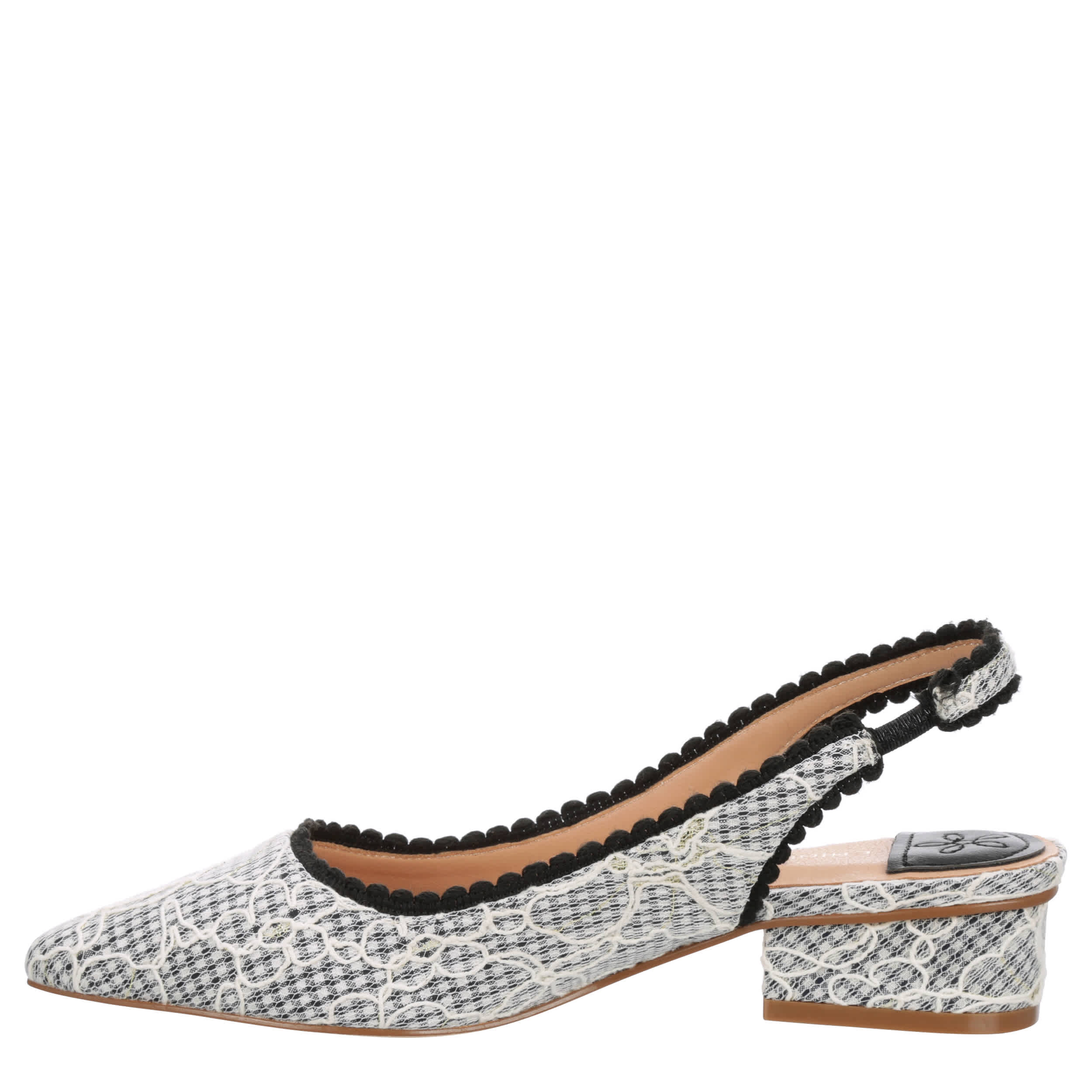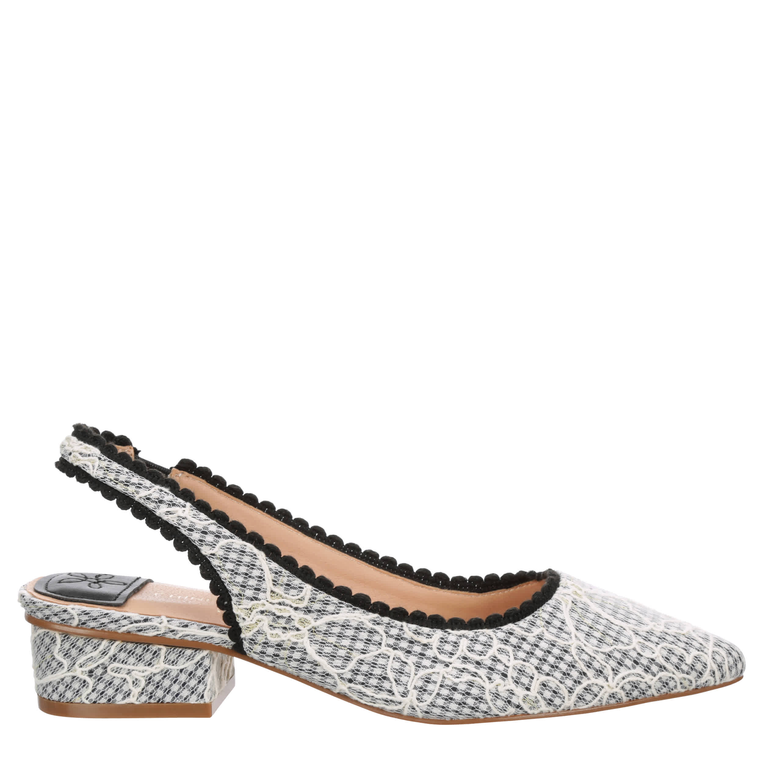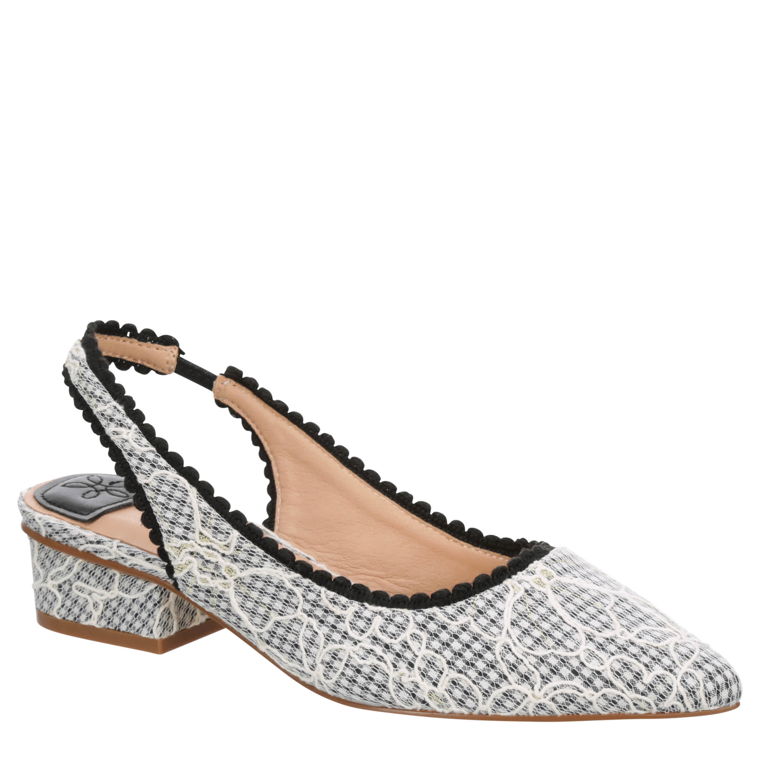 Your style gets a dose of sophisticated whimsy in the Mango women's pump from Chinese Laundry. Featuring a printed fabric & synthetic upper with a sleek pointed toe, this elastic slingback shoe's scalloped trim shows its exuberance and charm. The insole soothes your foot, while the low heel adds stability.
