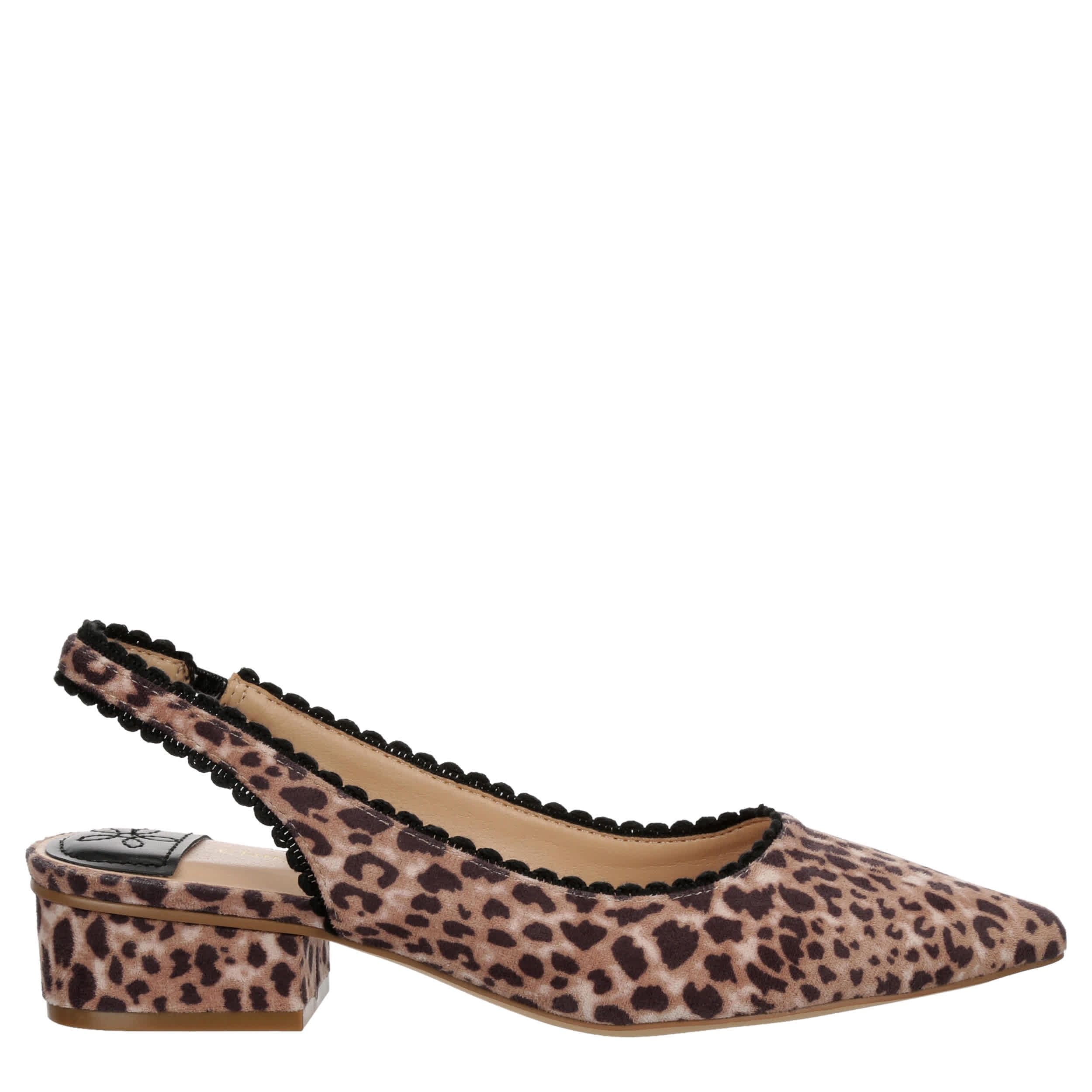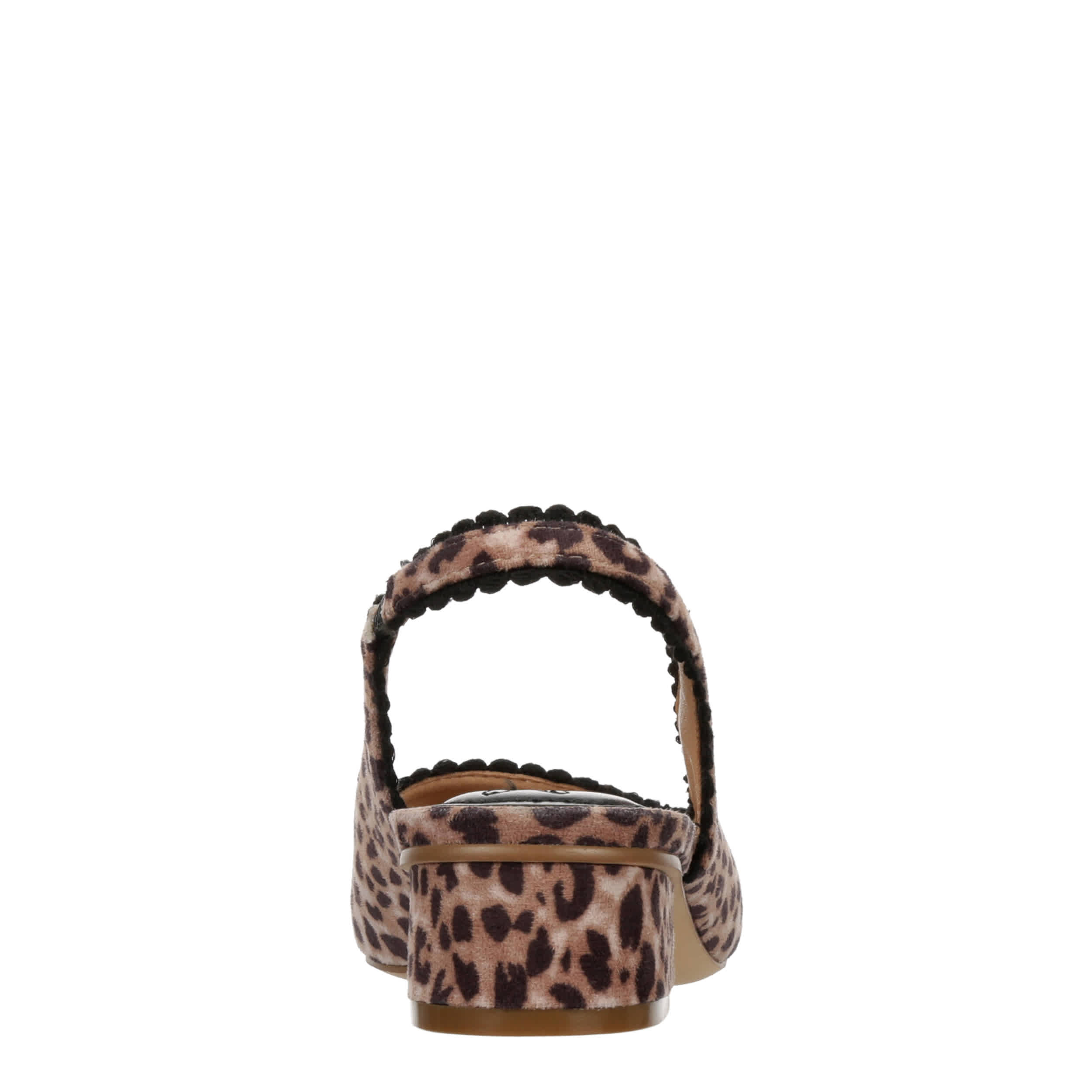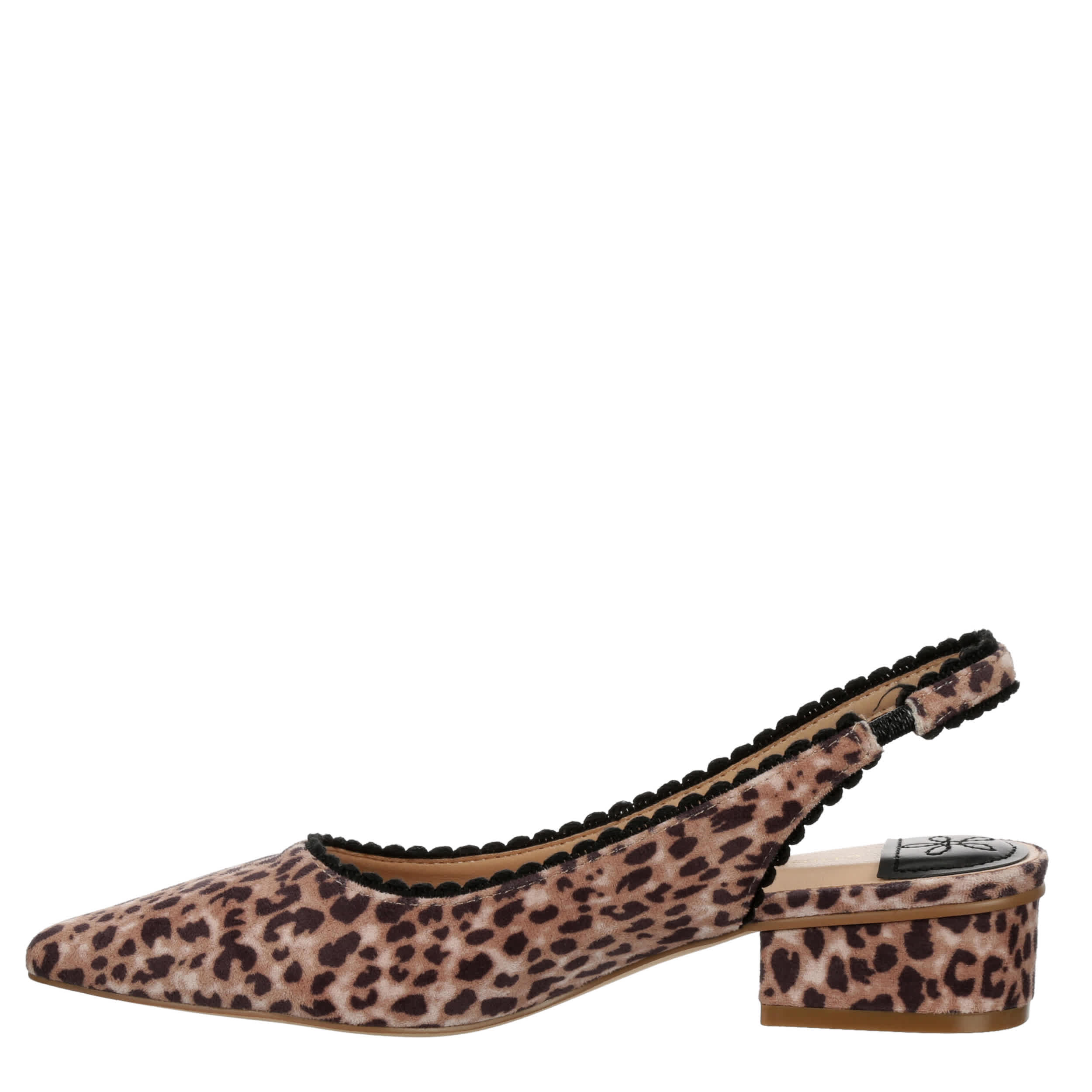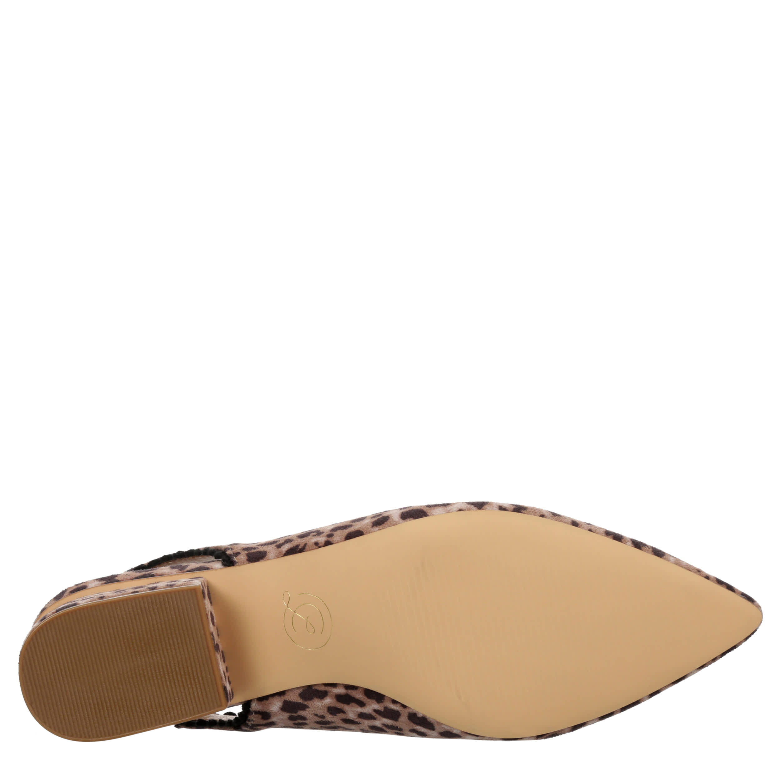 Your style gets a dose of sophisticated whimsy in the Mango women's pump from Chinese Laundry. Featuring a printed faux suede upper with a sleek pointed toe, this elastic slingback shoe's scalloped trim shows its exuberance and charm. The insole soothes your foot, while the low heel adds stability.