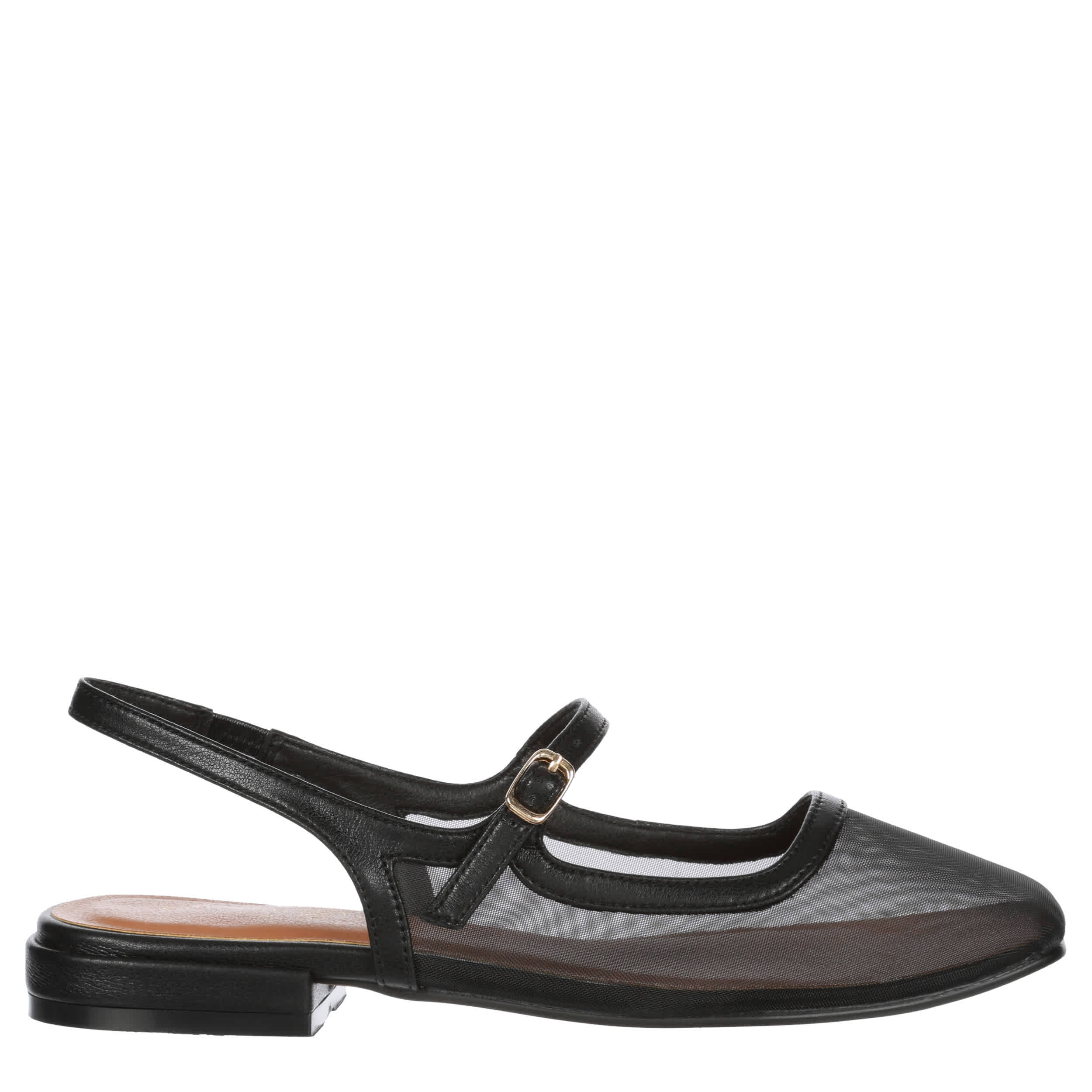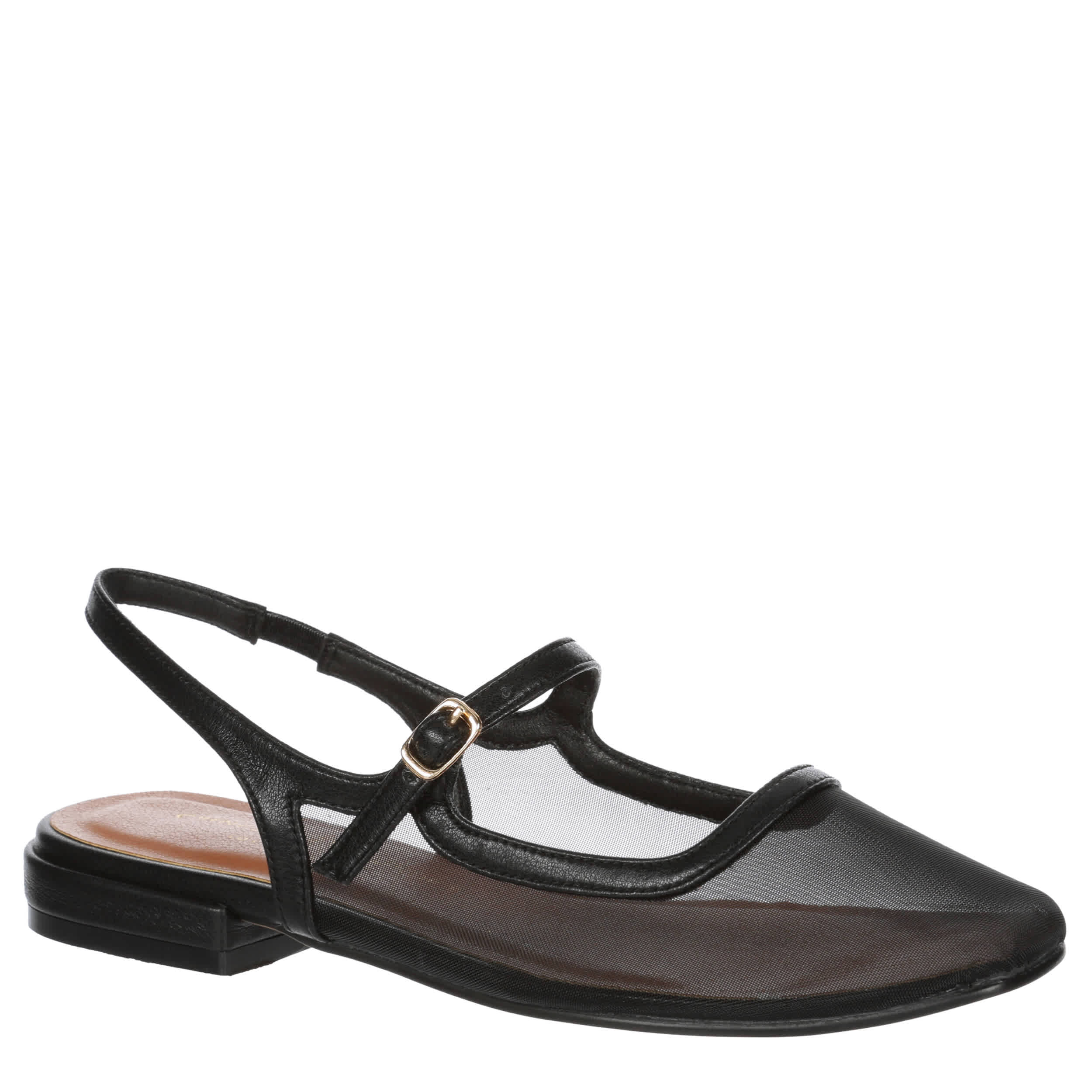 Modern vintage gets celebrated in the Vila flat from Chinese Laundry. With a chic sheer upper, this square-toed slingback also has a Mary Jane-styled buckle strap for classic style. The insole comforts your foot, while the outsole ensures durability.