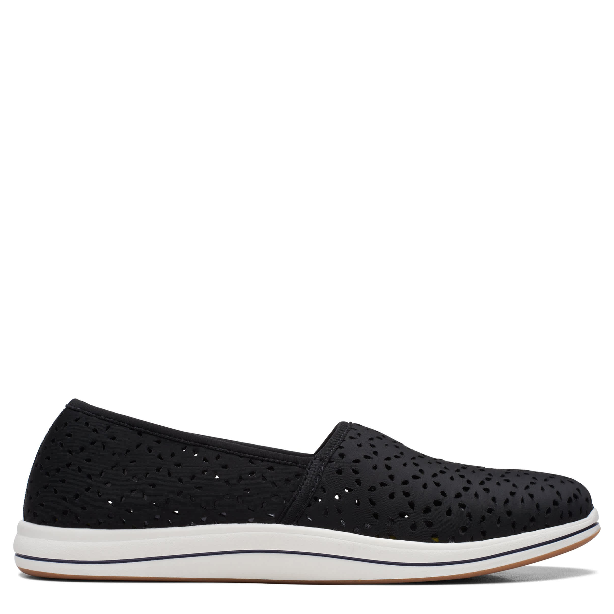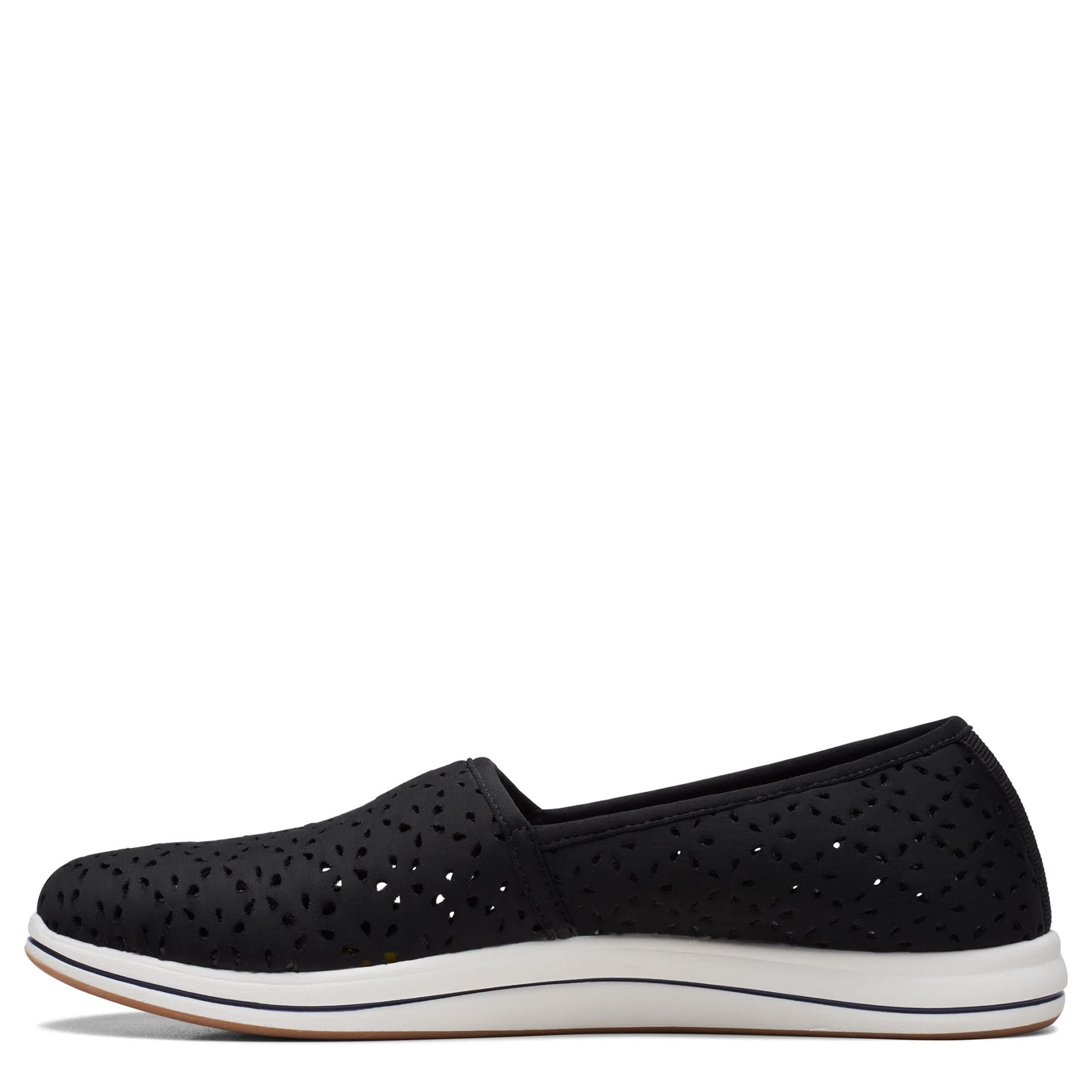 Easy style that plays up your ladylike sensibility is the Breeze Emily women's slip-on sneaker from Clarks. Featuring a synthetic upper with air perforations, this shoe is perfect for warmer weather. The Cushion Softâ„¢ footbed ensures comfort while the lightweight sole offers traction.