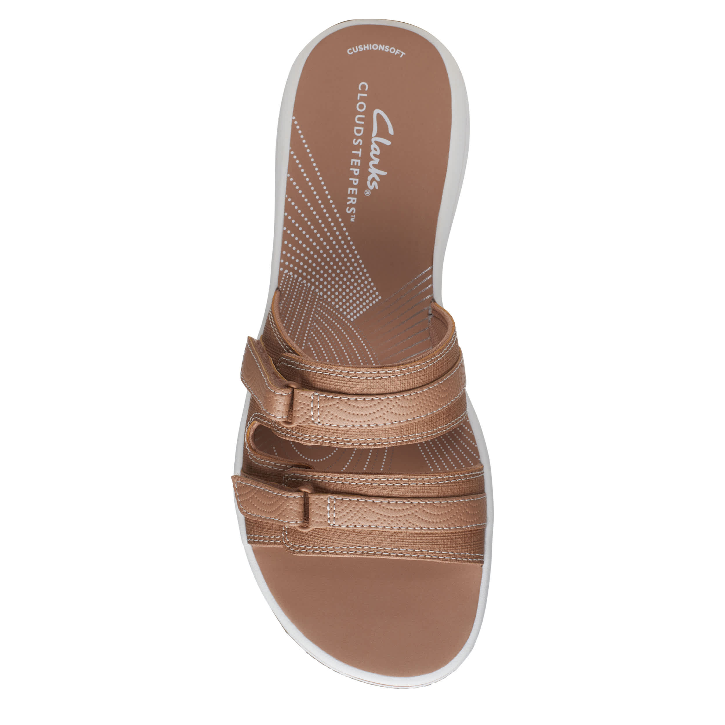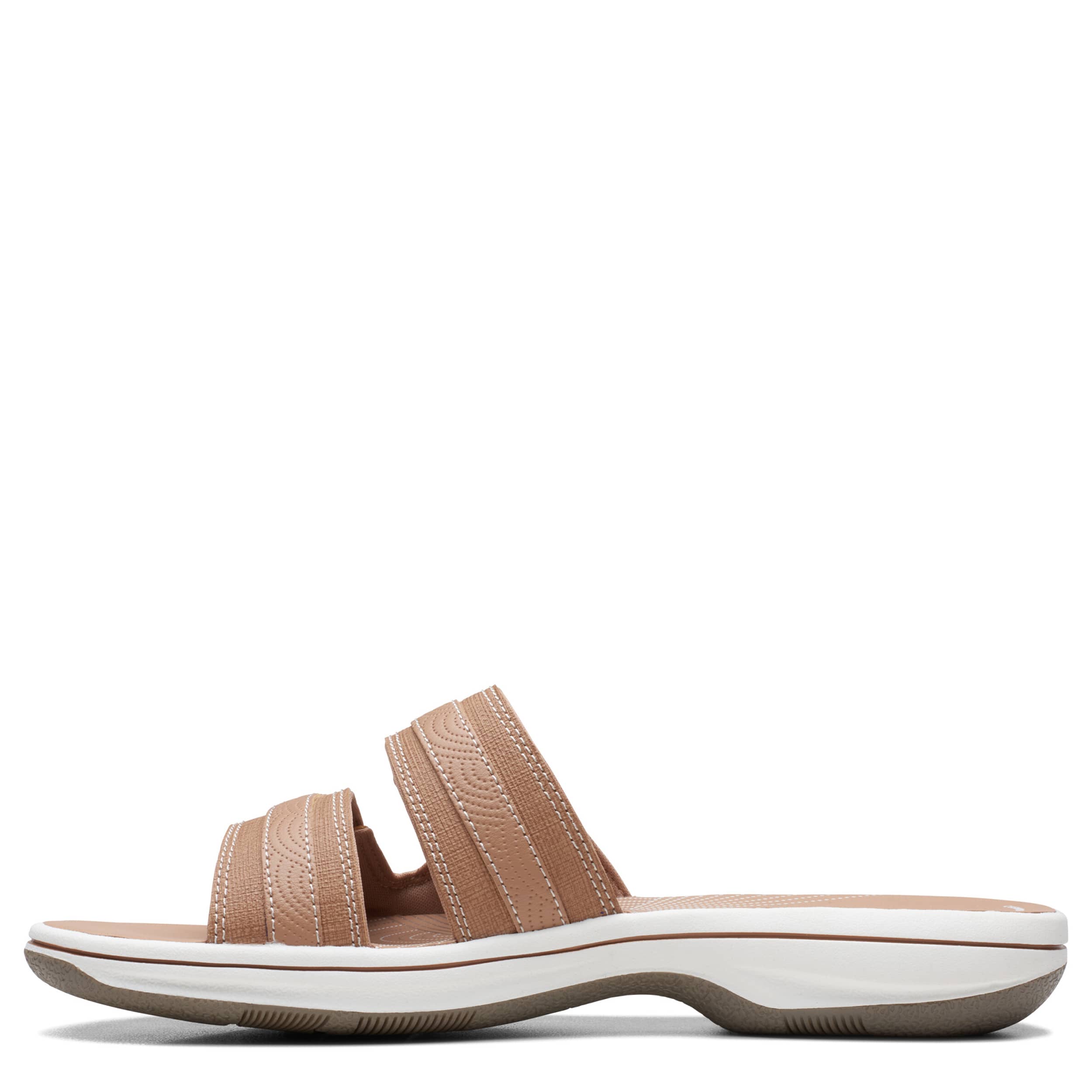 Chill by the shore or go into town with the Breeze Piper women's sandal from Clarks. Featuring a faux leather upper with dual adjustable closures for a custom fit, this slide is part of Clarks's comfy Cloudsteppers Collection. The Cushion Softâ„¢ footbed ensures comfort while the lightweight sole stays flexible.