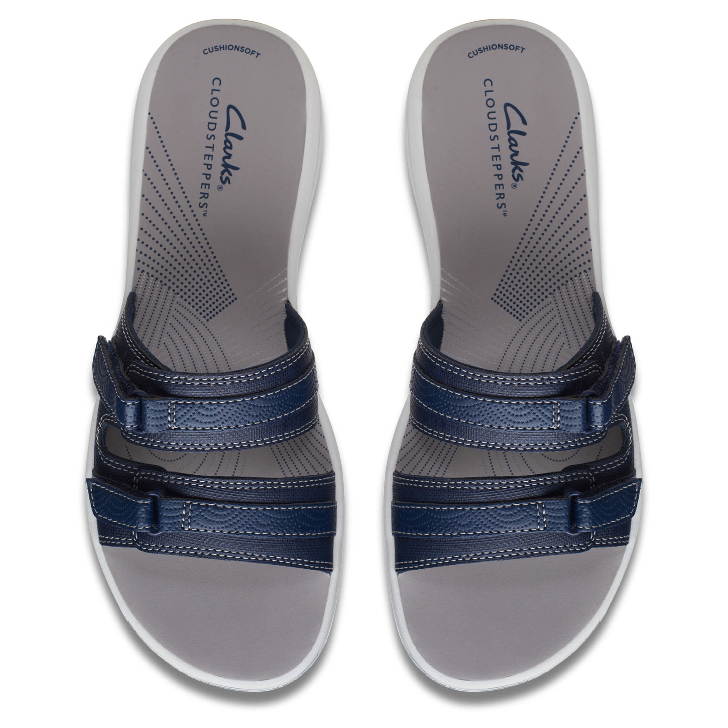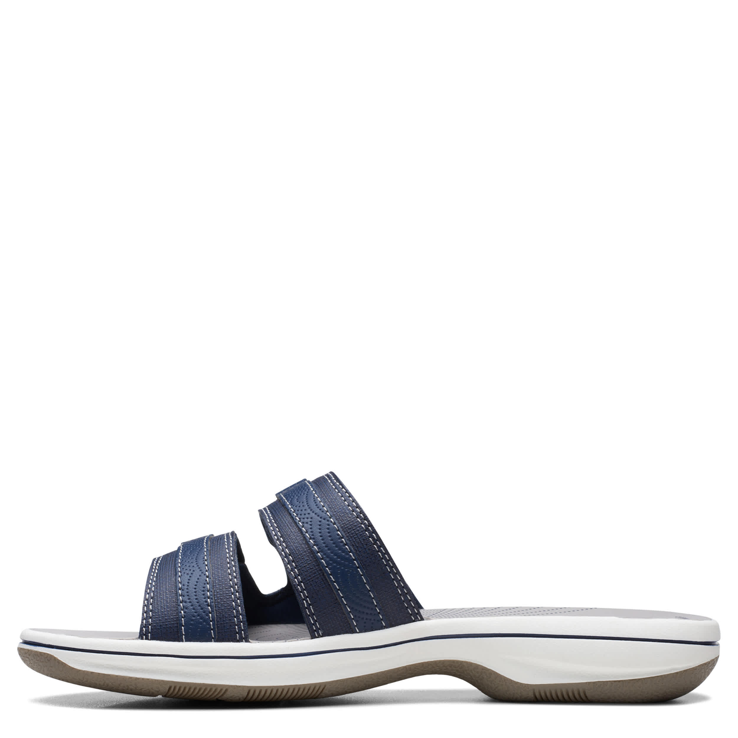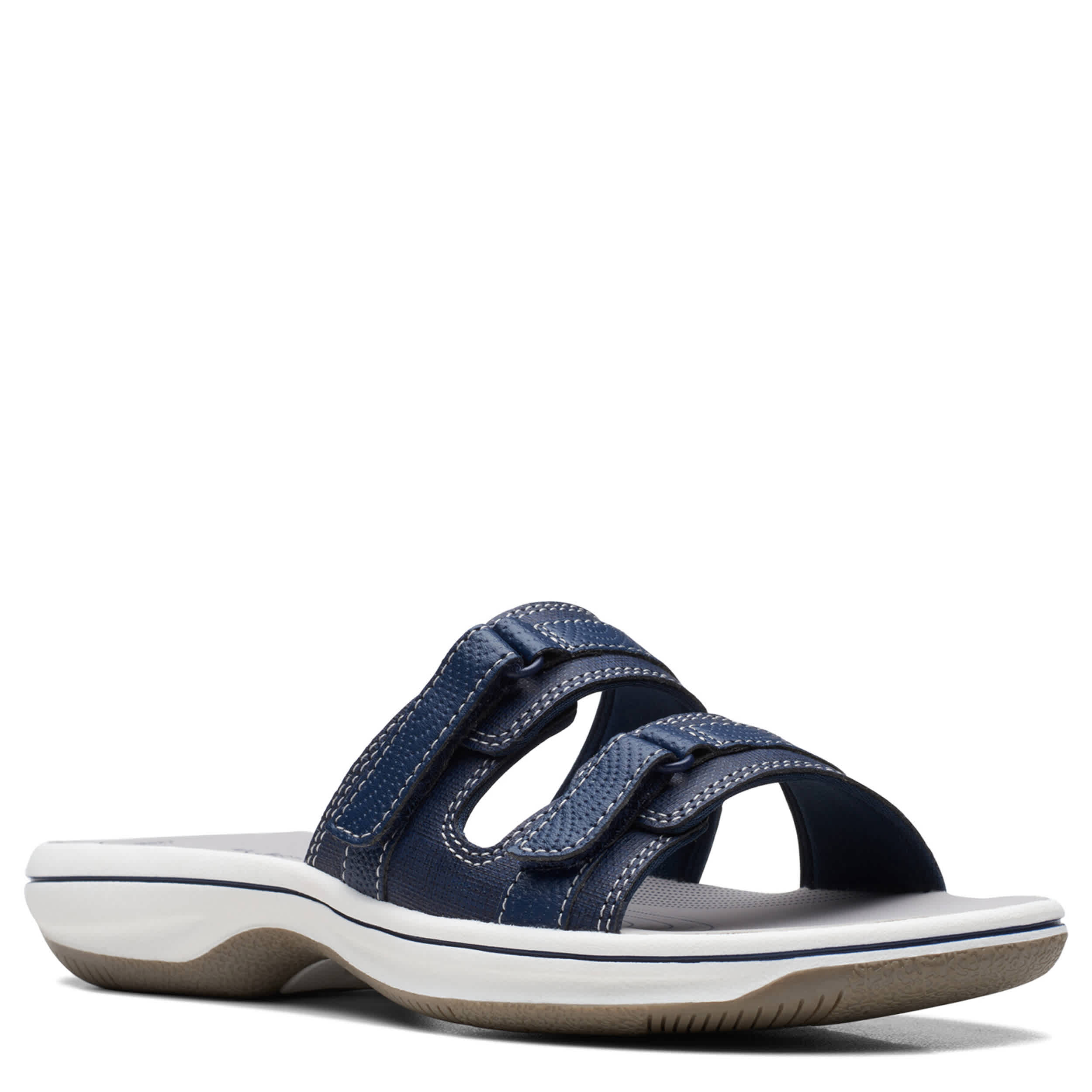 Chill by the shore or go into town with the Breeze Piper women's sandal from Clarks. Featuring a faux leather upper with dual adjustable closures for a custom fit, this slide is part of Clarks's comfy Cloudsteppers Collection. The Cushion Softâ„¢ footbed ensures comfort while the lightweight sole stays flexible.