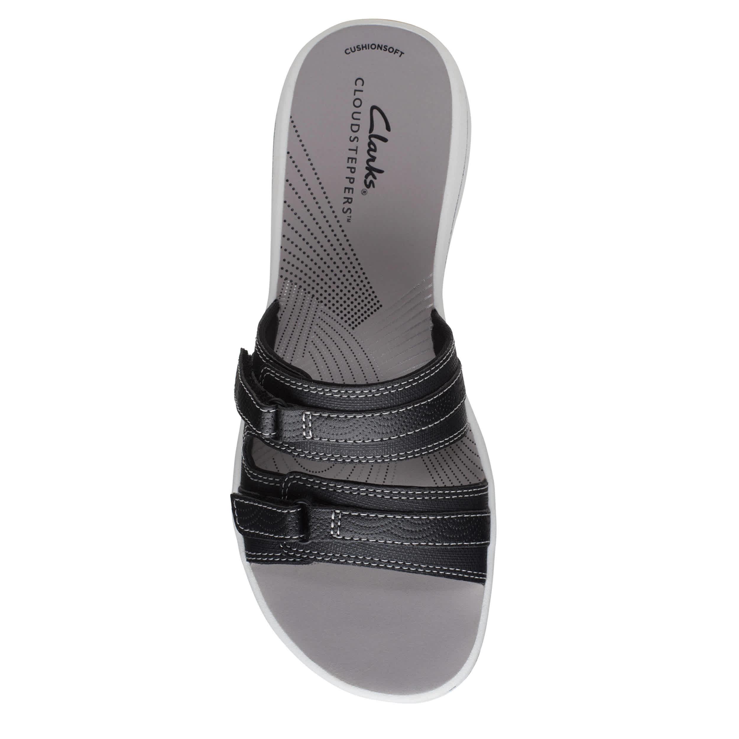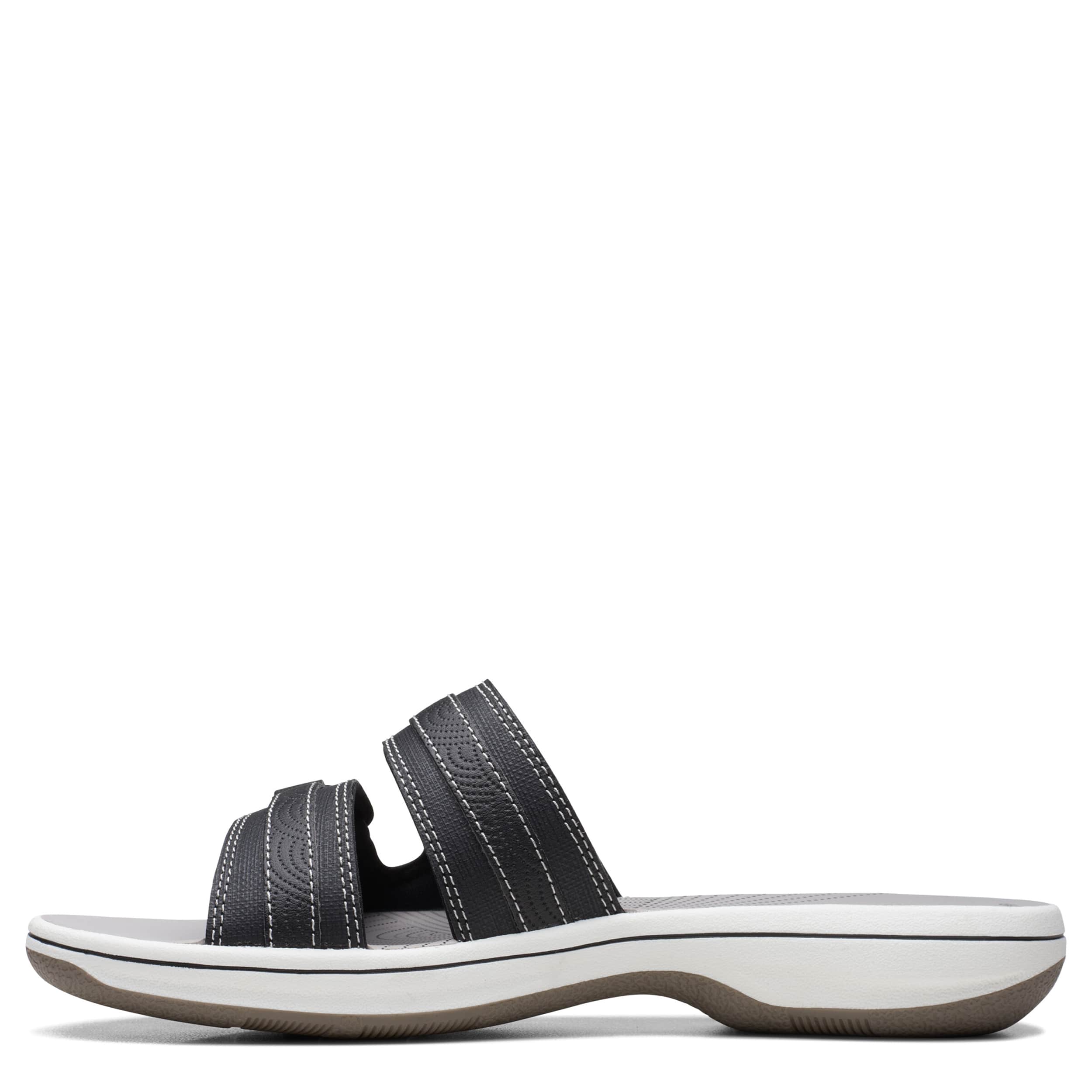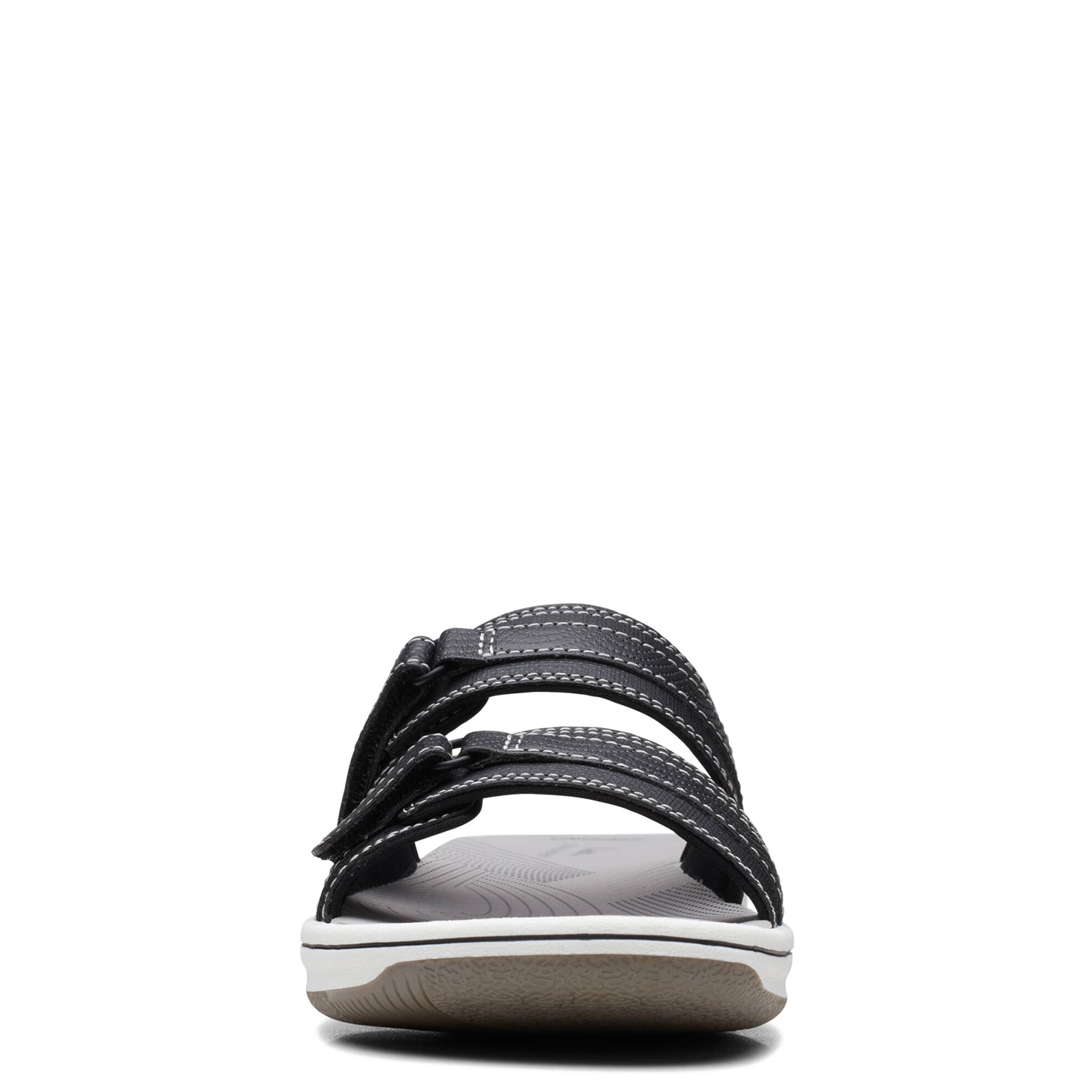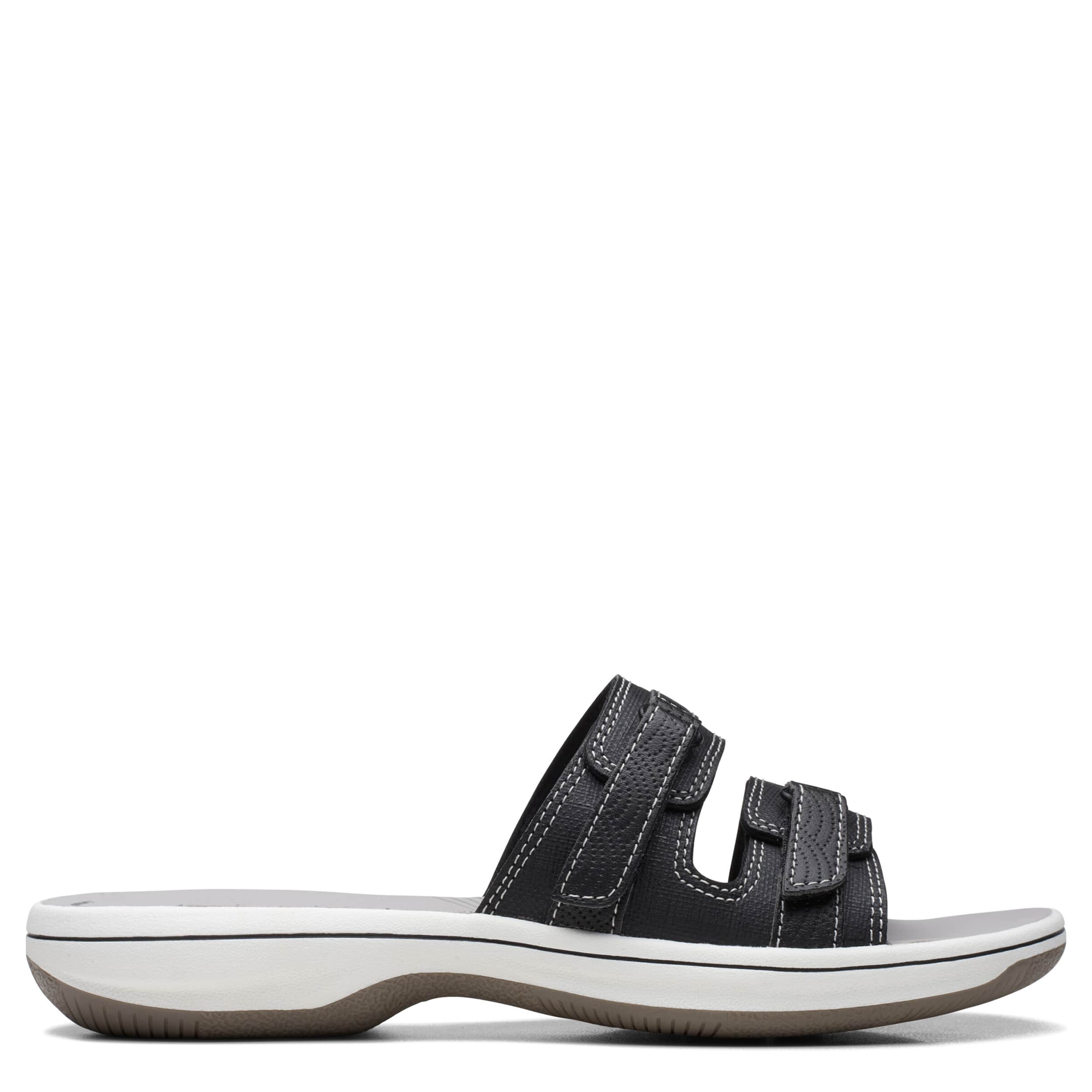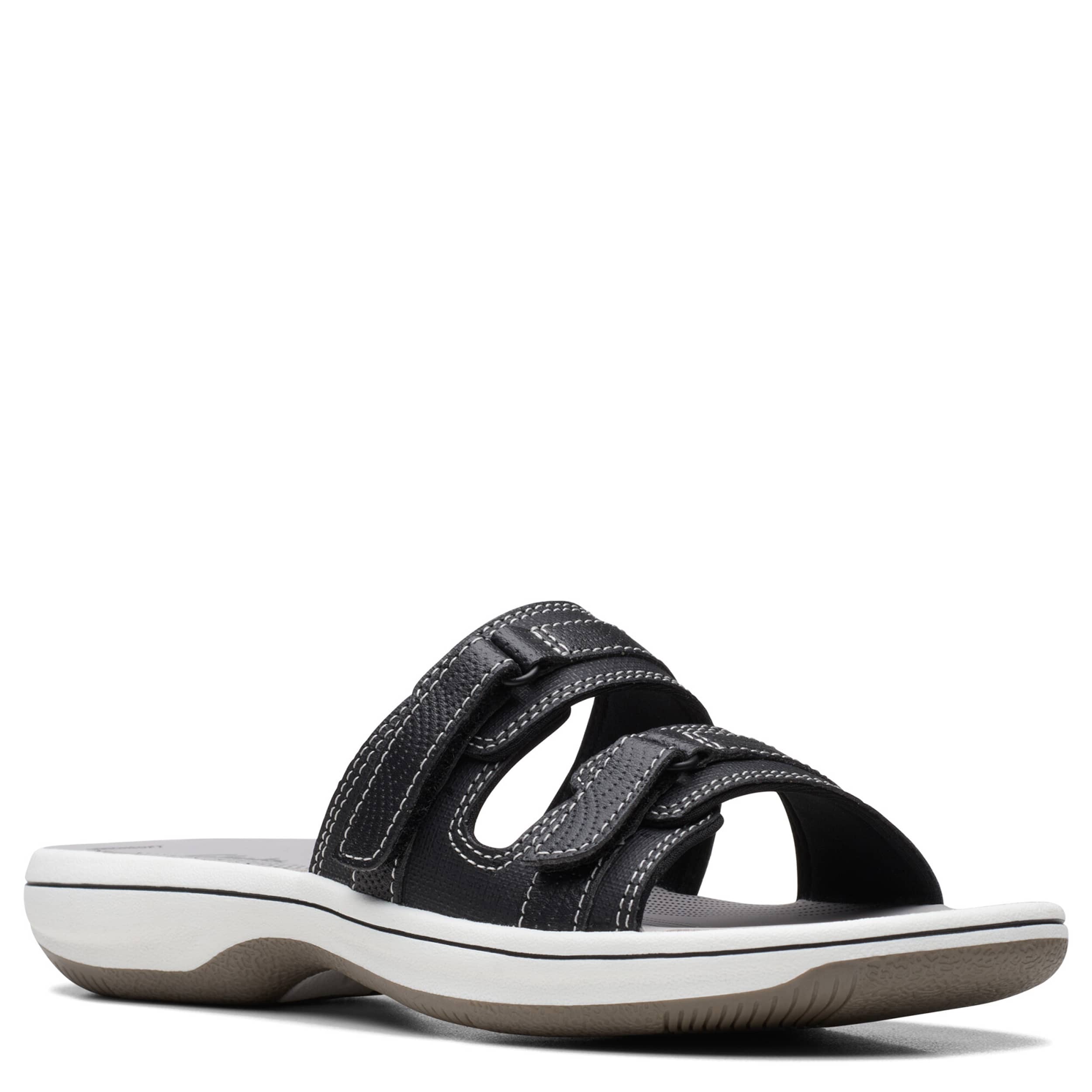 Chill by the shore or go into town with the Breeze Piper women's sandal from Clarks. Featuring a faux leather upper with dual adjustable closures for a custom fit, this slide is part of Clarks's comfy Cloudsteppers Collection. The Cushion Softâ„¢ footbed ensures comfort while the lightweight sole stays flexible.
