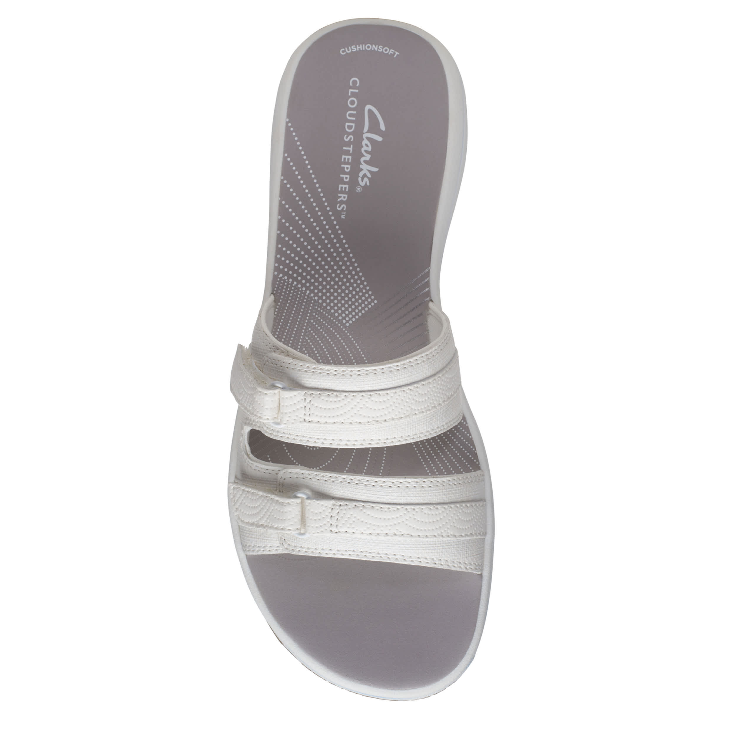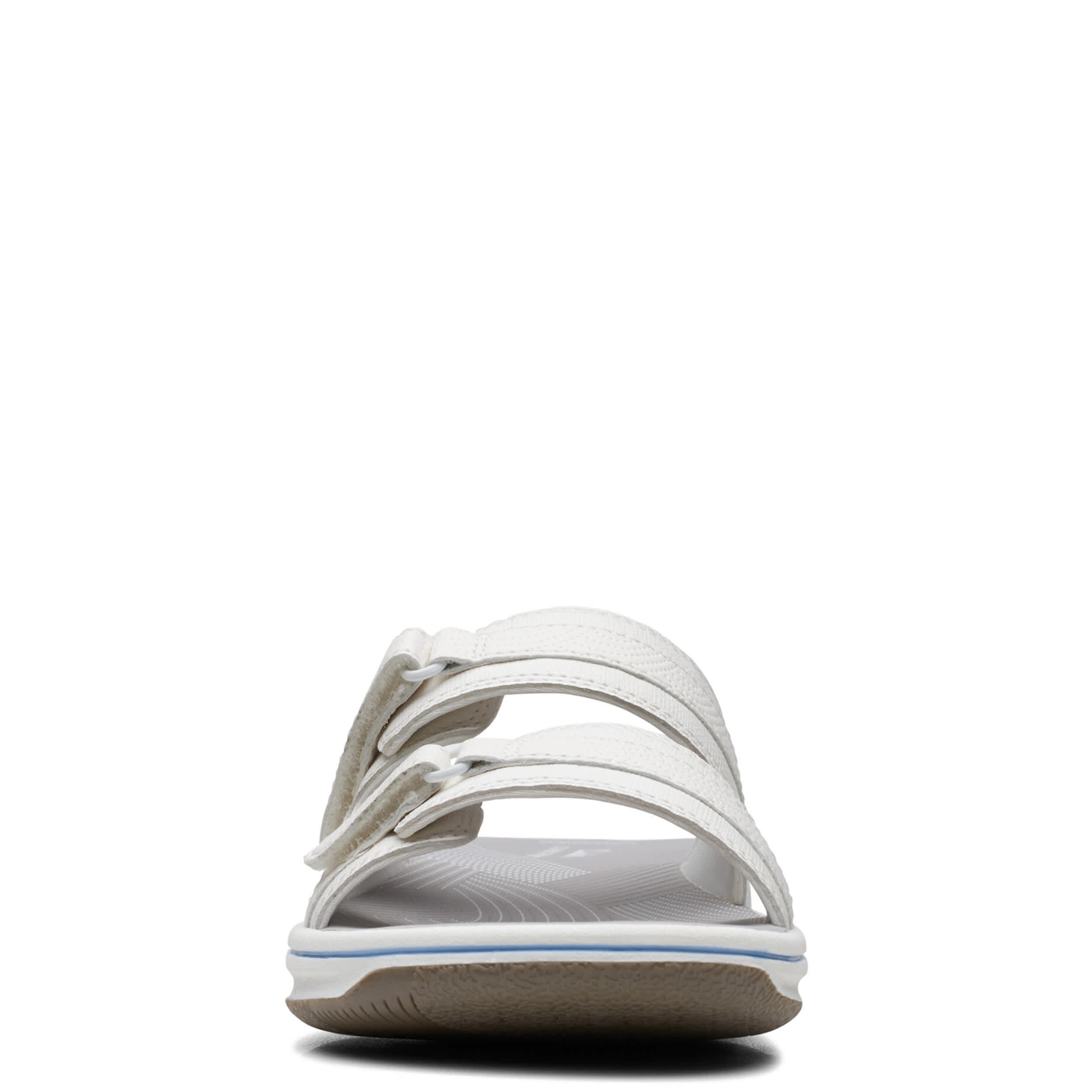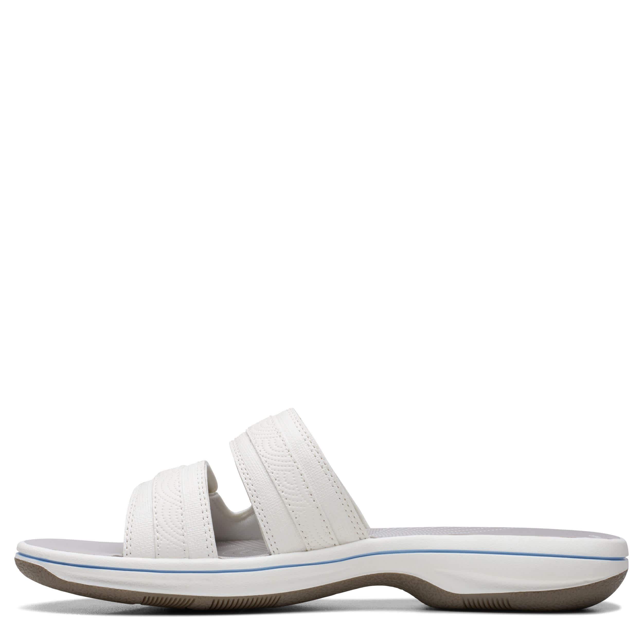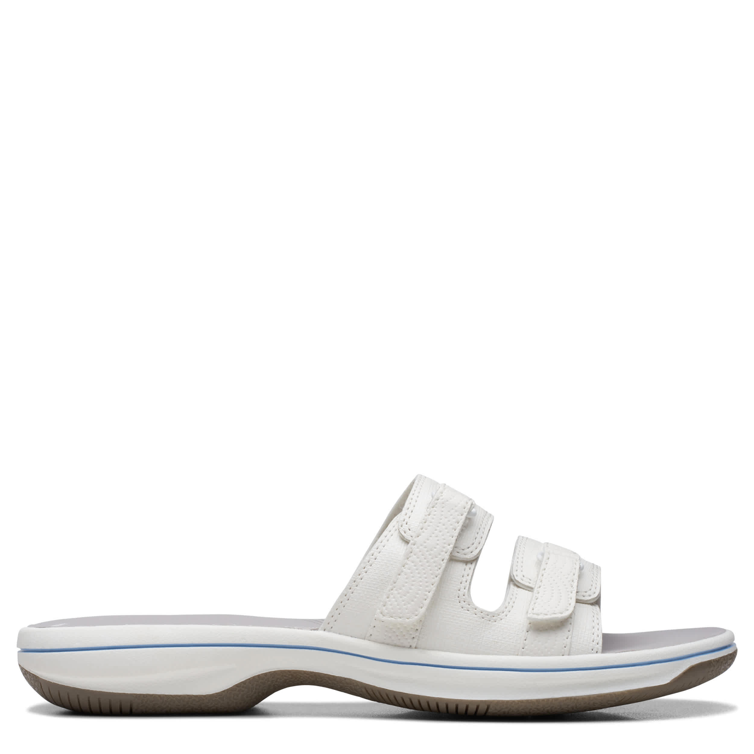 Chill by the shore or go into town with the Breeze Piper women's sandal from Clarks. Featuring a faux leather upper with dual adjustable closures for a custom fit, this slide is part of Clarks's comfy Cloudsteppers Collection. The Cushion Softâ„¢ footbed ensures comfort while the lightweight sole stays flexible.