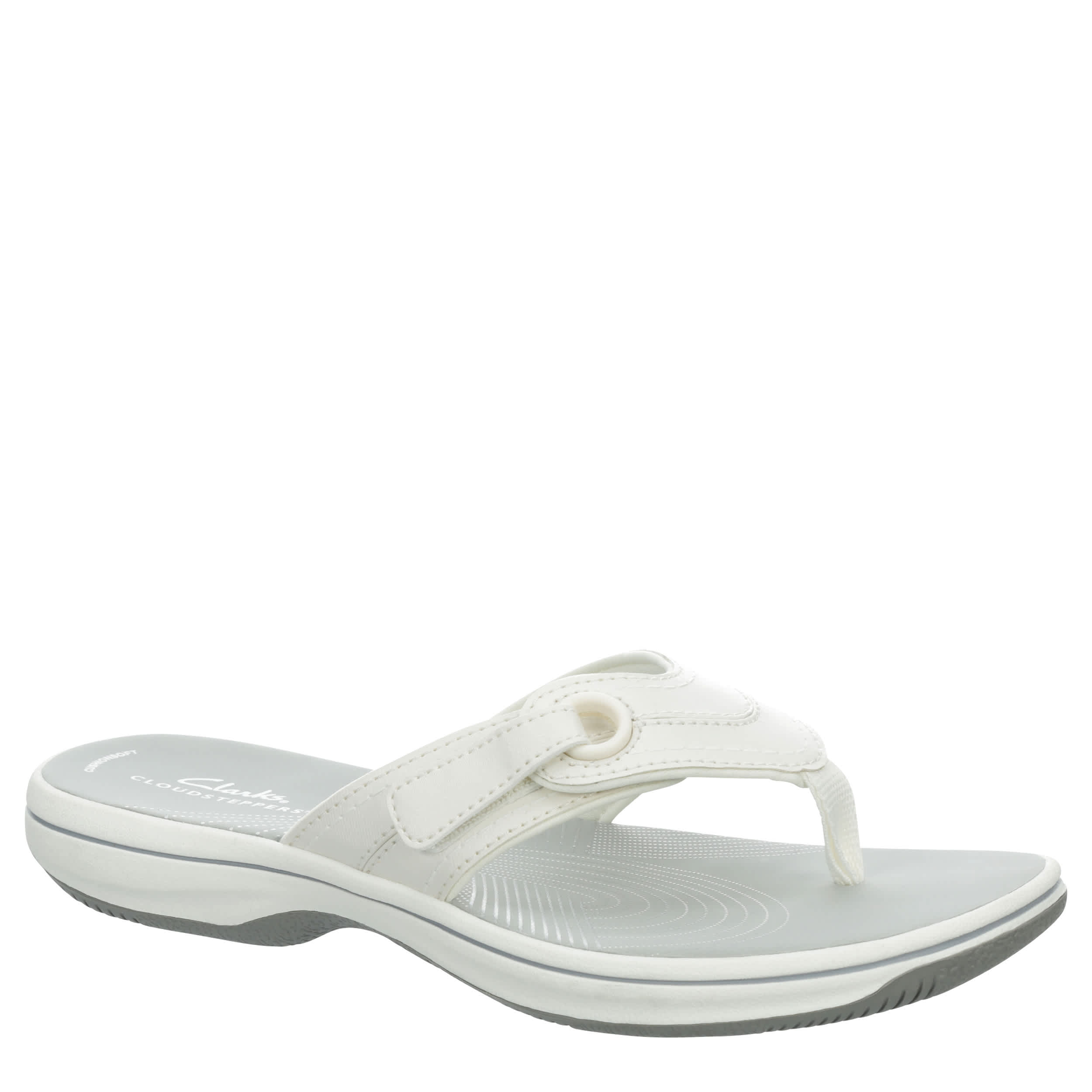You'll flip over the comfort in the Breeze Reyna flip flop sandal. With each step, you'll feel the support of Clarks' Cloudsteppersâ„¢ collection featuring Cushion Softâ„¢ foam and an impact-absorbing footbed. Laze through summer in these and know that vacations can be just as easy-breezy.