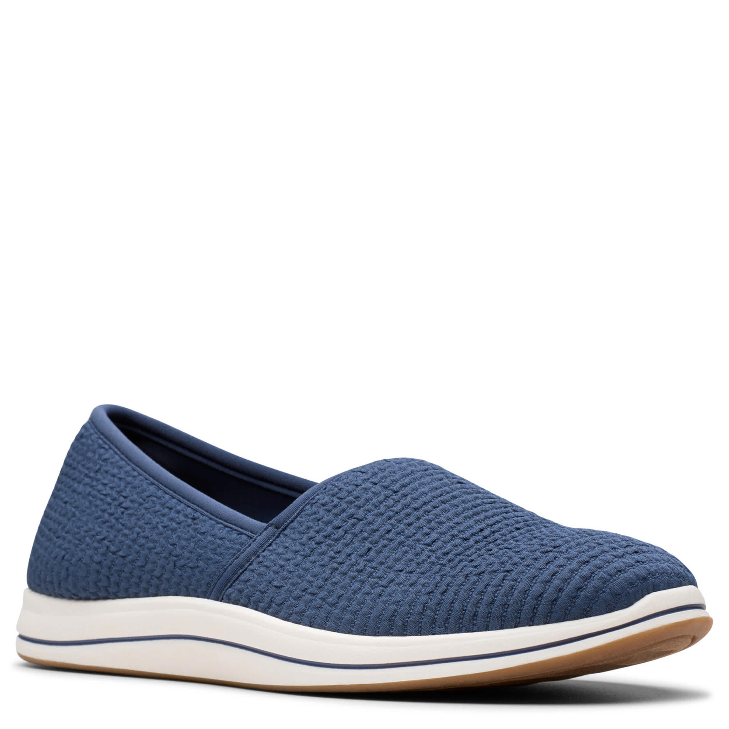 Feel empowered everyday with the Clarks Breeze Stretch slip-on sneaker. Stylish and comfy, this slip-on has a stretchy textile upper with a soft jersey lining. The Cushion Softâ„¢ footbed offers exceptional cushioning, while the flexible outsole supports your natural walking motion.
