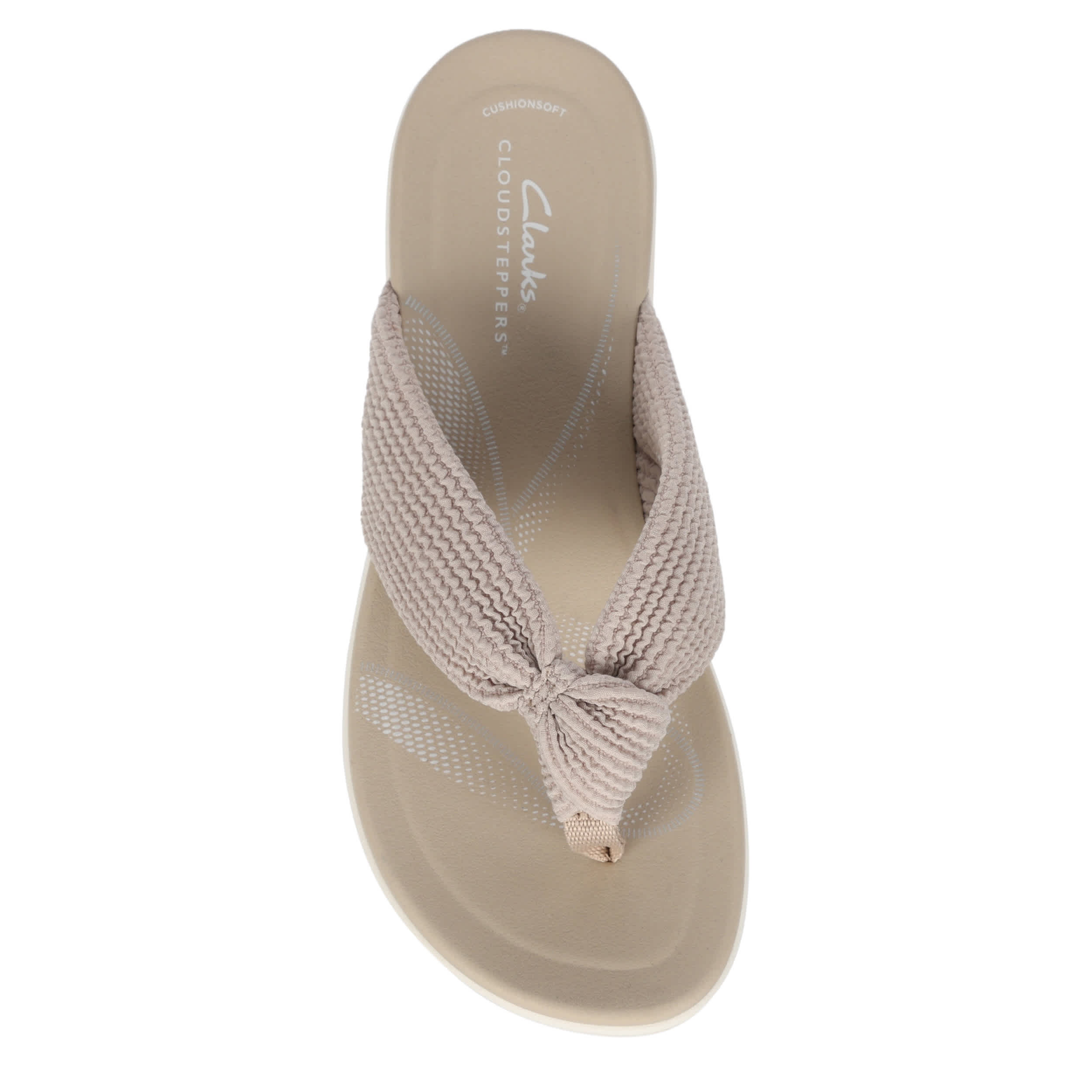 Just add color with the BreezeRae Erin flip flop sandal from Clarks. Featuring a lightweight upper with the signature Breeze stripe along the side for extra appeal, this riptape strap sandal is secure and fun. The curved Cushion Softâ„¢ foam reminds you that this sandal is definitely part of the Cloudsteppersâ„¢ collection, with impact absorption for lasting comfort.
