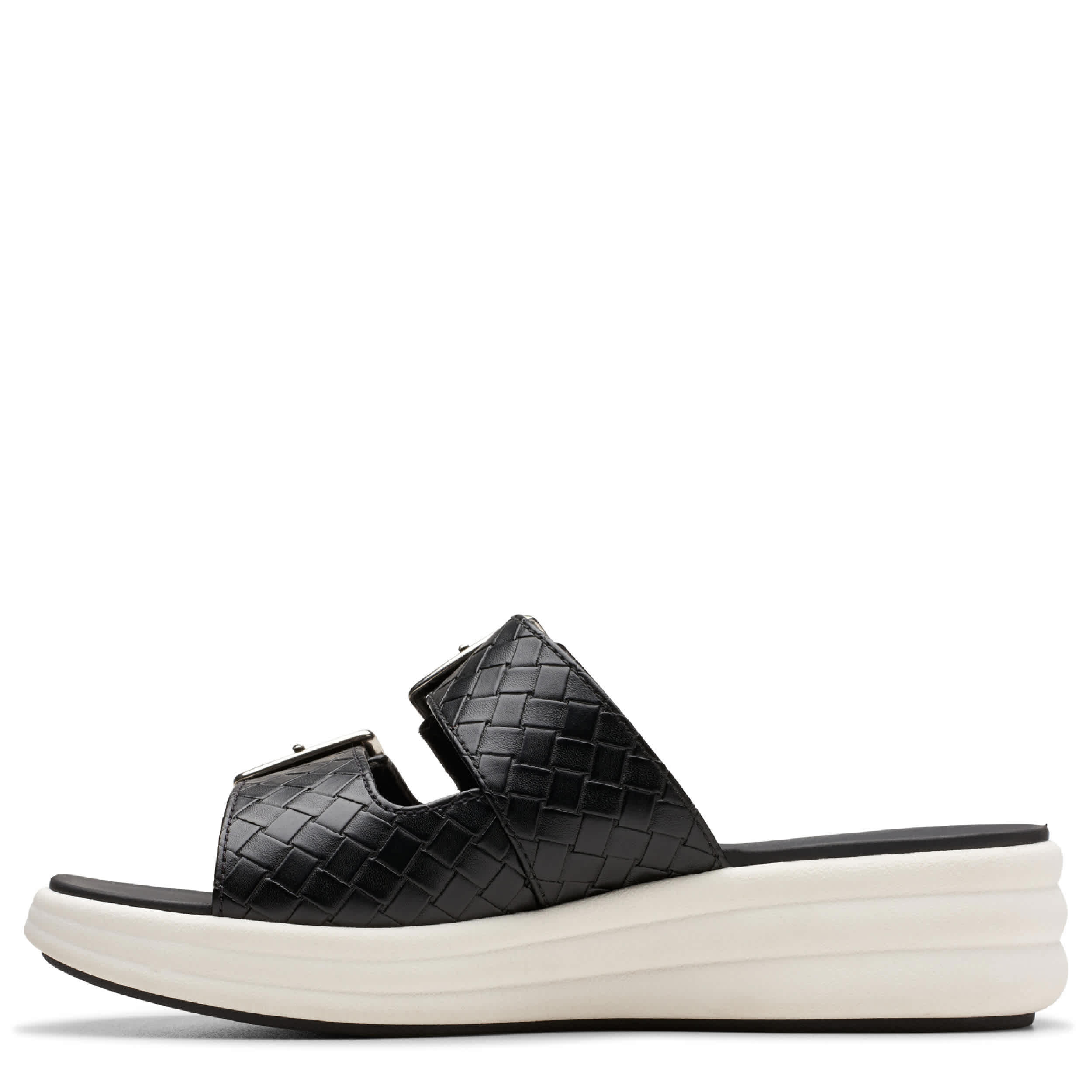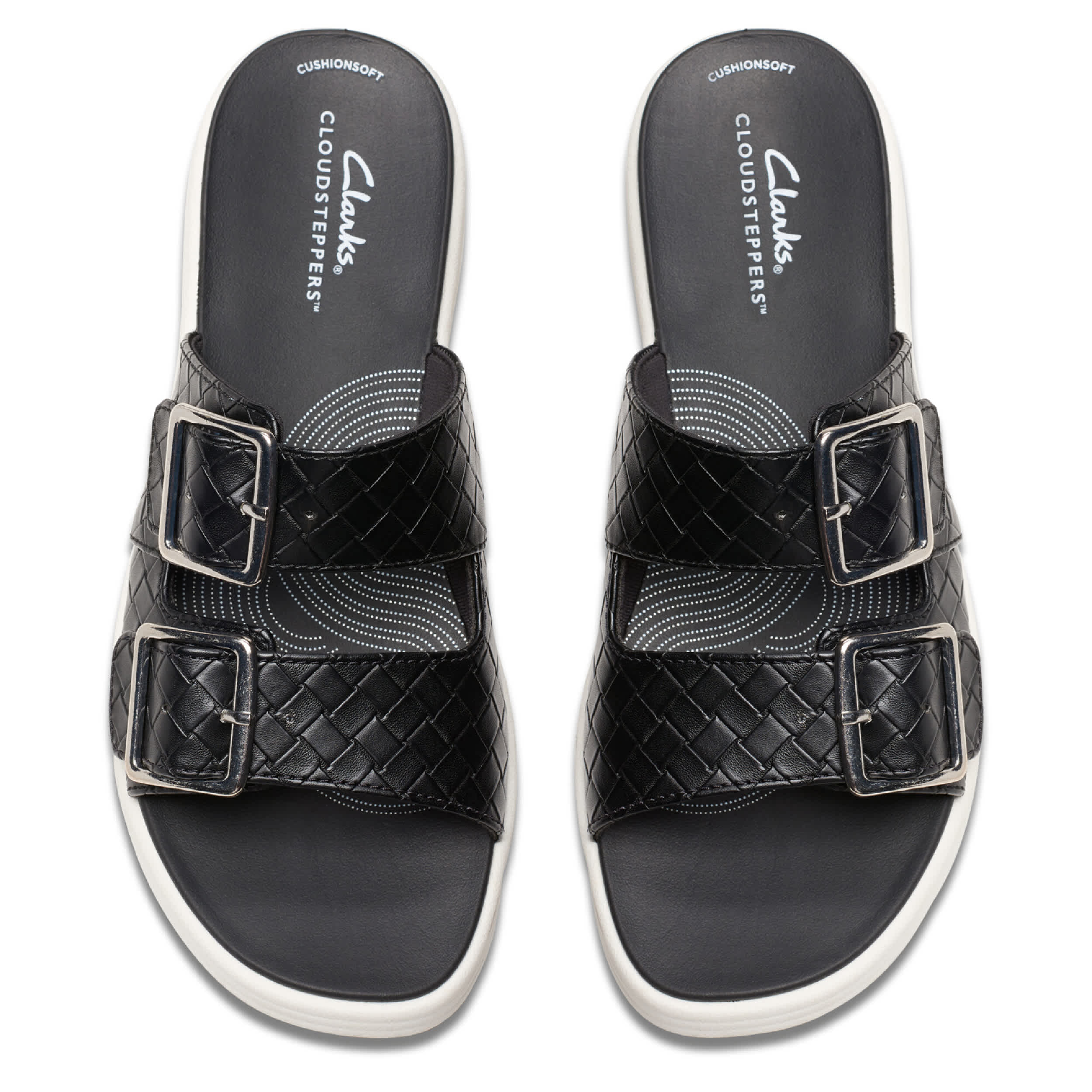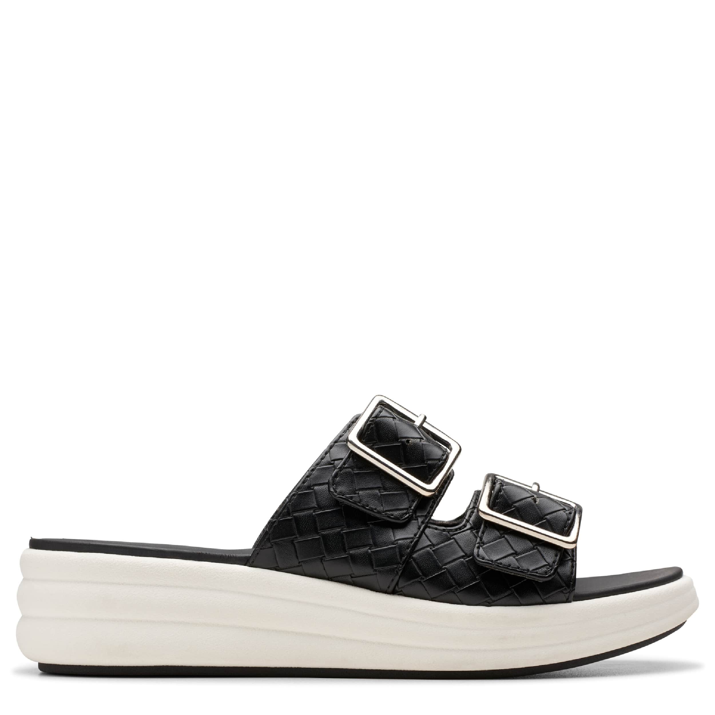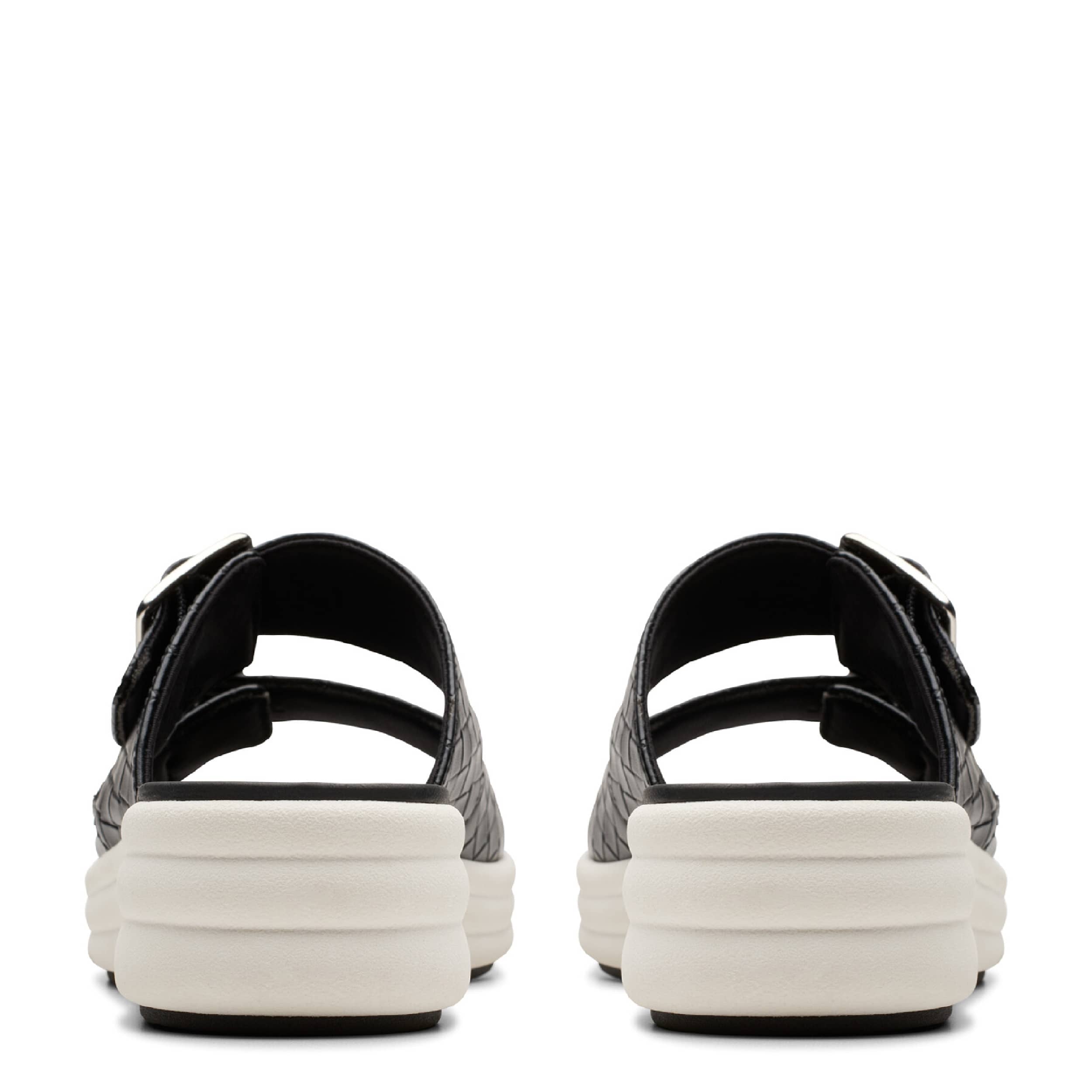 Summer style stays cool in the Clarks Drift Buckle sandal. Featuring a faux leather upper with adjustable buckle straps, this chic wedge also has a temperature-regulating lining. The foam footbed and EVA sole offer cushioned, light steps as part of the Cloudsteppersâ„¢ line.