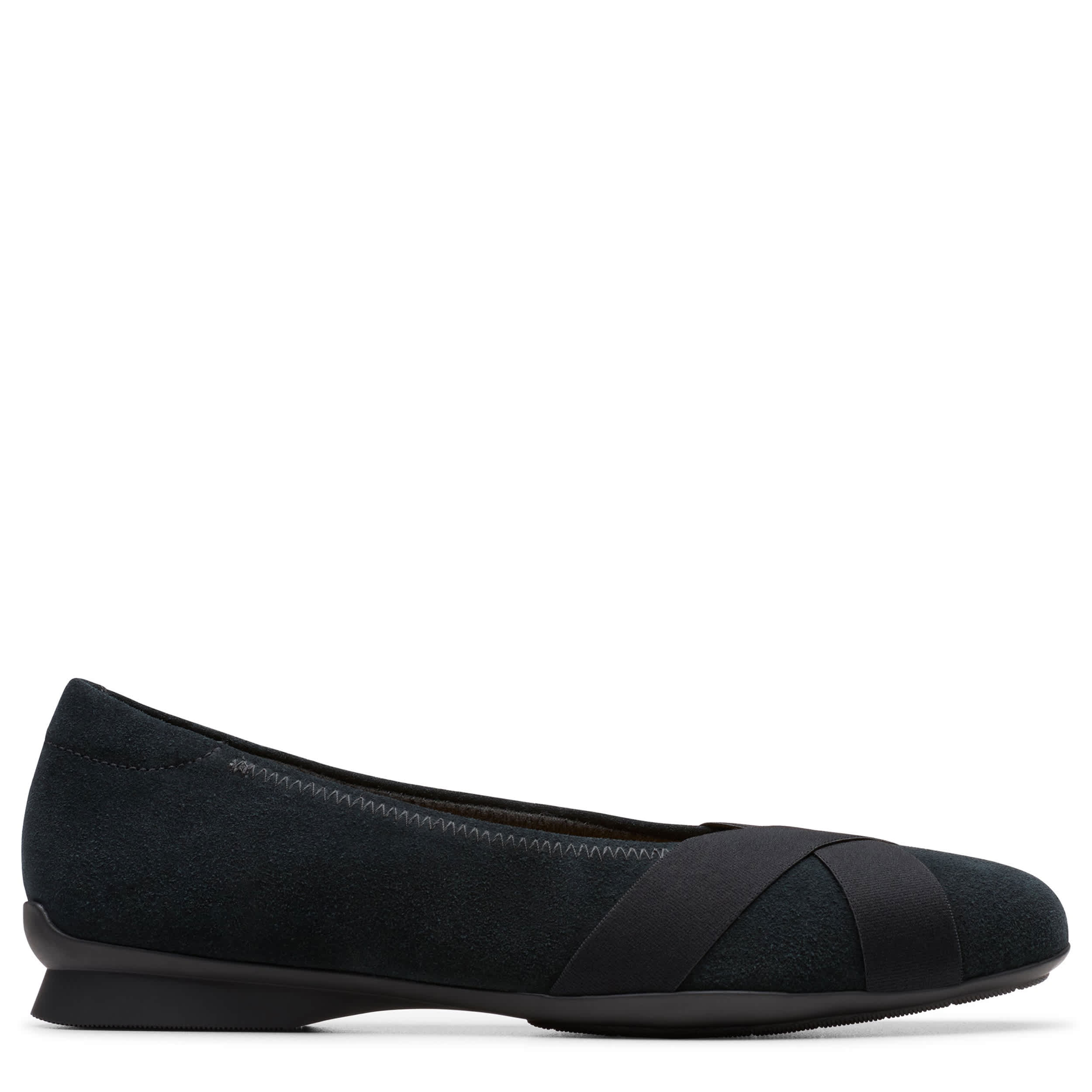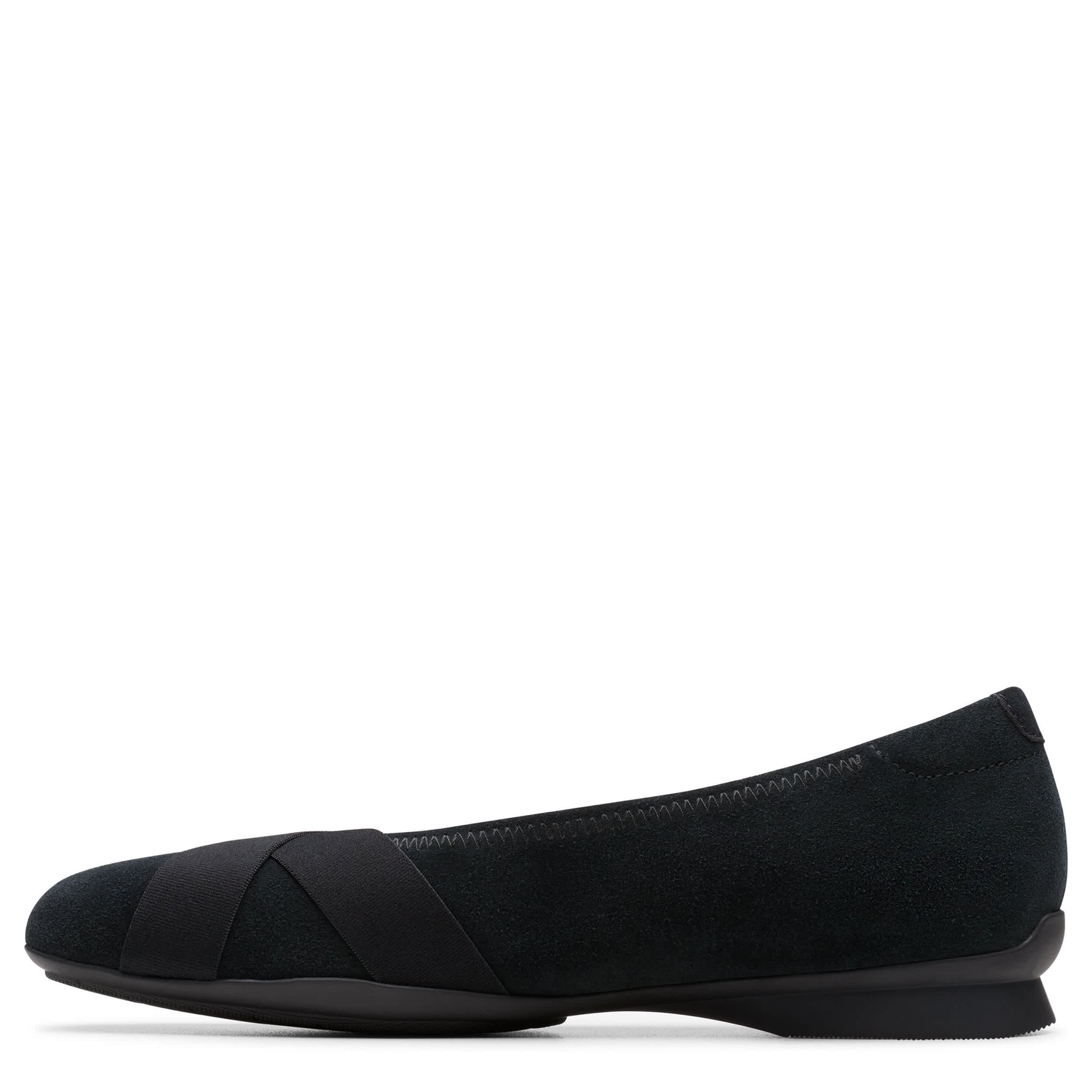Ballerina-inspired, the Jazmynn Gem loafer from Clarks is designed for all-day wear. Featuring a soft suede upper with a synthetic trim and a breathable footbed lining, this slip-on is a modern classic. The Ultimate Comfort footbed offers signature underfoot cushioning while the grippy sole is flexible.