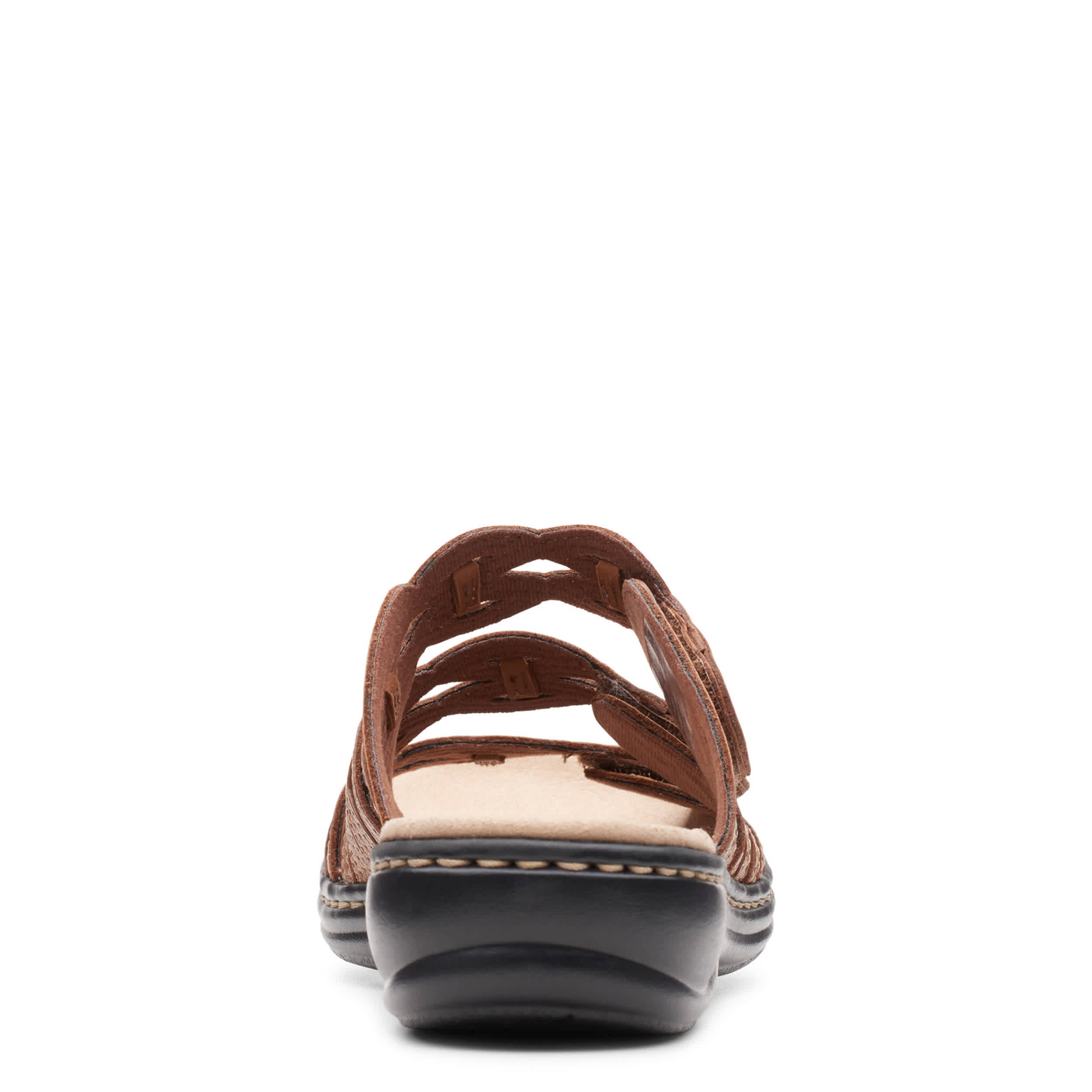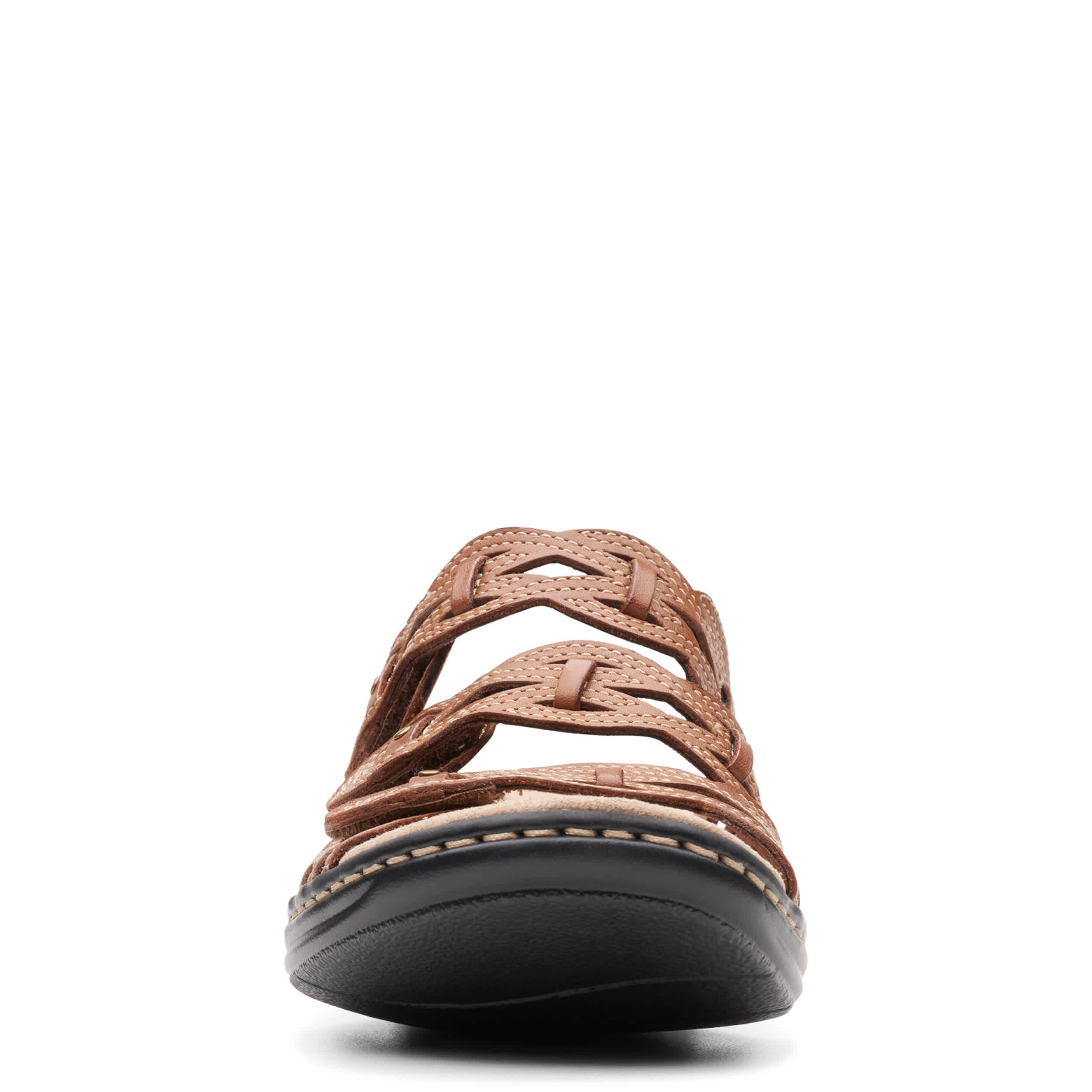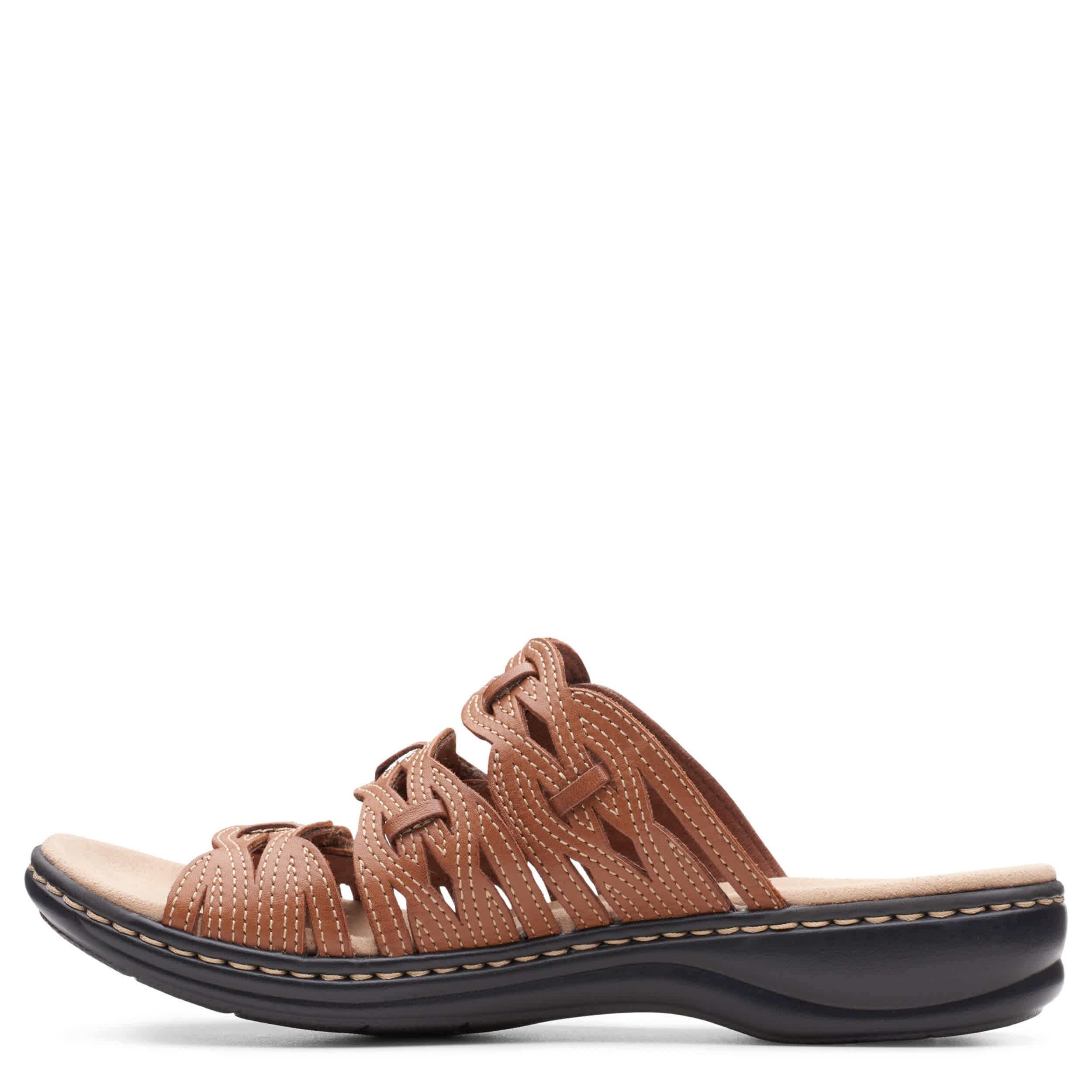 This Clarks Leisa Faye women's slide sandal is a fresh take on a summer style. The leather upper has intricate curvy accents to give this slide a modern style. The cushioned, contoured footbed will support your foot while you enjoy the sunshine in style.