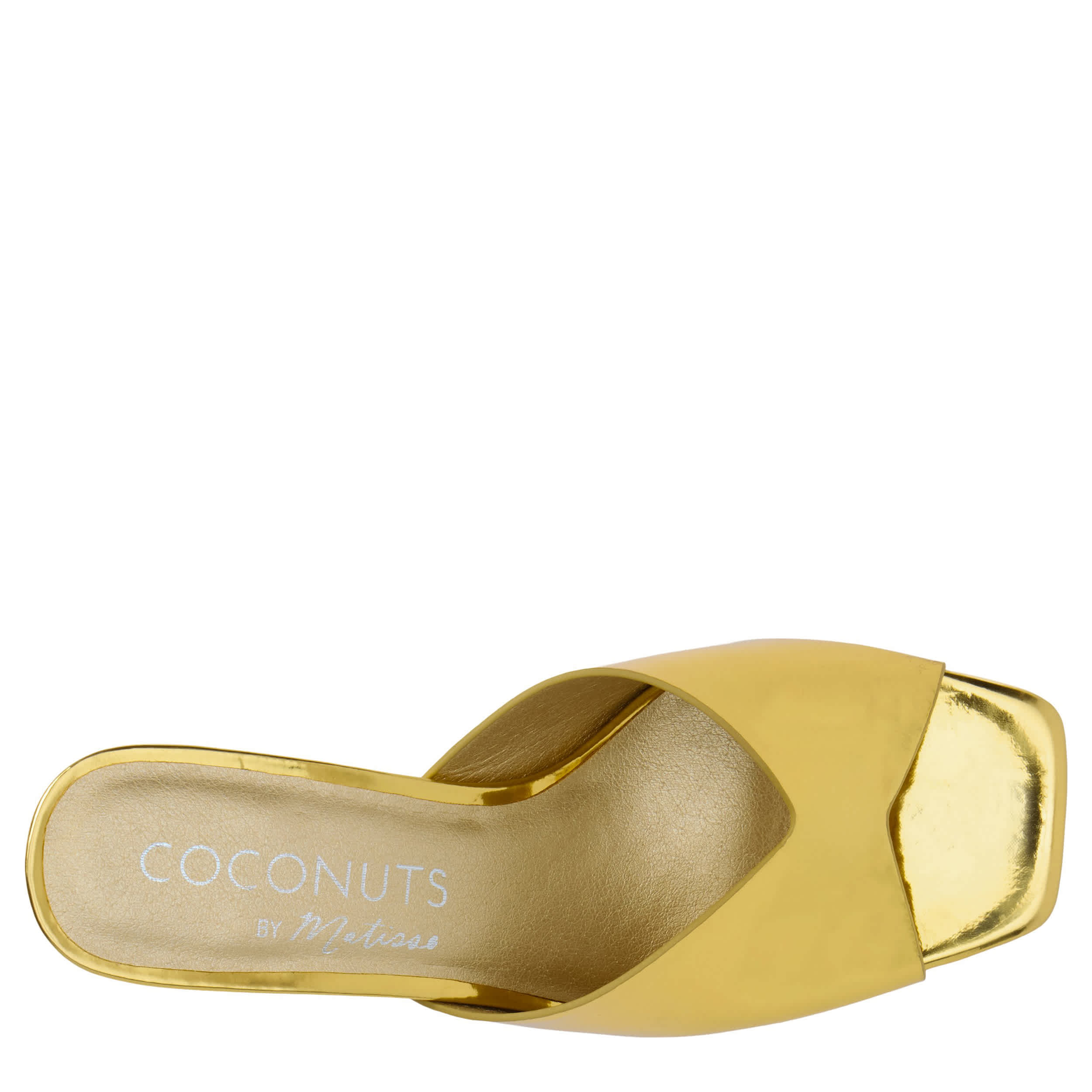 Fun is by design in the Soiree women's sandal from Coconuts by Matisse. Featuring a metallic faux leather upper in a striking V-cut style, this sandal is made to highlight your event. The footbed cushions every step while the sturdy heel adds nice lift.