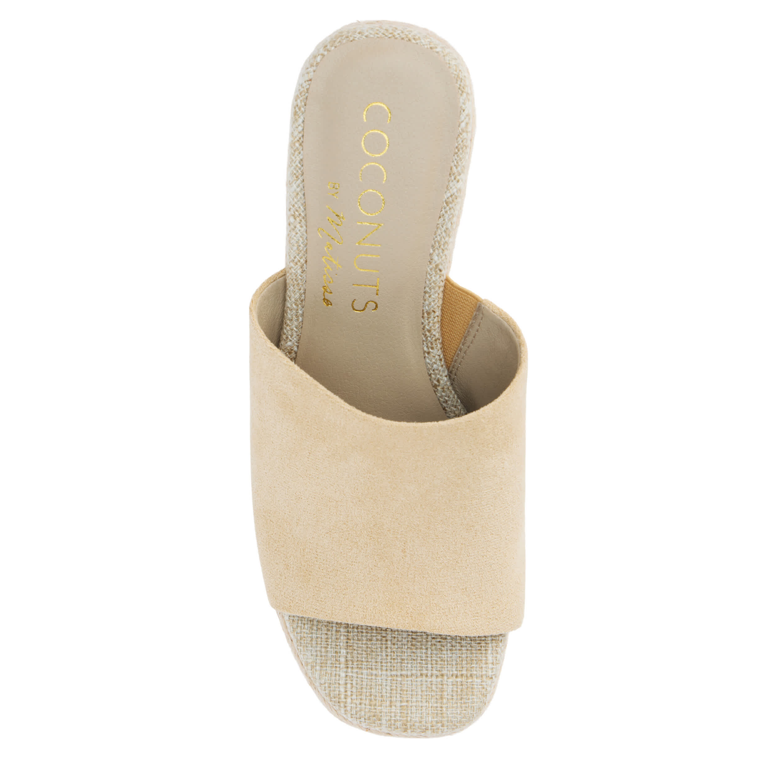 Elevate your summer look with the Sorrento wedge sandal from Coconuts by Matisse. With a faux suede upper in a single band design, this slip-on shoe is perfect for pairing with your dressy or casual outfits. The padded insole and synthetic outsole ensure supported steps, while the platform design and heel offer a substantial lift.