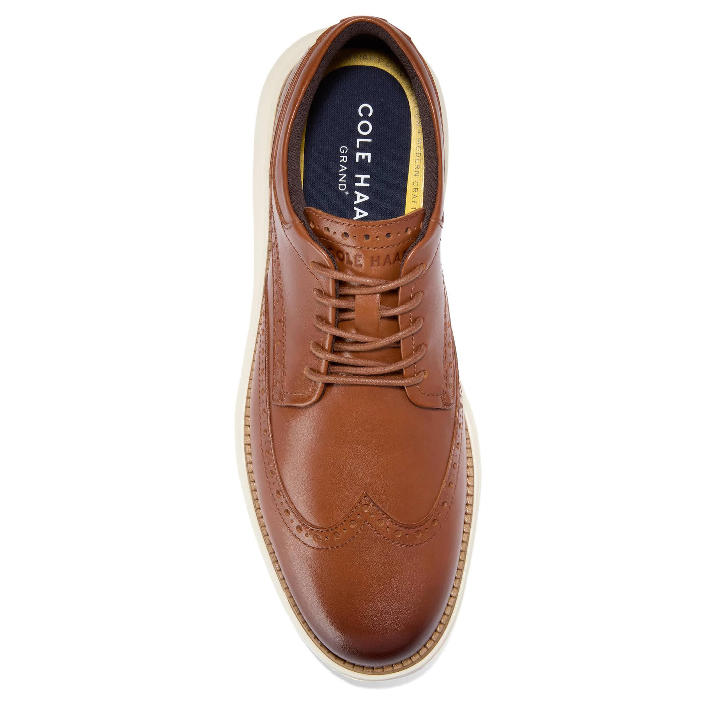Dapper as can be, the Grand+ Ultra Wingtip oxford from Cole Haan always looks amazing. Featuring a leather upper with a comfy puffed collar and wingtip broguing, this shoe is practical, but kinda dressy. The dual-density footbed cushions every move, while the EVA midsole & outsole offer shock absorption and flexibility.