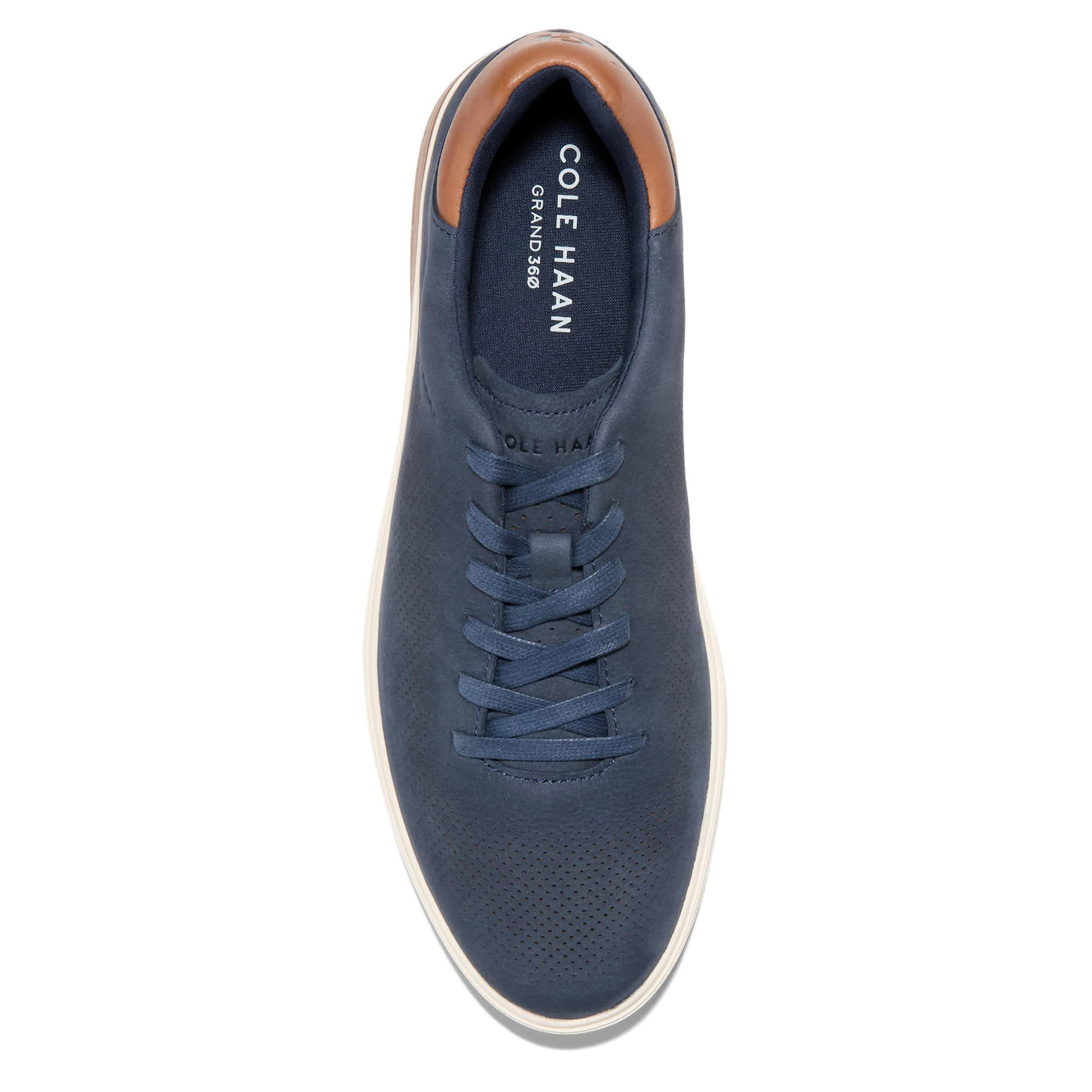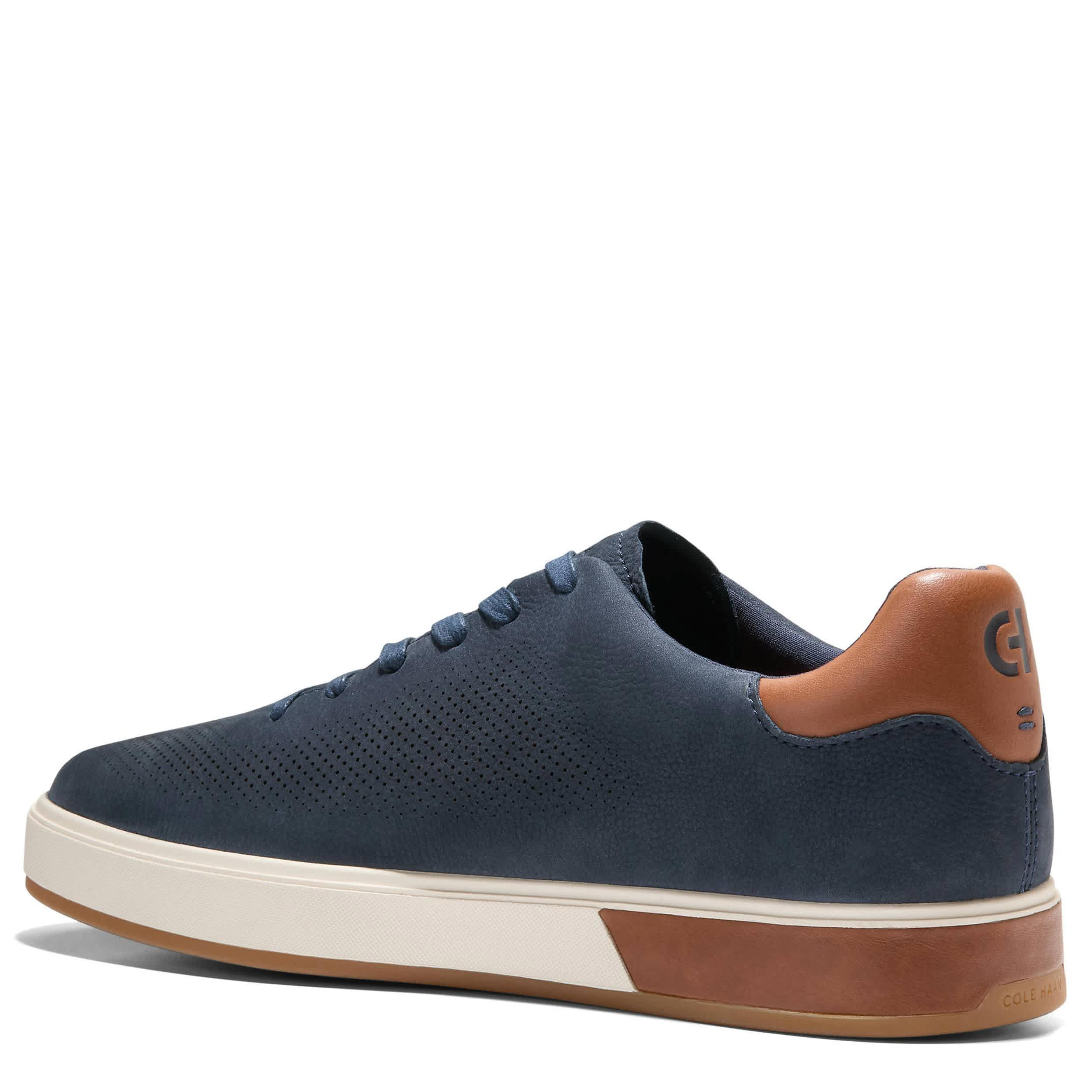Best foot and all that in the GrandPro Angeleace men's sneaker from Cole Haan. Featuring a premium nubuck upper with perforated detailing for breathability, this dress casual shoe has a contrasting heel with the brand logo. The Grand 360 comfort technology cushions every step, while the outsole adds spring to smooth out the road ahead.