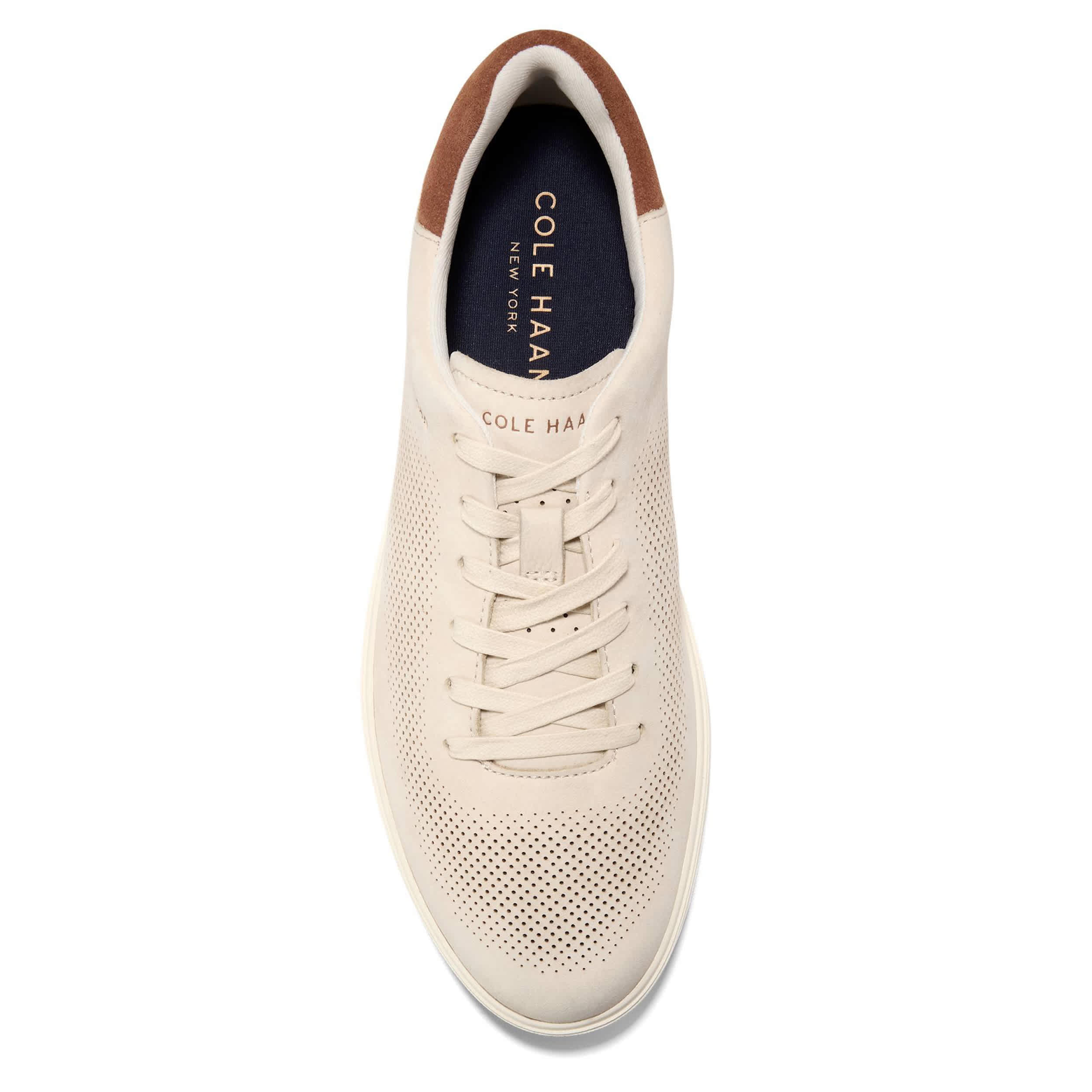 Best foot and all that in the GrandPro Angeleace men's sneaker from Cole Haan. Featuring a premium nubuck upper with perforated detailing for breathability, this dress casual shoe has a contrasting heel with the brand logo. The Grand 360 comfort technology cushions every step, while the outsole adds spring to smooth out the road ahead.
