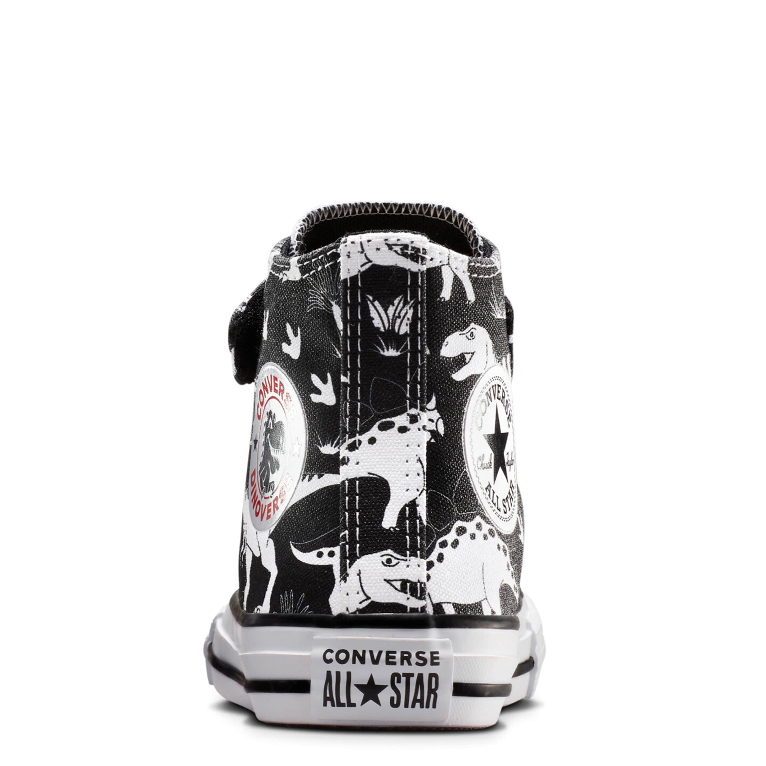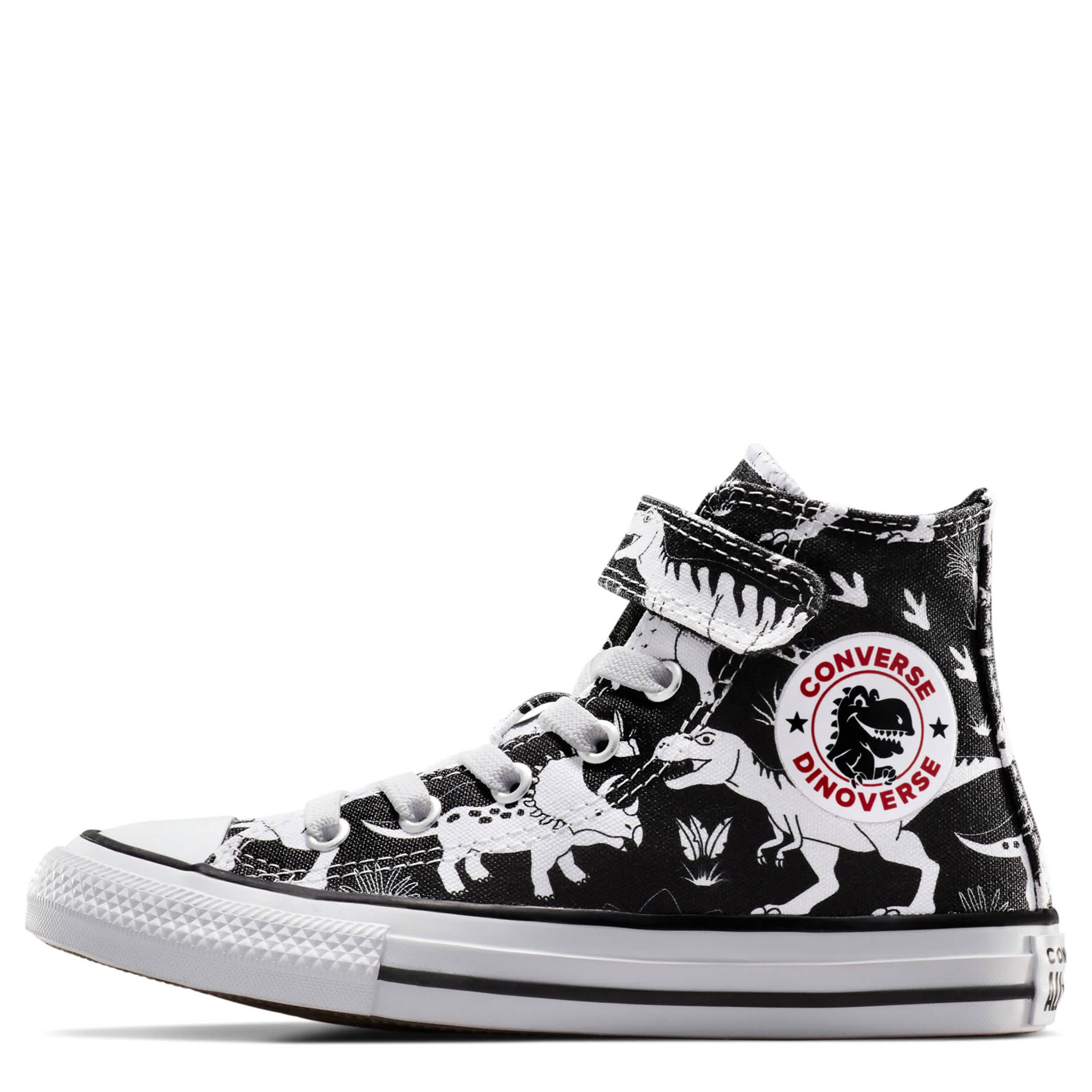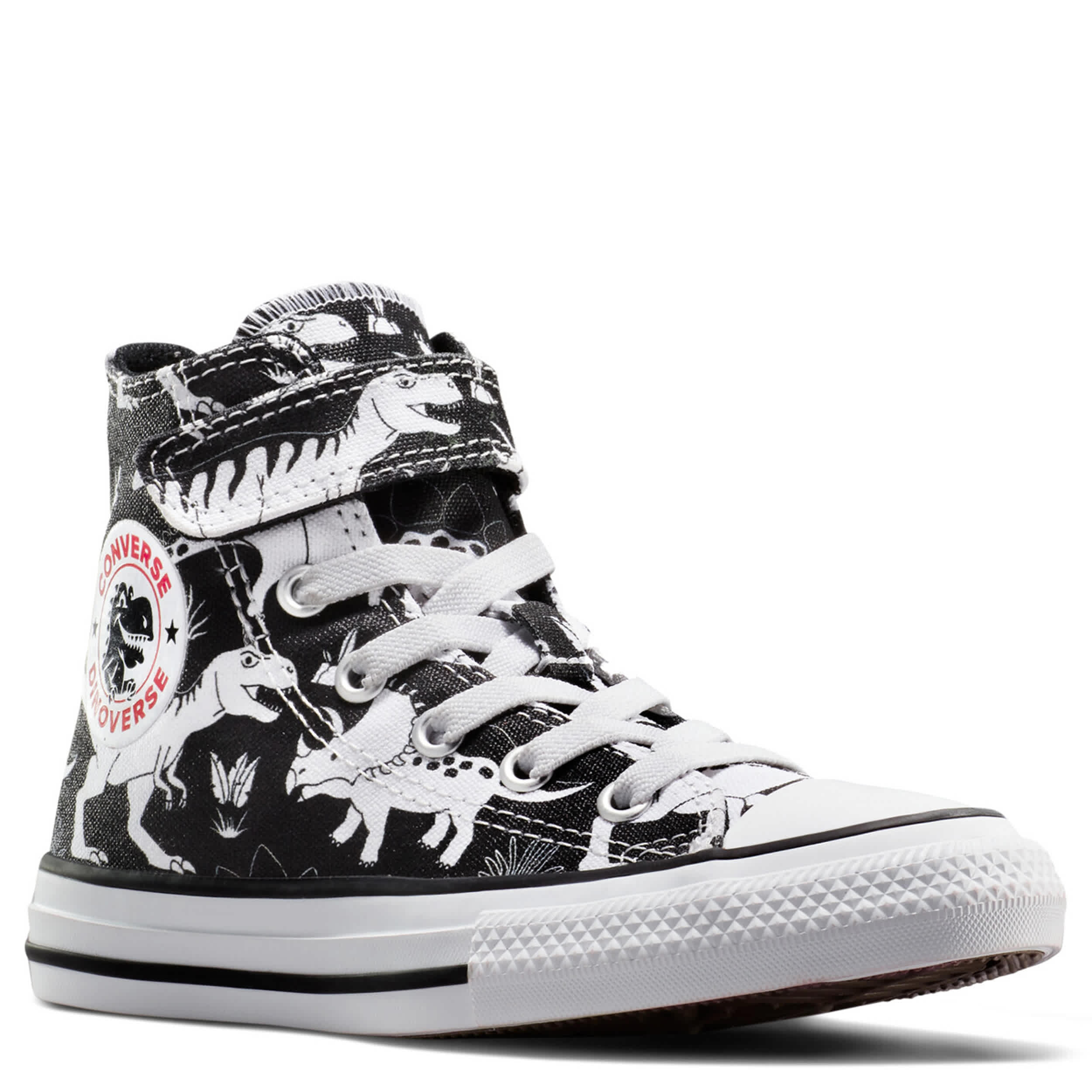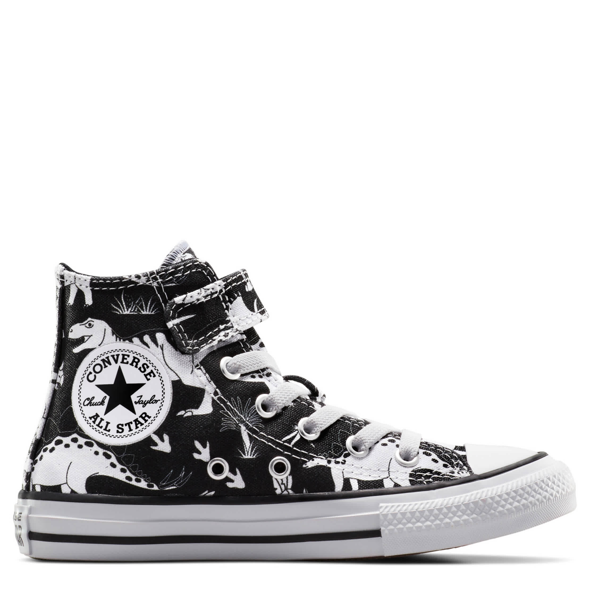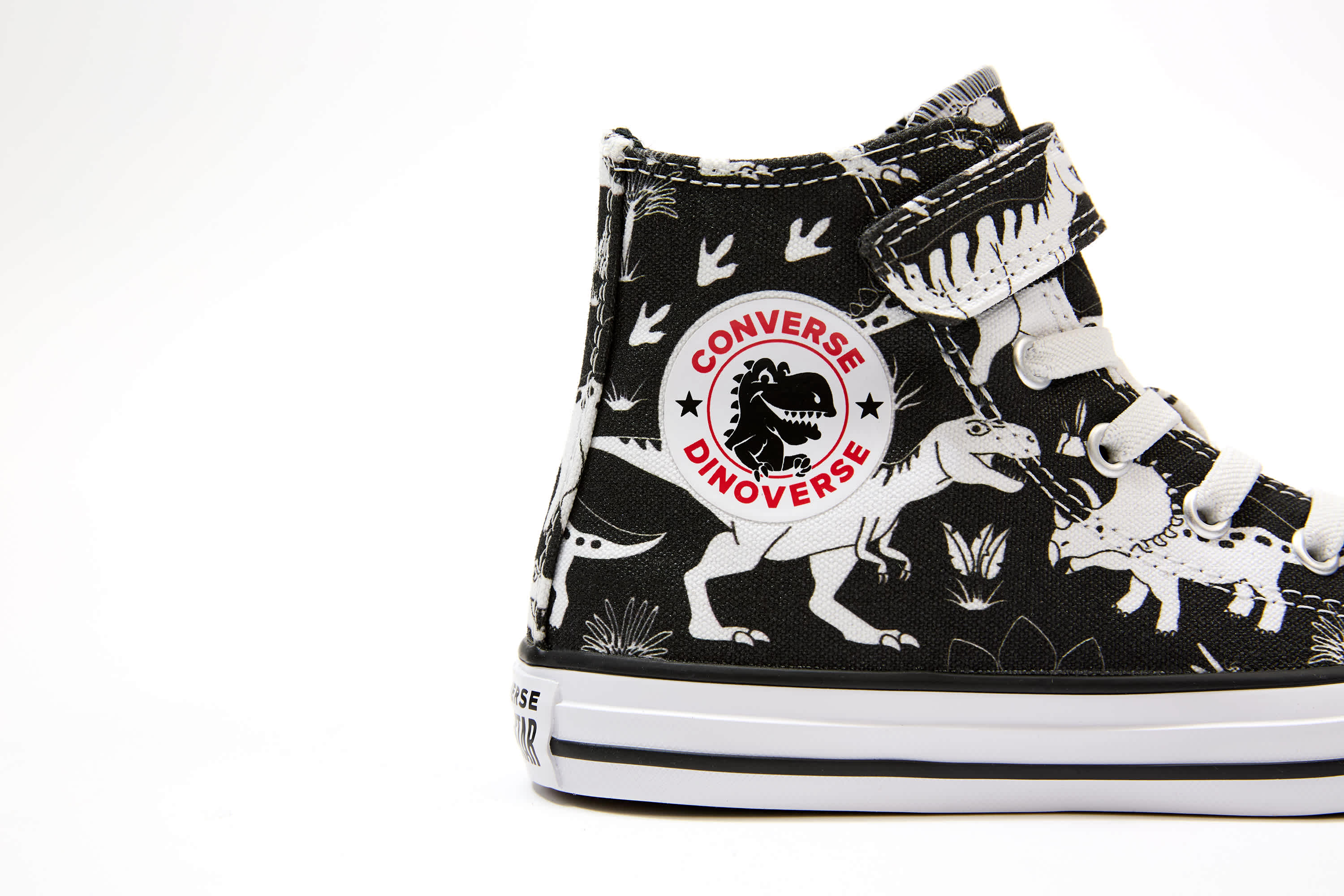 Dino Chucks in the house with the Chuck Taylor All Star Dino Party Easy On boys' sneaker from Converse. Featuring a canvas upper with an adjustable ankle strap for security, this elastic laced shoe also has a vintage-inspired dinosaur print. The foam cushioning comforts every step while the signature outsole offers traction.