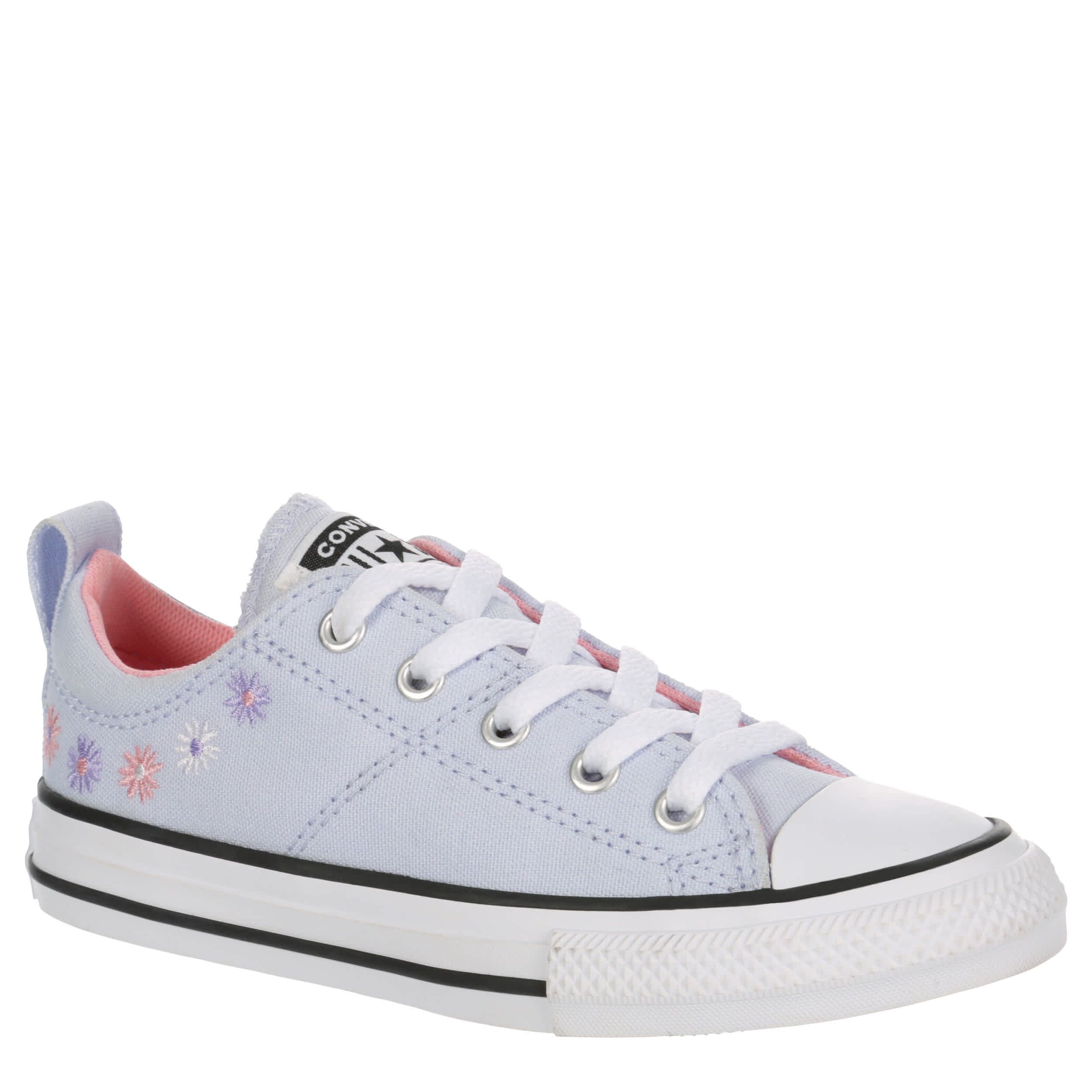 Spring lands with flowers on the Chuck Taylor All-Star Madison Florals Easy-On girls' sneaker. Featuring a canvas upper with embroidered flowers for a delicate touch, this cushy sneaker also has all-day cushioning with soft foam underfoot. Elastic stretch band and a heel loop make them easy to wear.