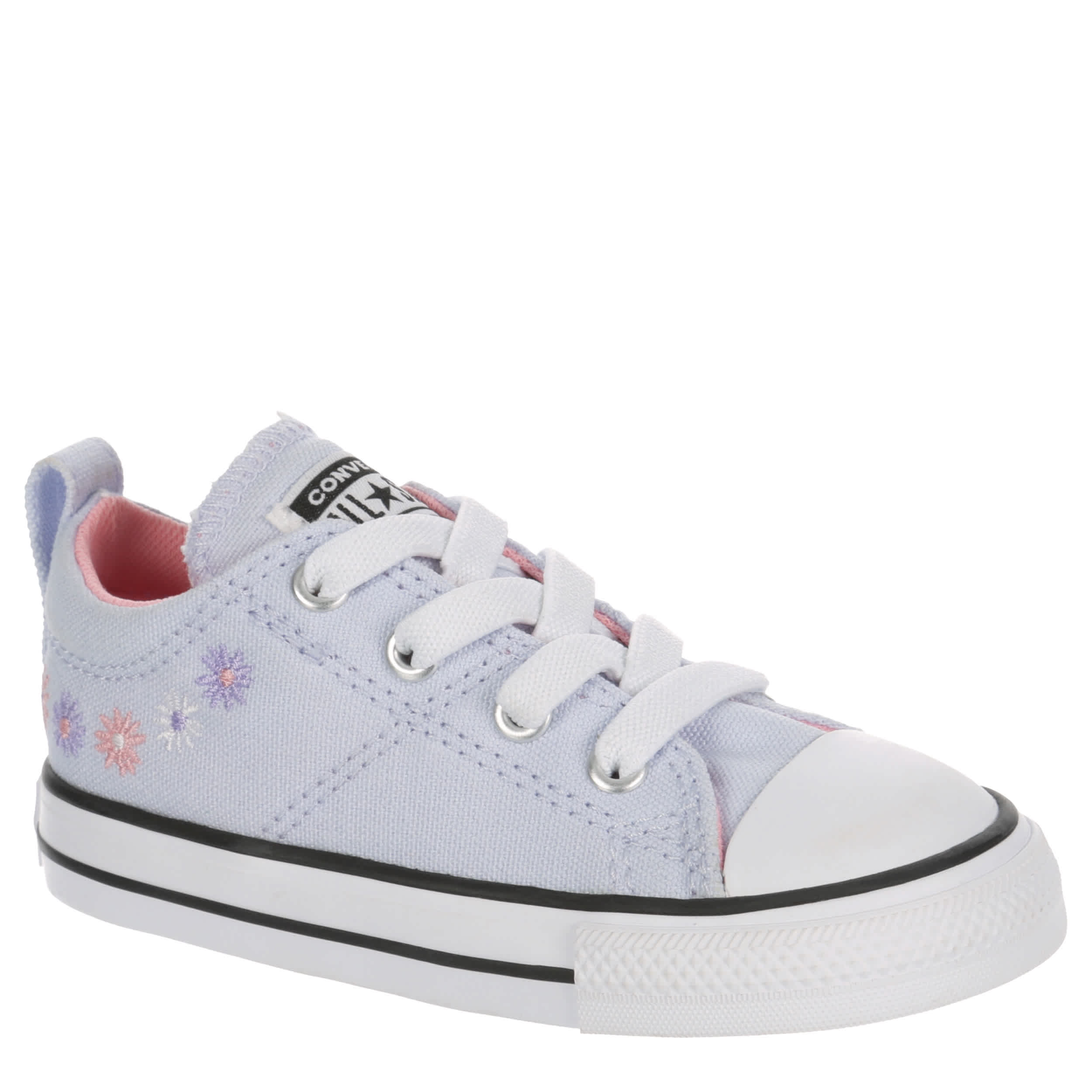 Spring lands with flowers on the Chuck Taylor All-Star Madison Florals Easy-On infant girls' sneaker. Featuring a canvas upper with embroidered flowers for a delicate touch, this cushy sneaker also has all-day cushioning with soft foam underfoot. Elastic laces and a heel loop make them easy to wear.