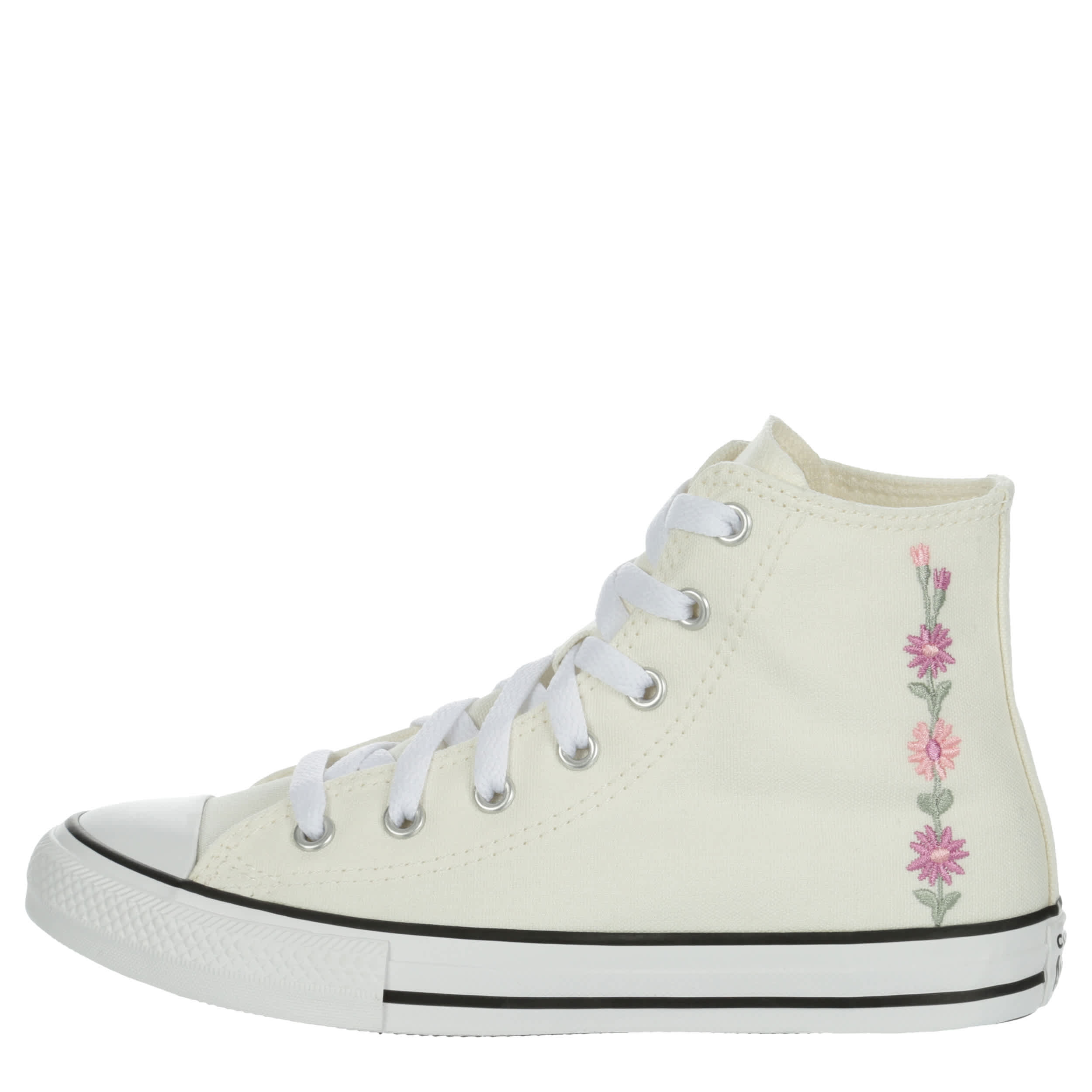 Boost her style in the Chuck Taylor All-Star EVA Lift girls' sneaker from Converse. Featuring a canvas upper with a double-stacked, striped platform midsole, this lace-up also has the iconic Chuck Taylor ankle patch and allover flower accents. The soft foam cushions every step, while that signature Converse tread adds the traction she needs.