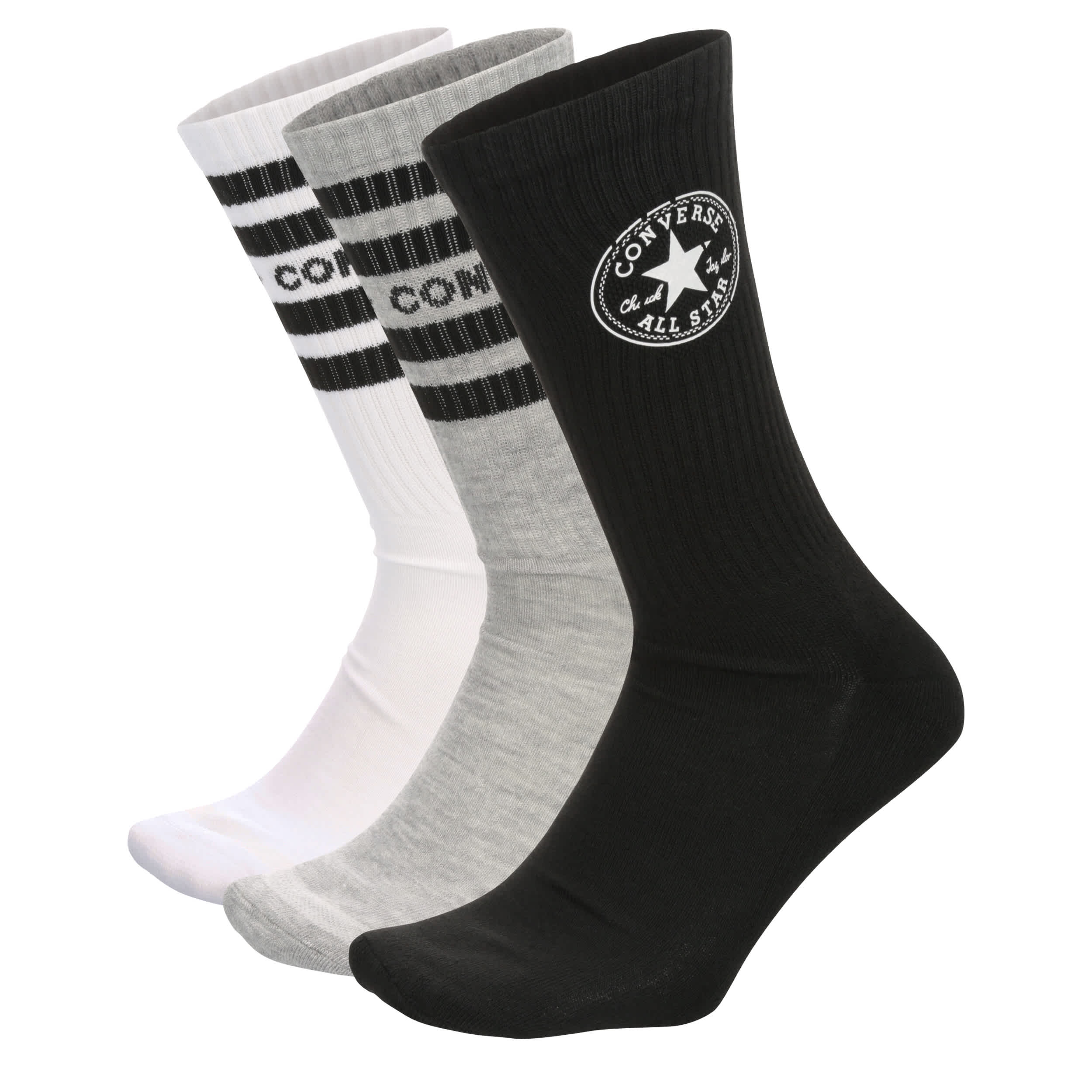 Converse Chuck Patch Men's Crew Socks 3 Pack – Black/Assorted