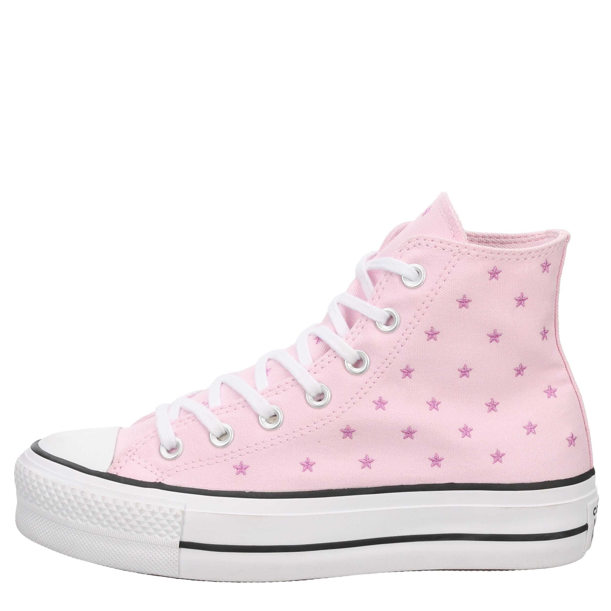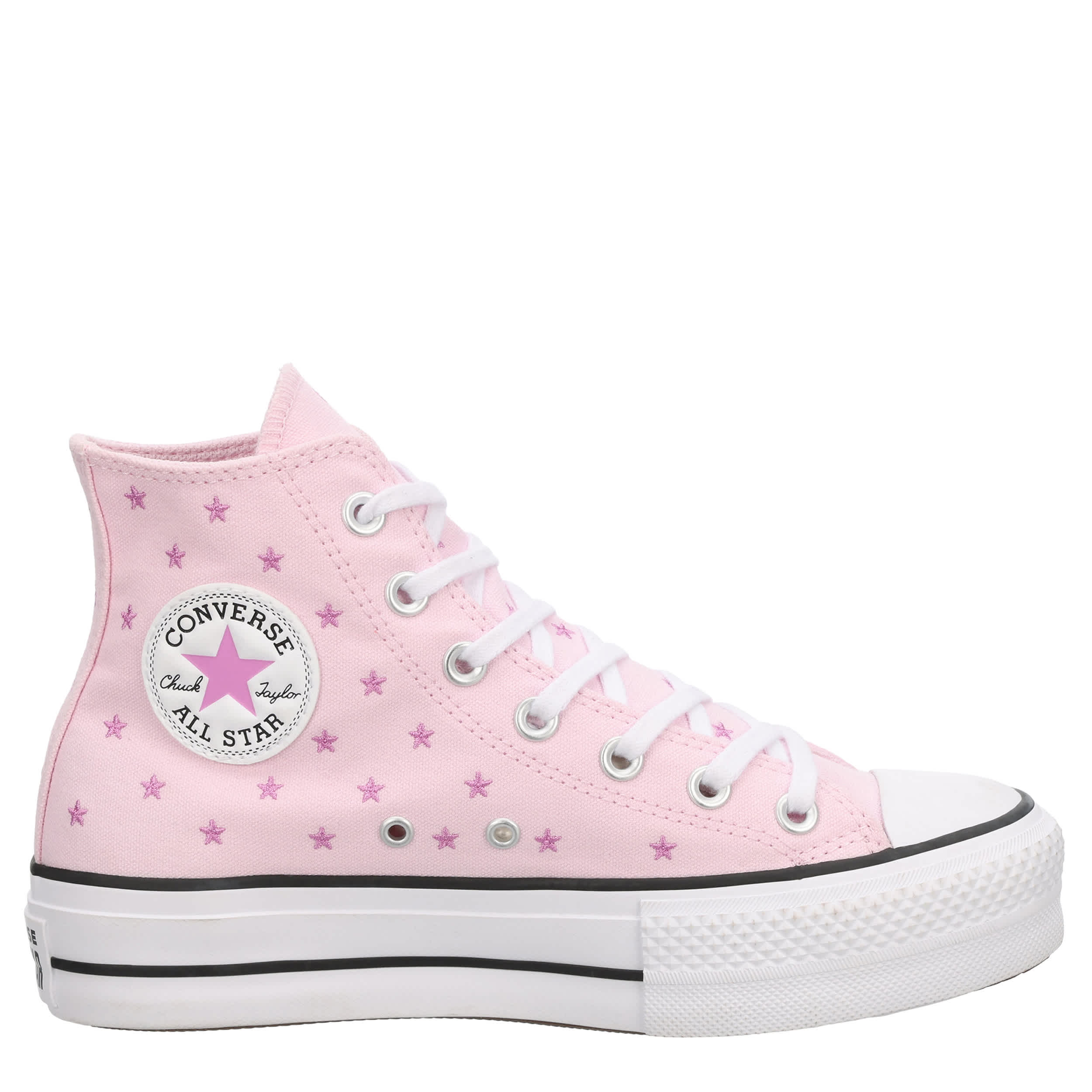 Lift your sneaker game with the classic style of this Chuck Taylor All Star Hi Lift Stars women's platform sneaker from Converse. The chunky rubber outsole adds height to your look while the embroidered accents of the canvas upper gives you a starry finish. This is the perfect sneaker to pair with your favorite jeans or casual look.