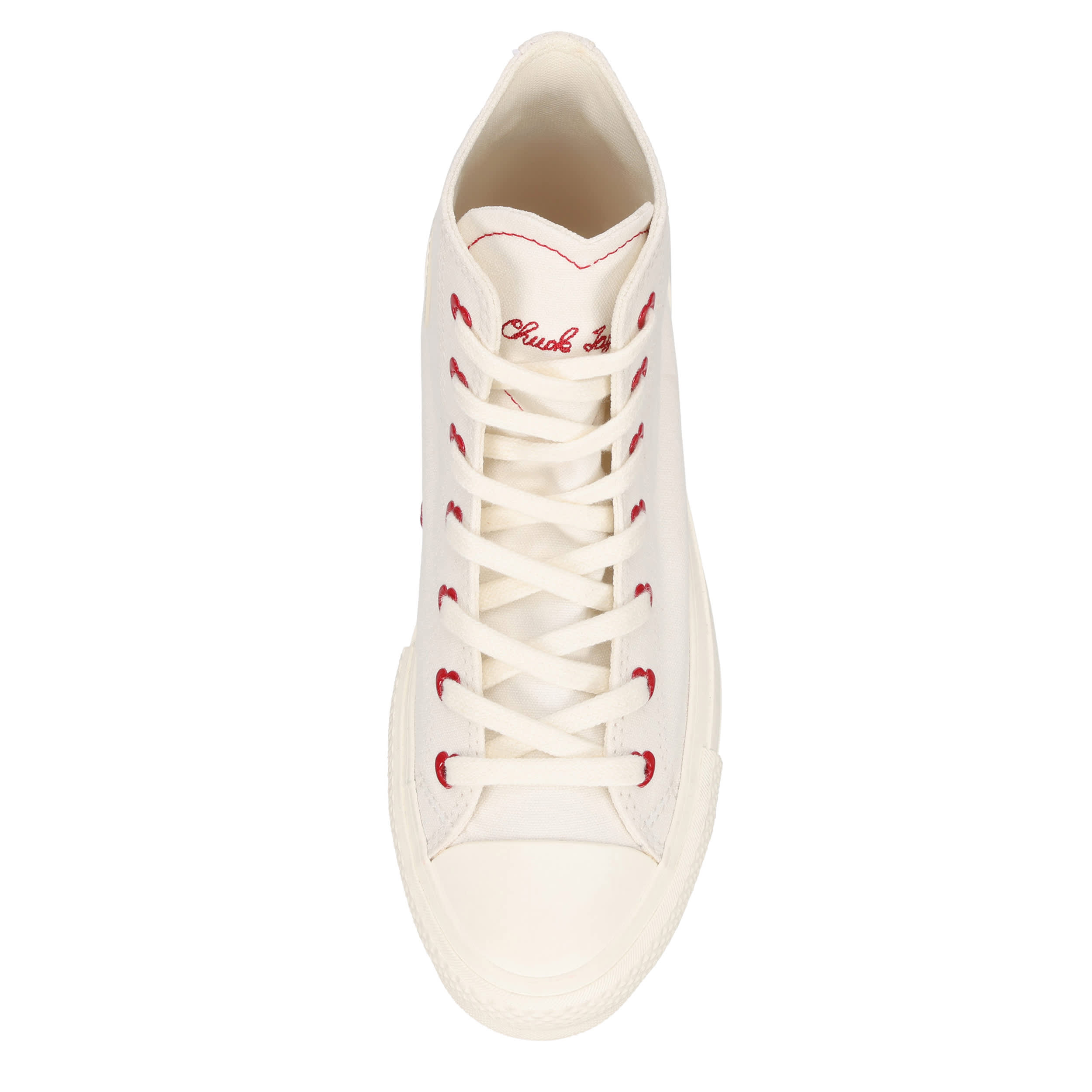 Love your sneaker game with the classic style of this Chuck Taylor All Star Lift Platform Hearts women's platform sneaker from Converse. The chunky rubber outsole adds height to your look while the embroidered text and removable charms give you a Valentine's finish. This is the perfect sneaker to pair with your favorite jeans or casual look.
