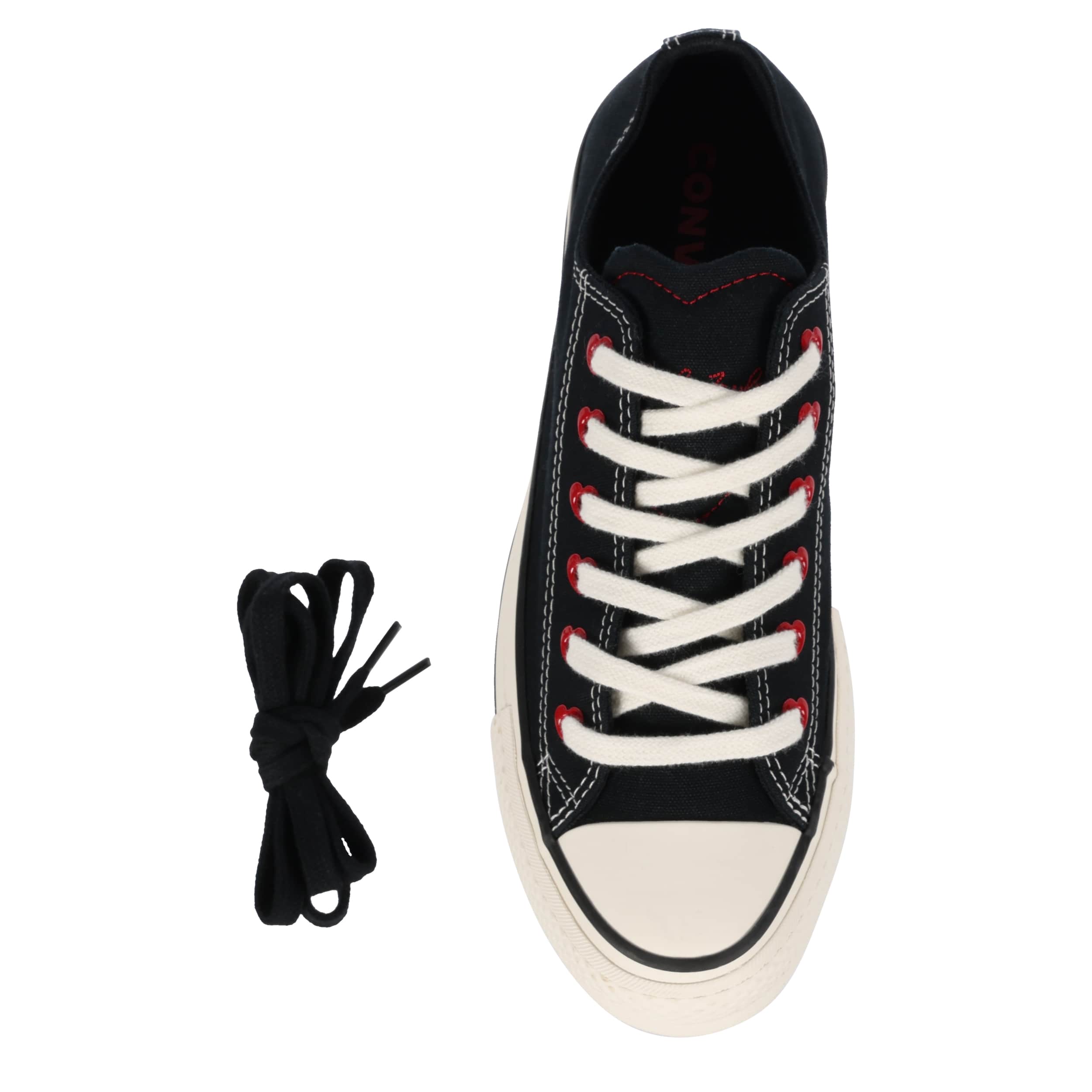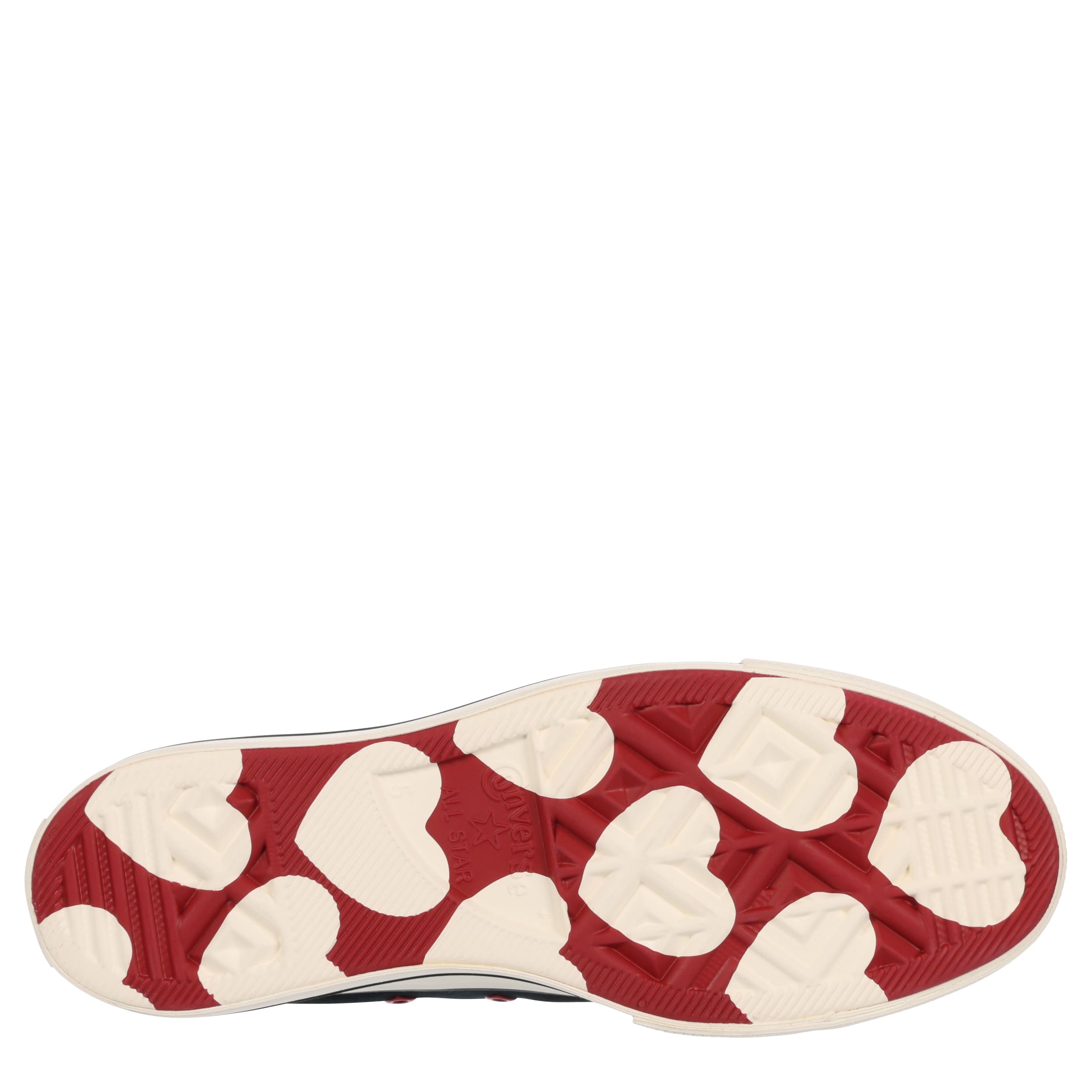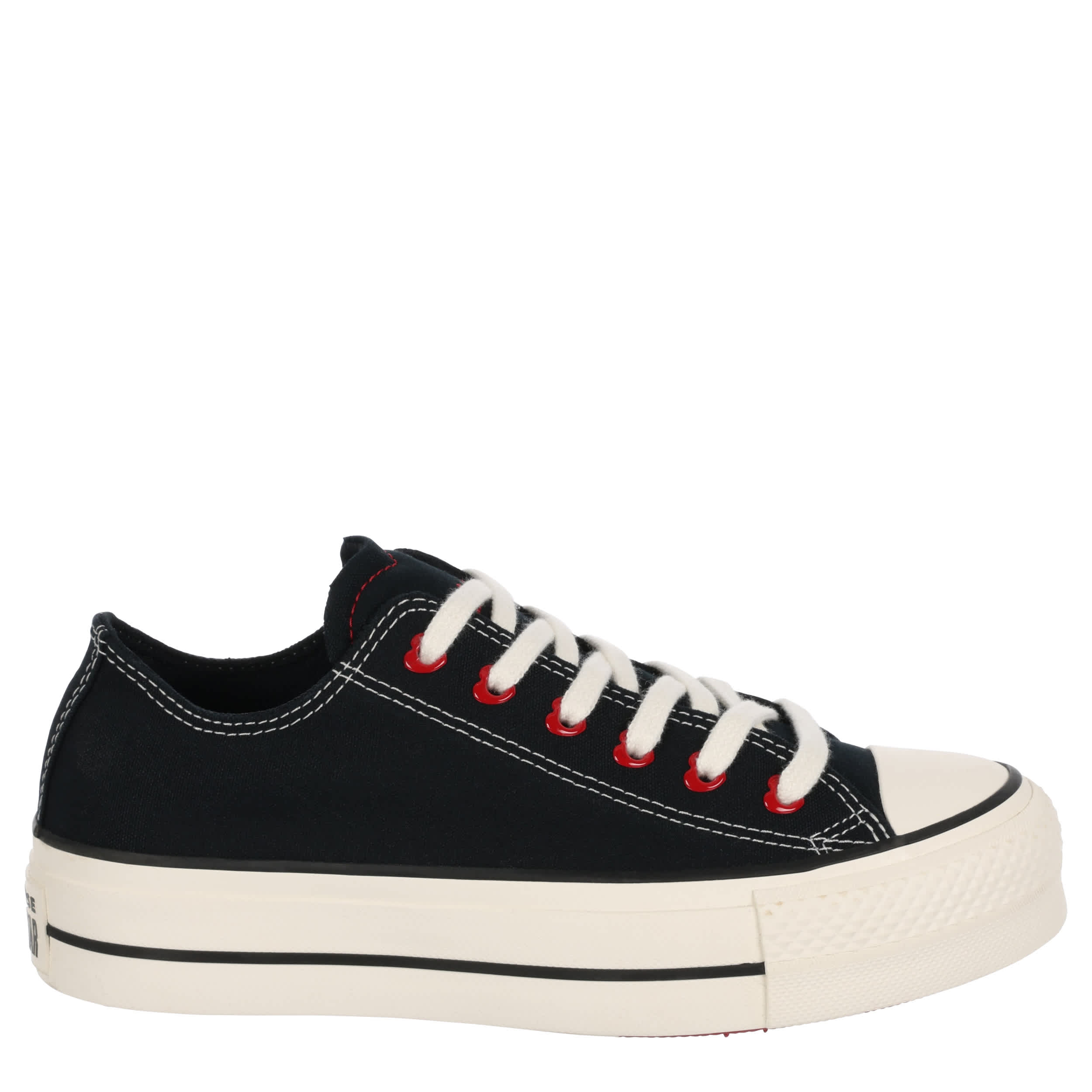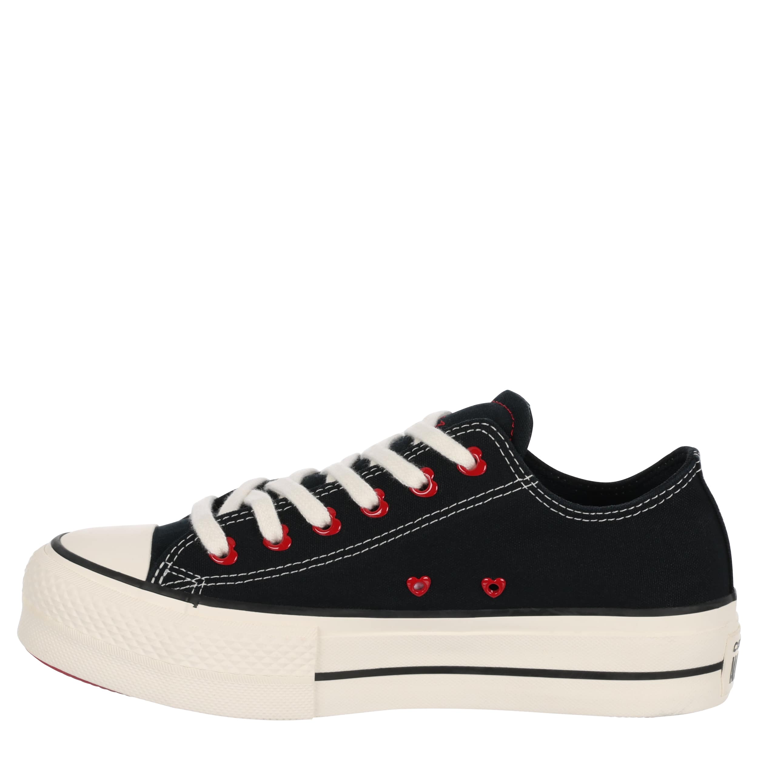 Love your sneaker game with the classic style of this Chuck Taylor All Star Lift Platform Hearts women's platform sneaker from Converse. The chunky rubber outsole adds height to your look while the embroidered text and heart-shaped tongue give you a Valentine's finish. This is the perfect sneaker to pair with your favorite jeans or casual look.