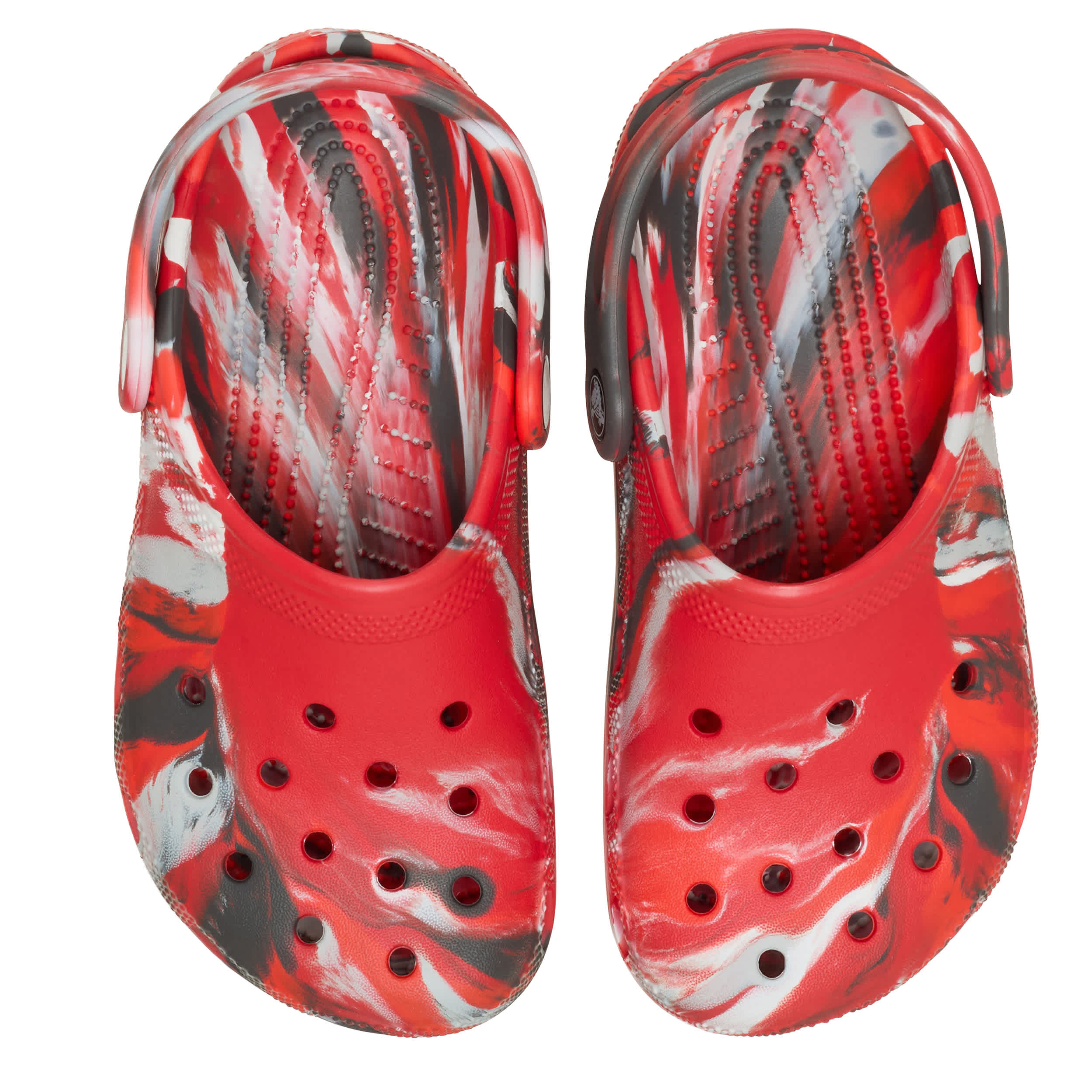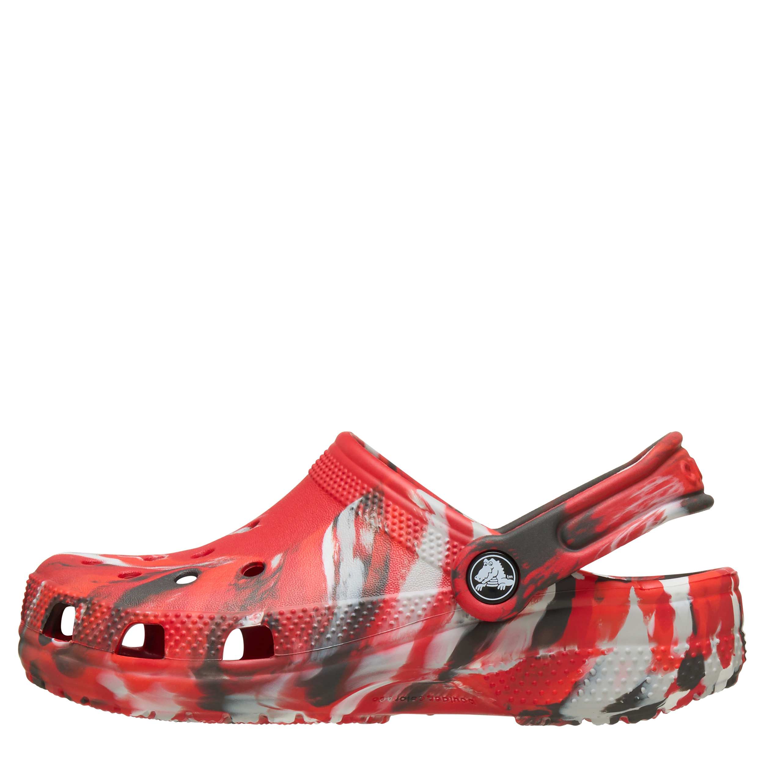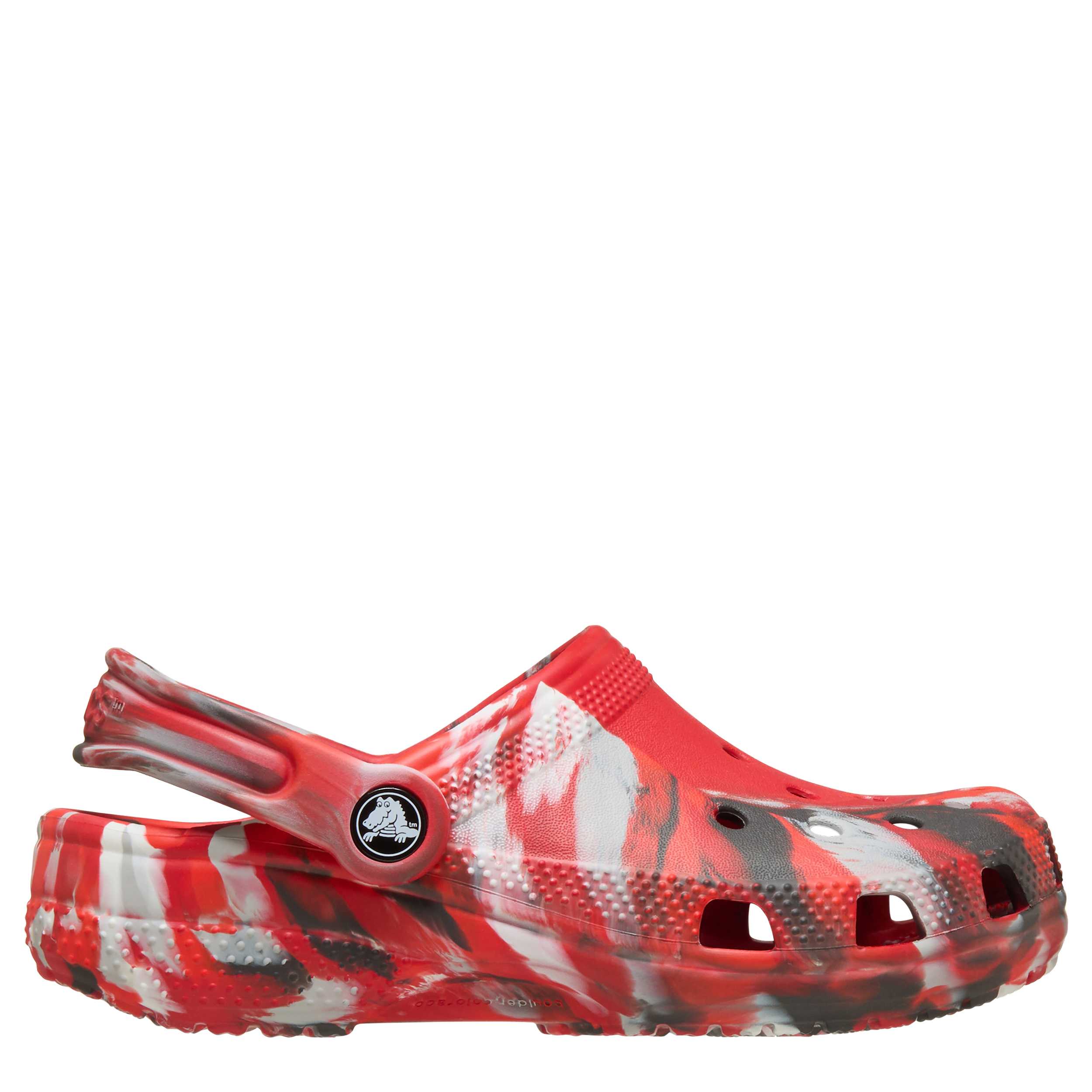 He can't go wrong with the Classic Marbled boys' clog by Crocs. The Iconic Crocs Comfort material offers lightweight, flexible cushioning and a gentle massaging sensation, while the well-ventilated marbled upper circulates air for a cool, dry fit in these red and black Crocs.