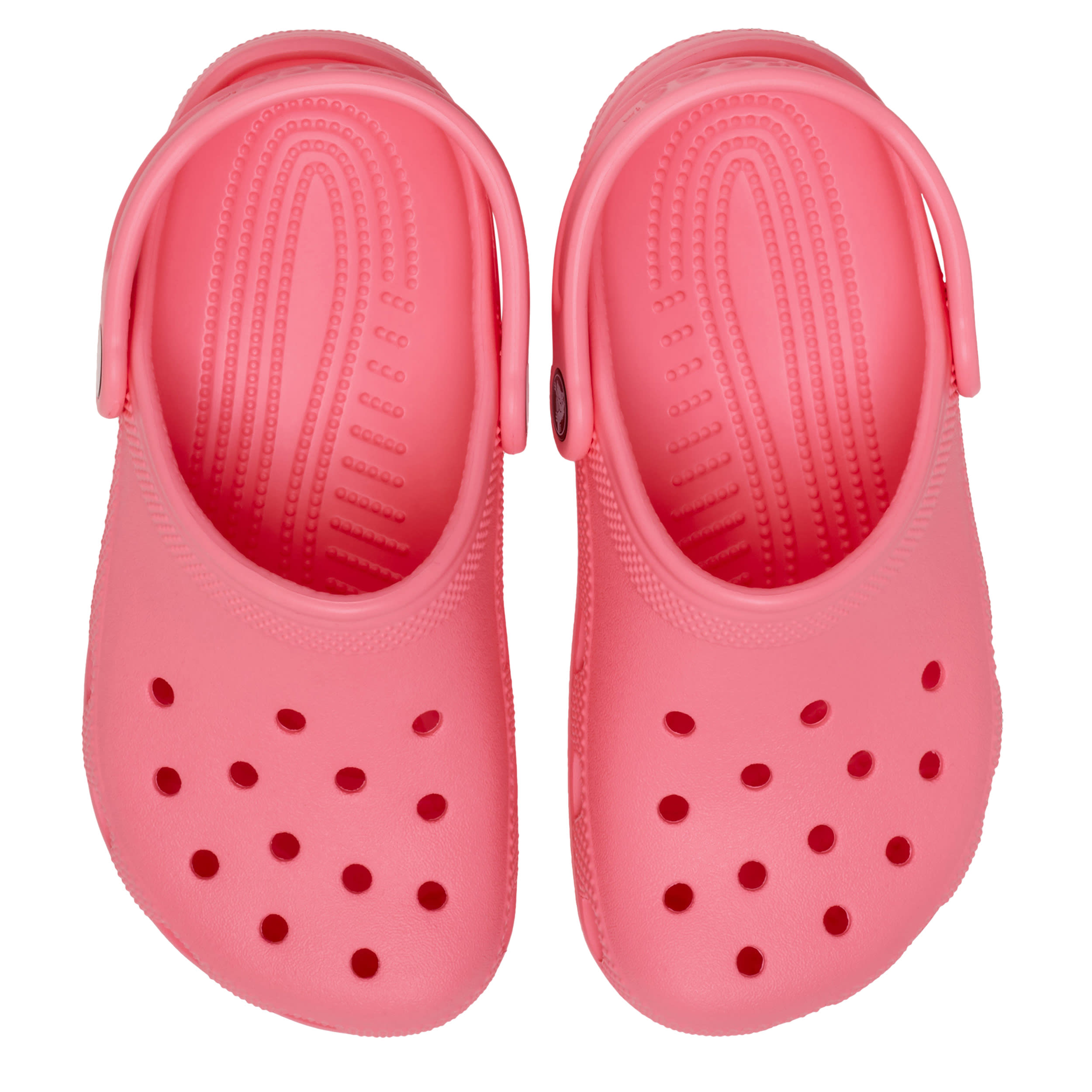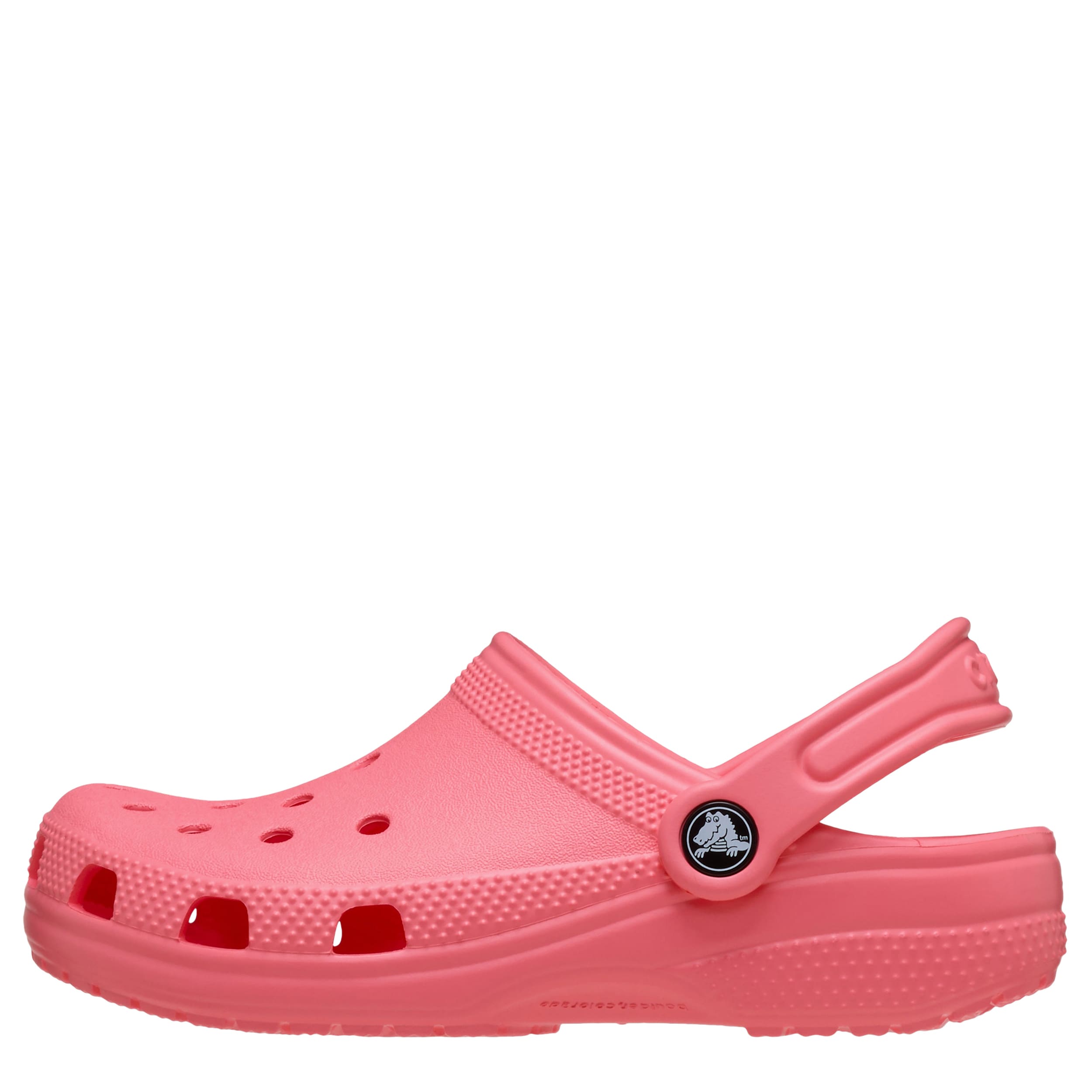 She can't go wrong with the Classic girls' clog by Crocs. The Iconic Crocs Comfort material offers lightweight, flexible cushioning and a gentle massaging sensation, while the well-ventilated upper circulates air for a cool, dry fit in these guava Crocs.